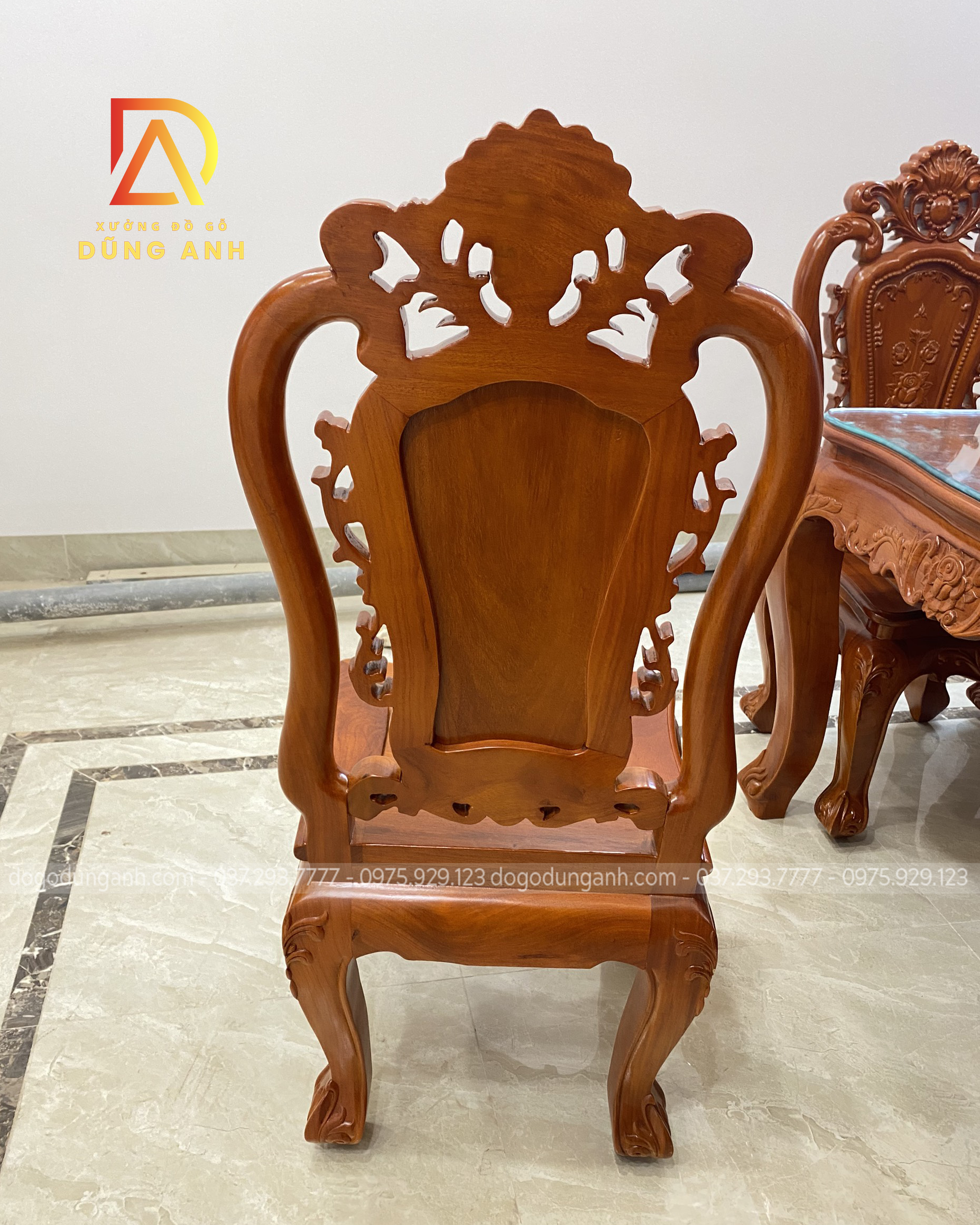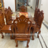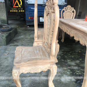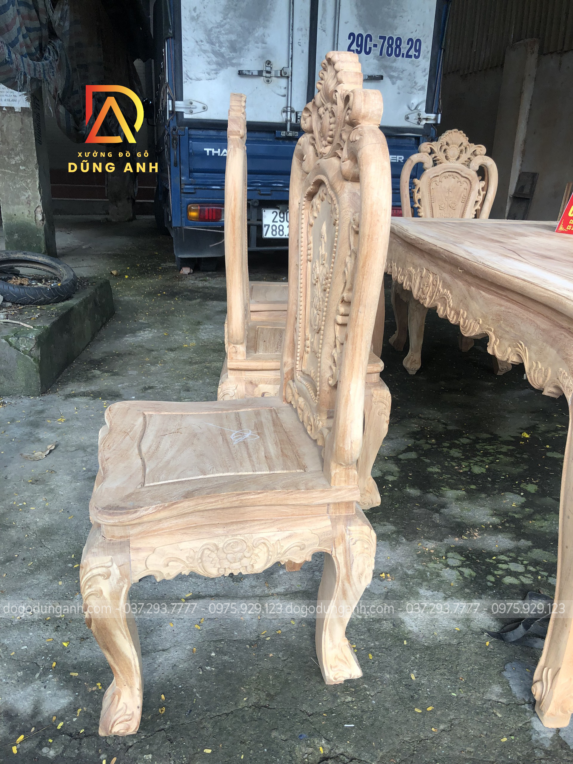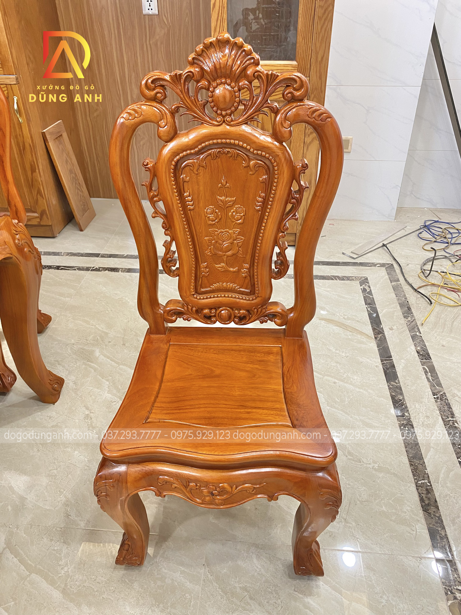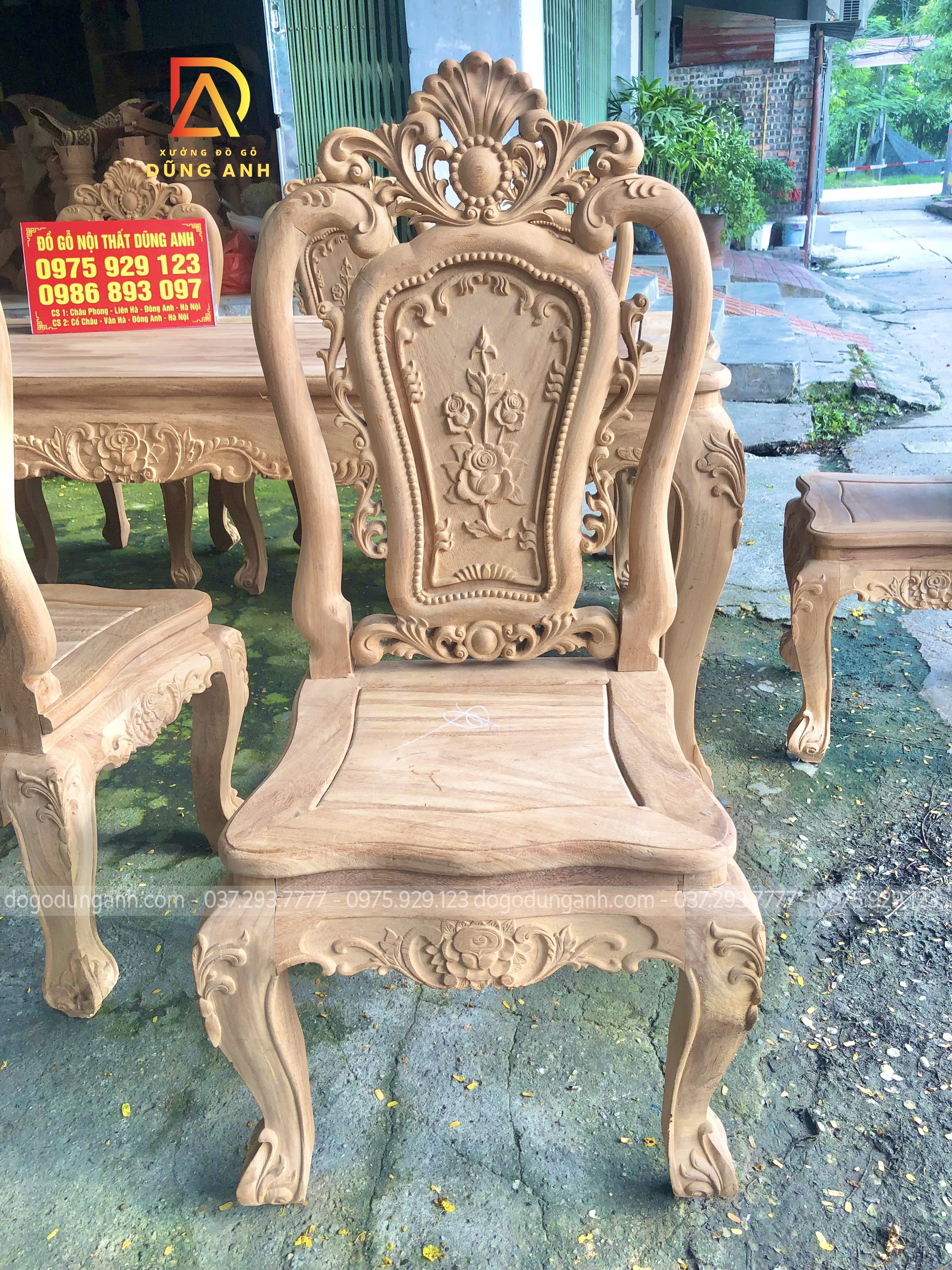 Bộ sản phẩm Louis Hoa Hồng được đục chạm 1 mặt gồm 8 ghế và 1 bàn cua góc