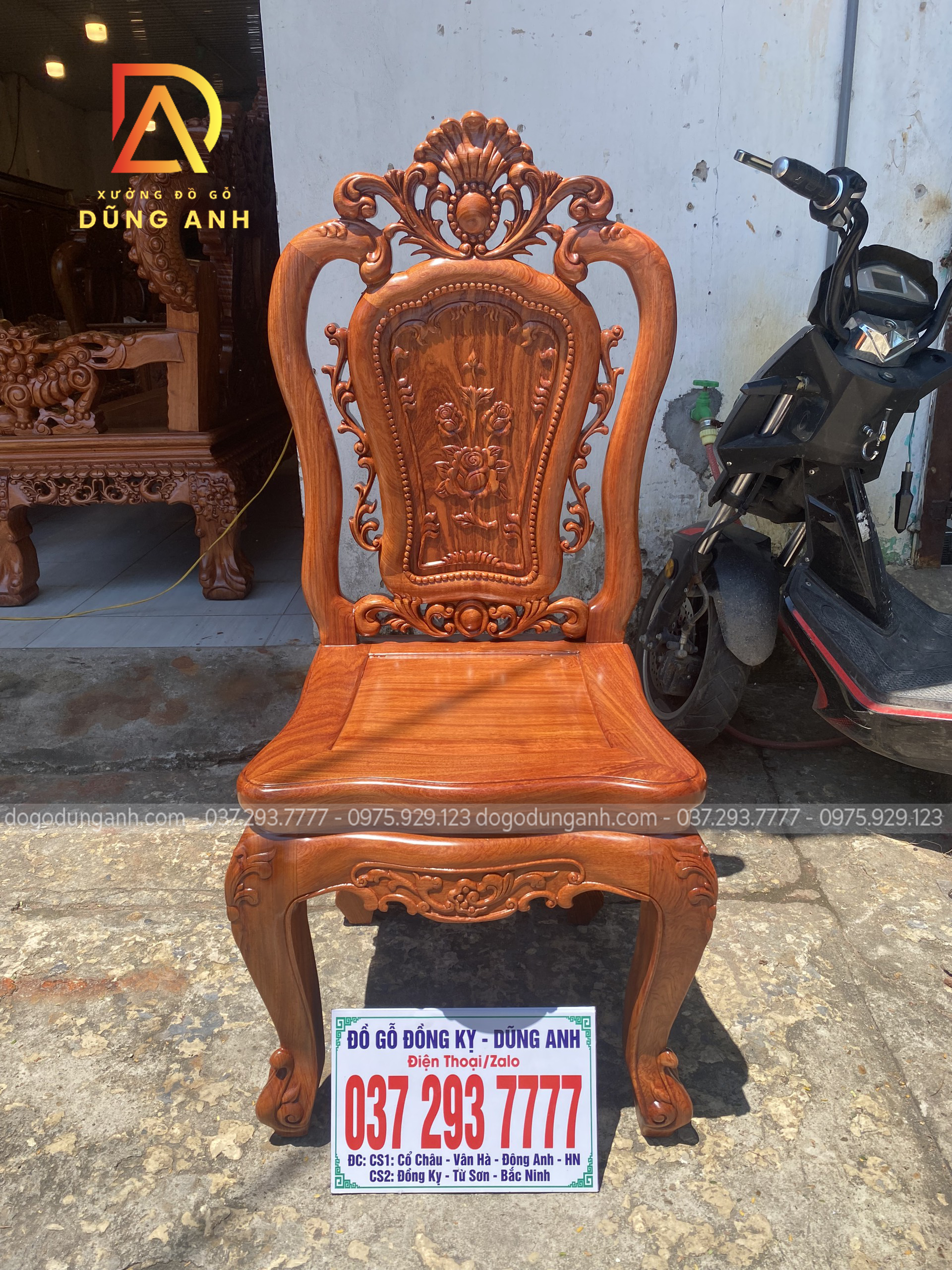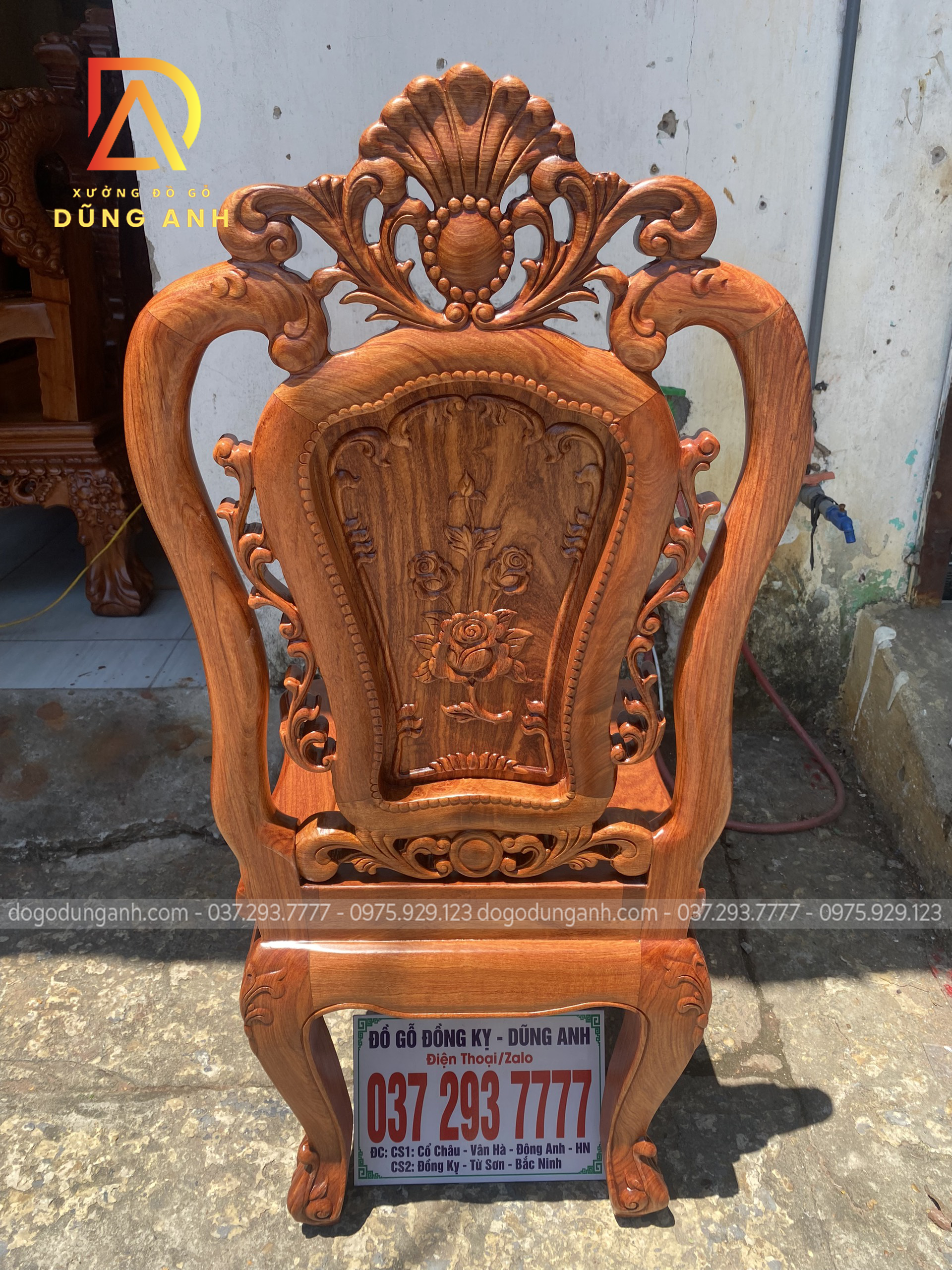 Bộ sản phẩm Louis Hoa Hồng gỗ Hương Đá Nam Phi gồm 6 ghế và 1 bàn tròn (anh Đức, Long Biên)