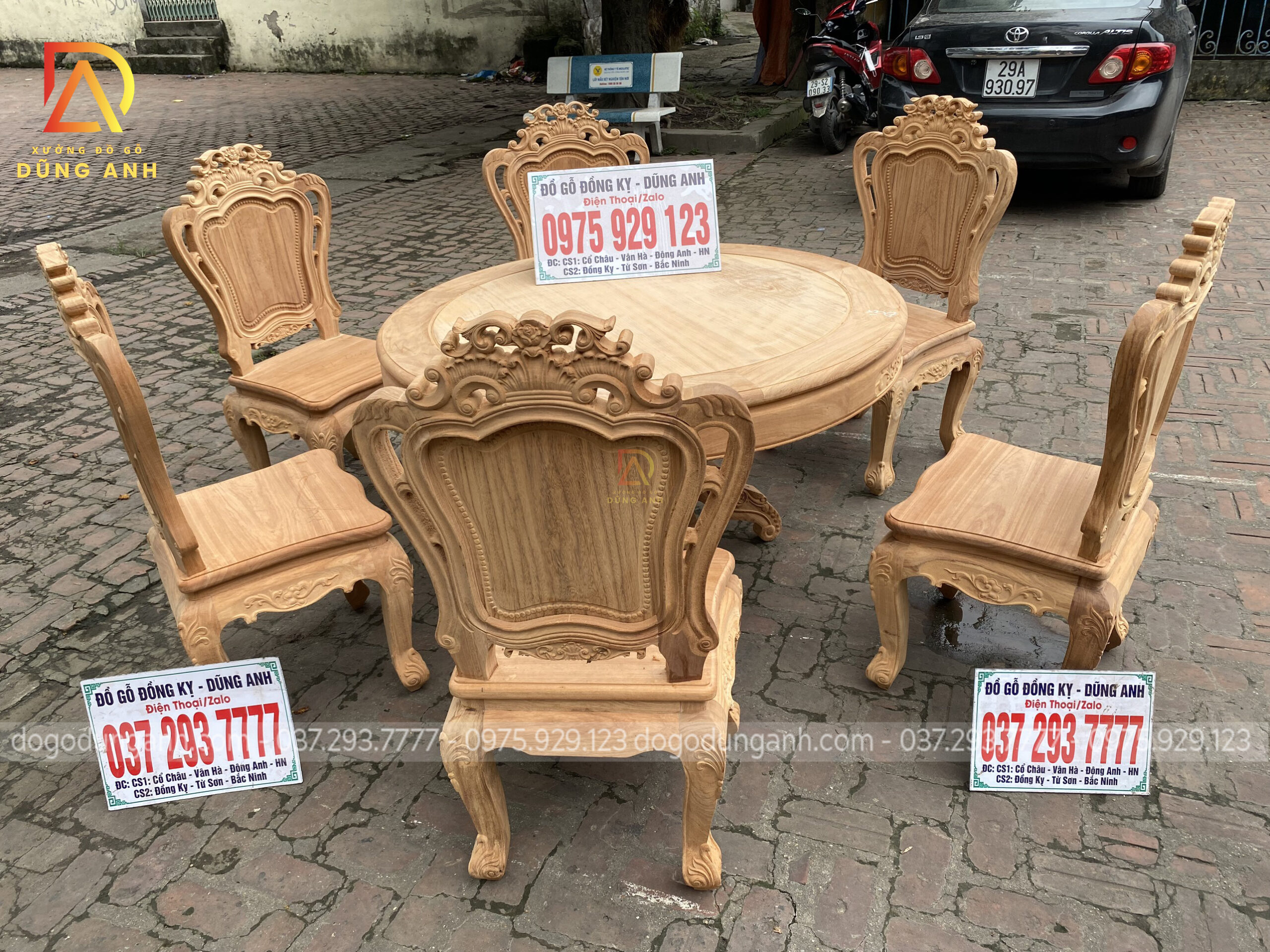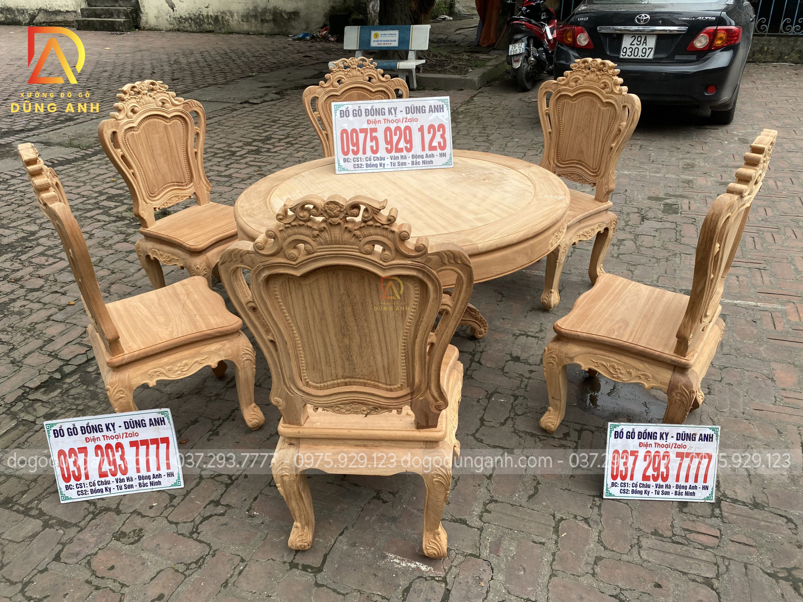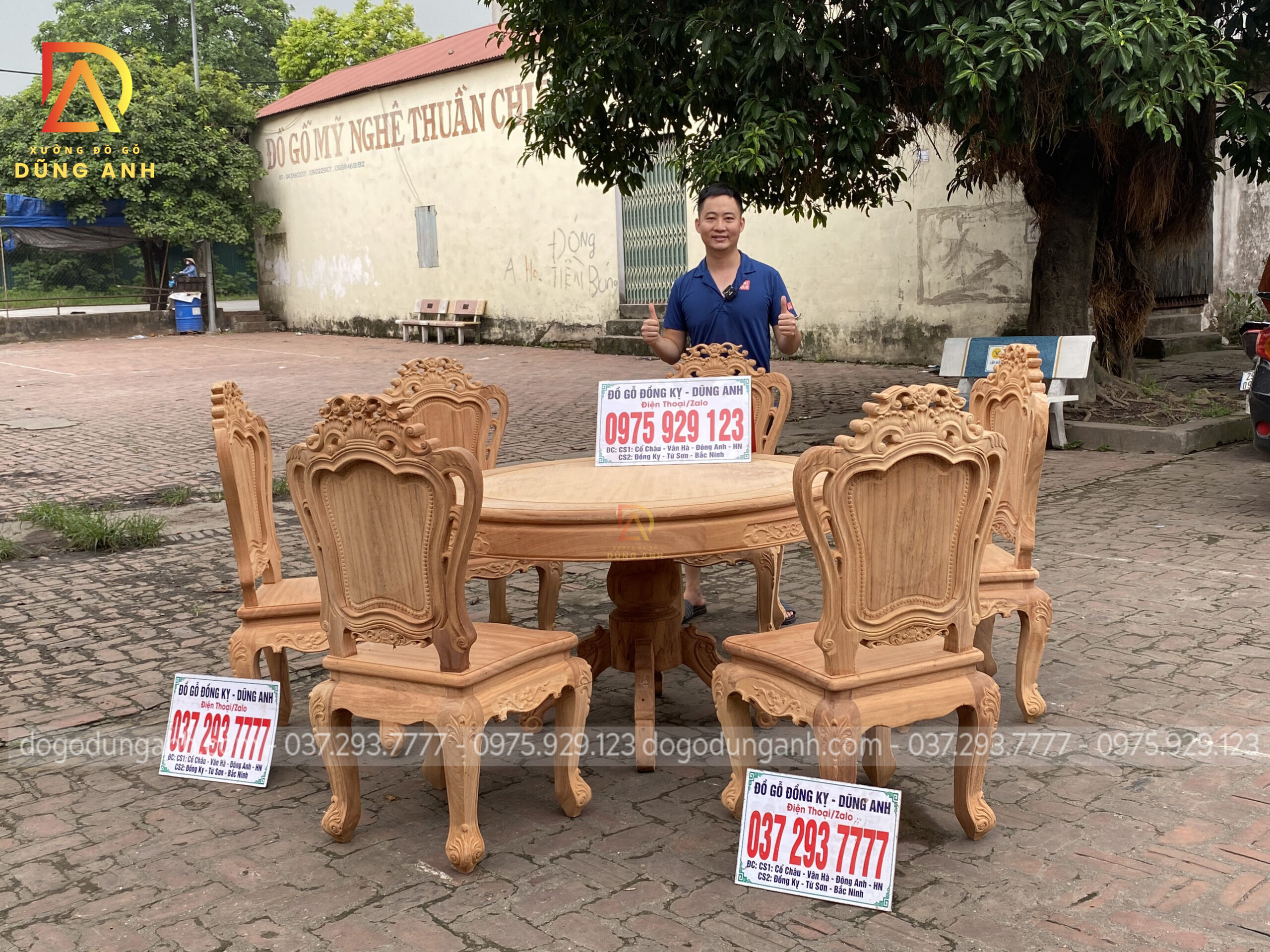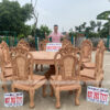 Bộ sản phẩm Louis Hoàng Gia kết hợp bàn Tròn Đẳng Cấp trên nền gỗ Gõ Đỏ
