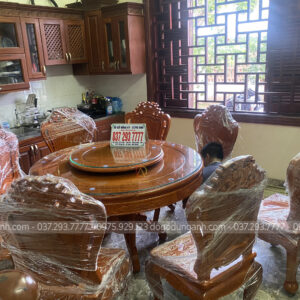 bộ sản phẩm Louis Hoàng gia kết hợp bàn tròn trên nền gỗ Hương Đá