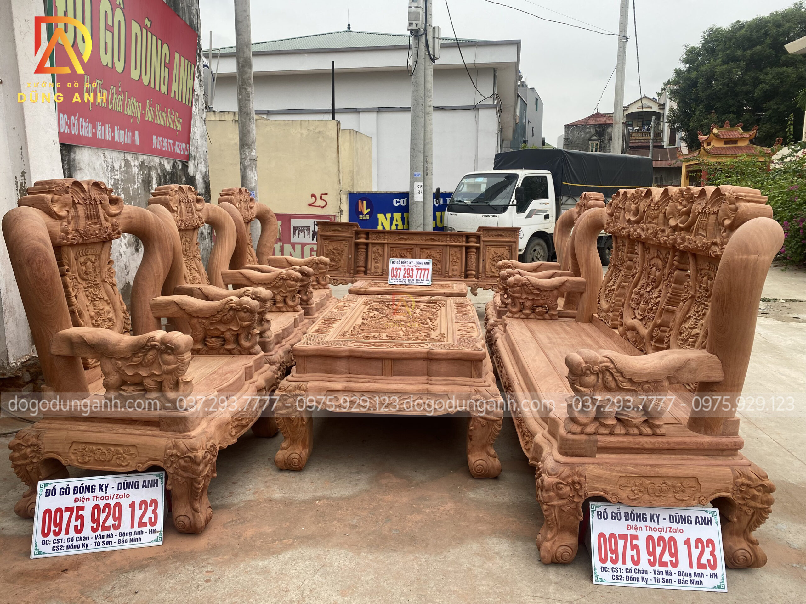 Bộ bàn ghế anh Đức đặt thuộc mẫu Minh quốc Voi Tây Nguyên 16 từ chất liệu gỗ hương đá 7 món