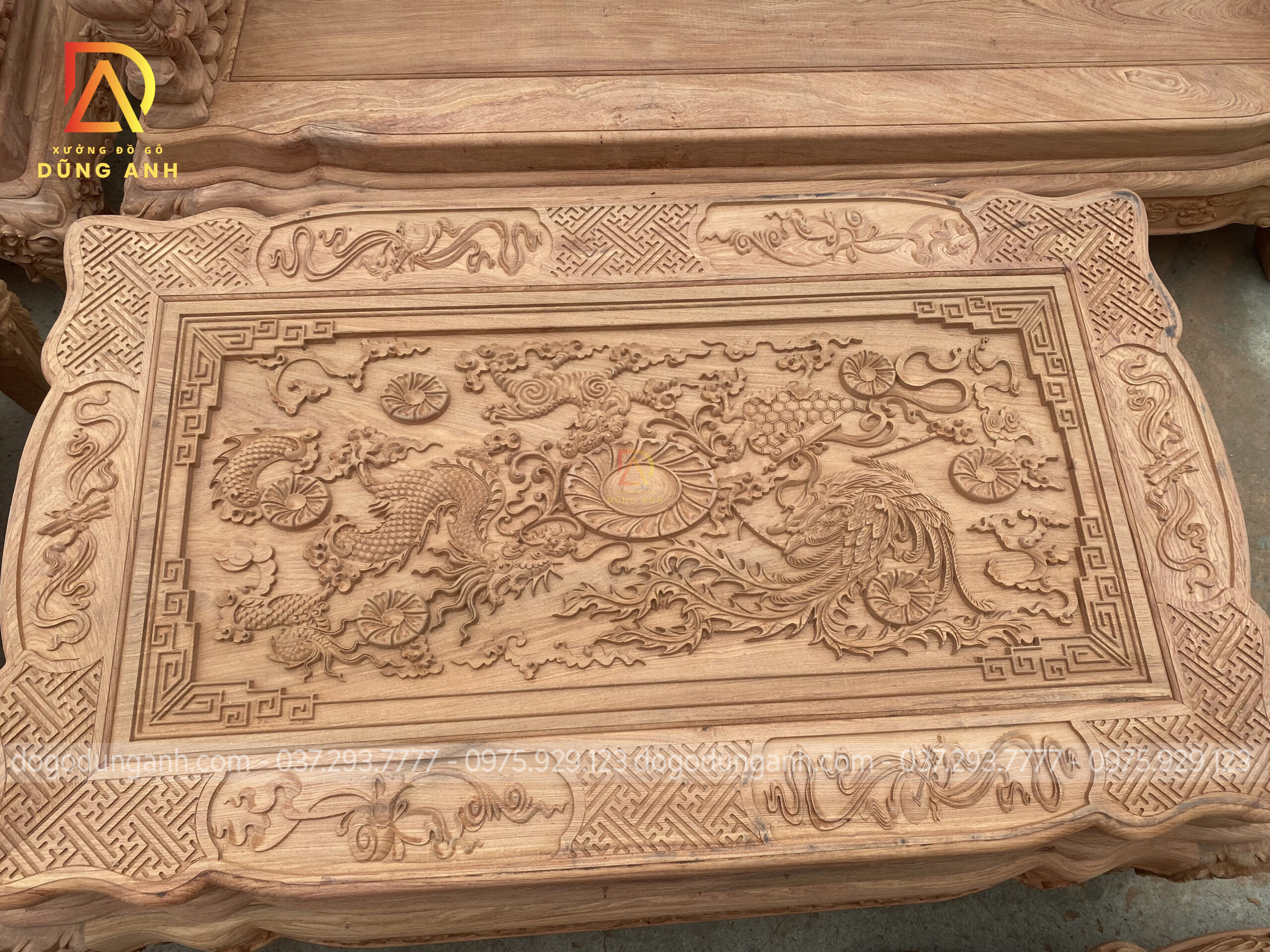 - Mặt bàn : Bàn Đục Tứ Linh Hội Tụ