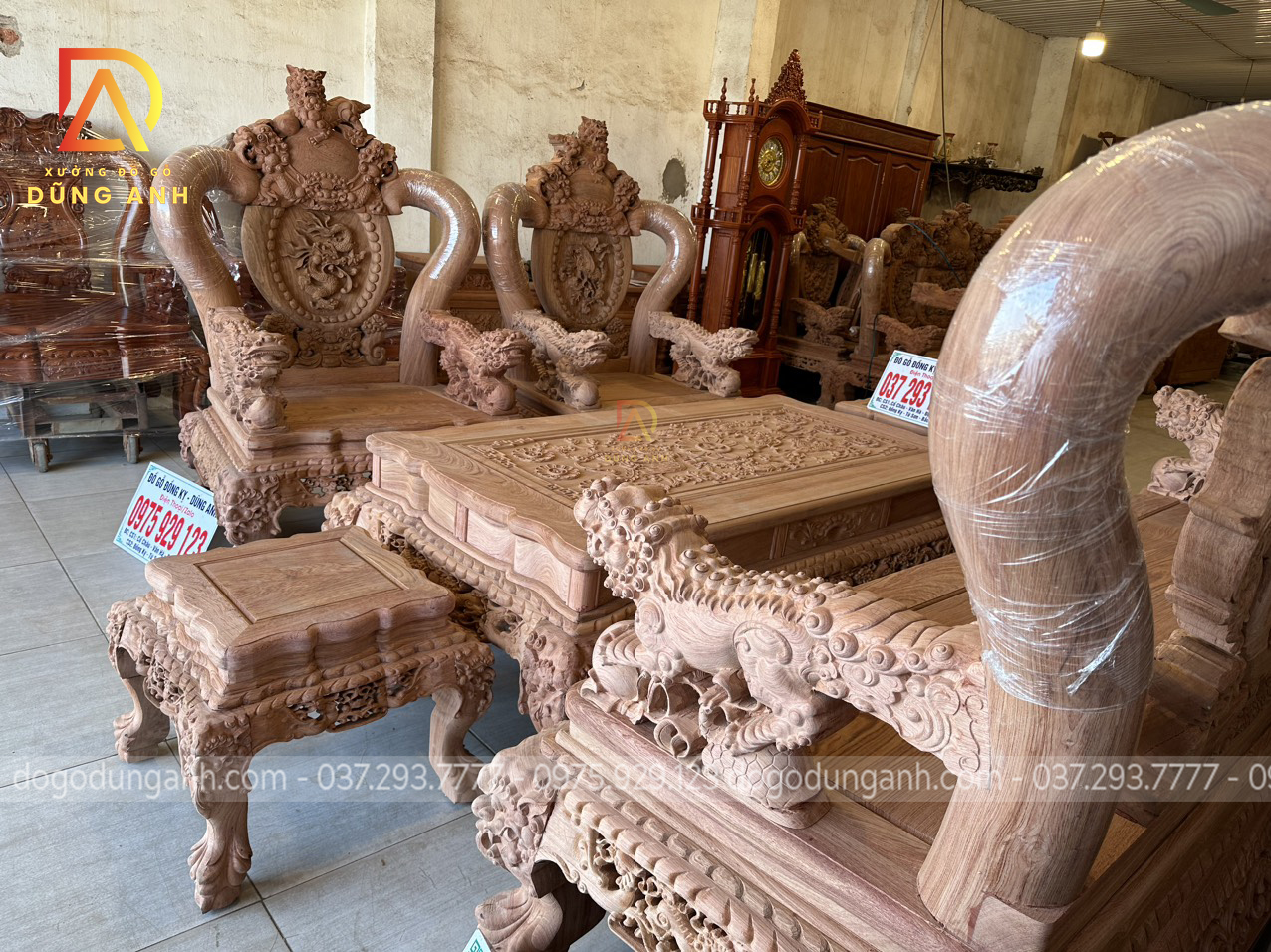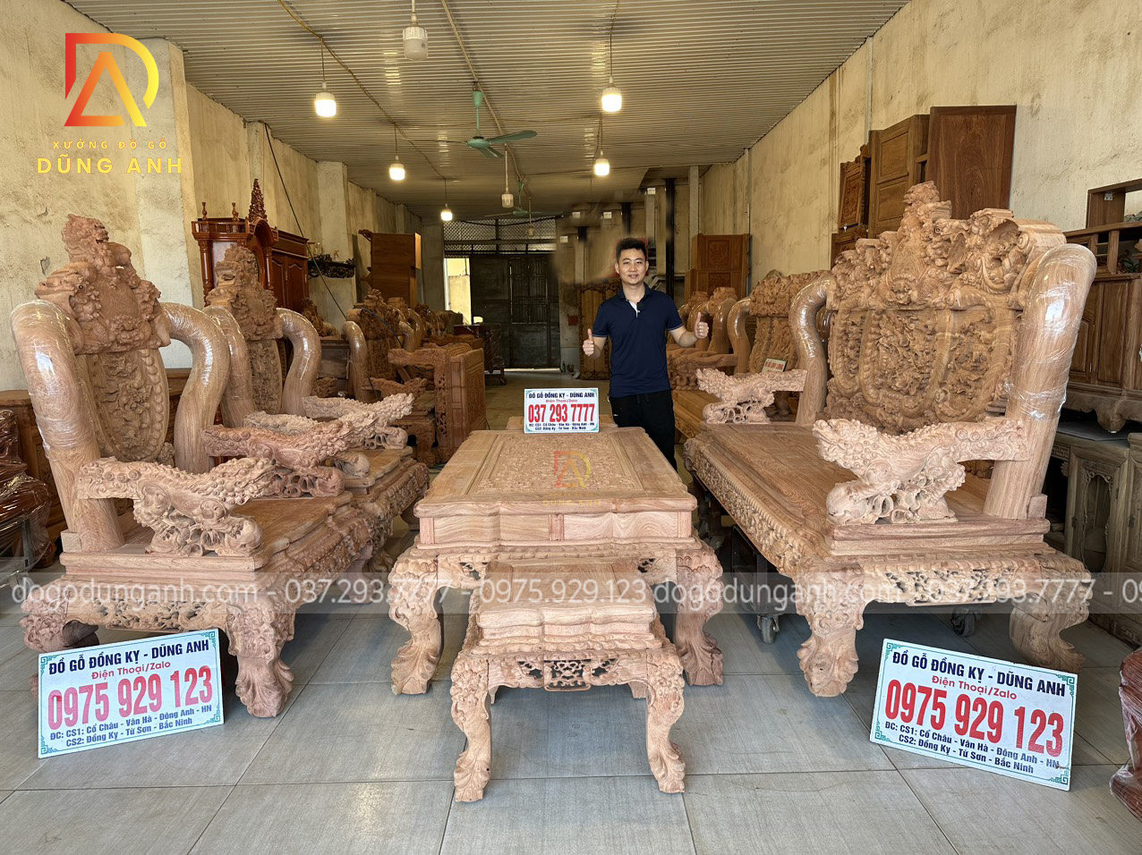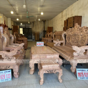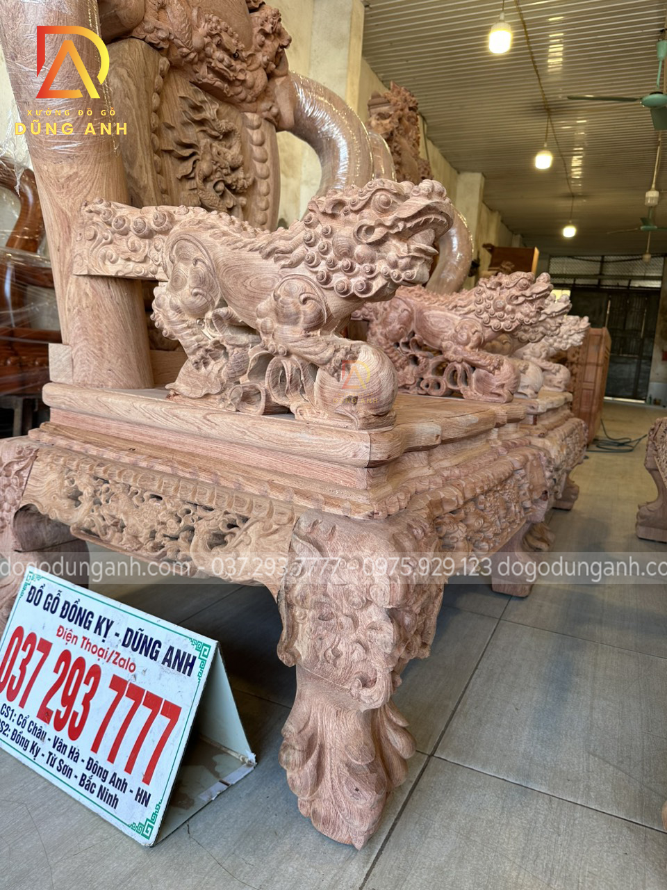 Hoàn thiện xong phần mộc bộ bàn ghế phòng khách mẫu Nghê Hoàng Tử 6 món cột 15 chân 16 đục tay siêu vip gỗ hương đá cho anh Phong ở Đà Nẵng. Hàng kích thước to và dày dặn, chi tiết đục được thực hiện thủ công nên có độ sắc nét kênh bong cao. Là một món đồ nội thất gỗ mỹ nghệ đẳng cấp chỉ có ở xưởng gỗ lâu đời.