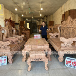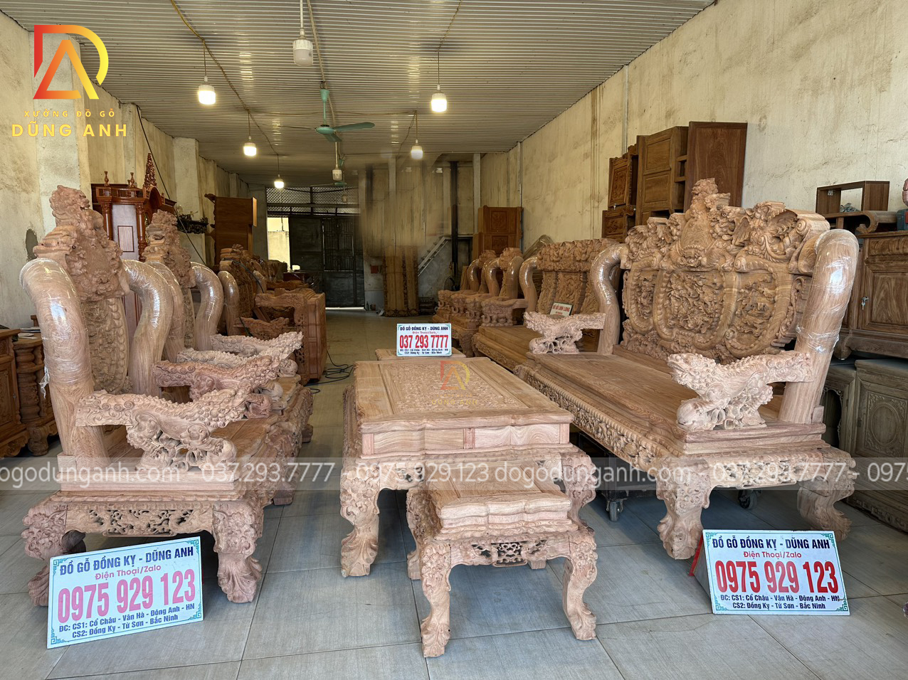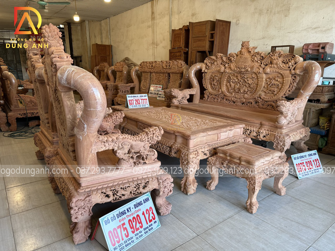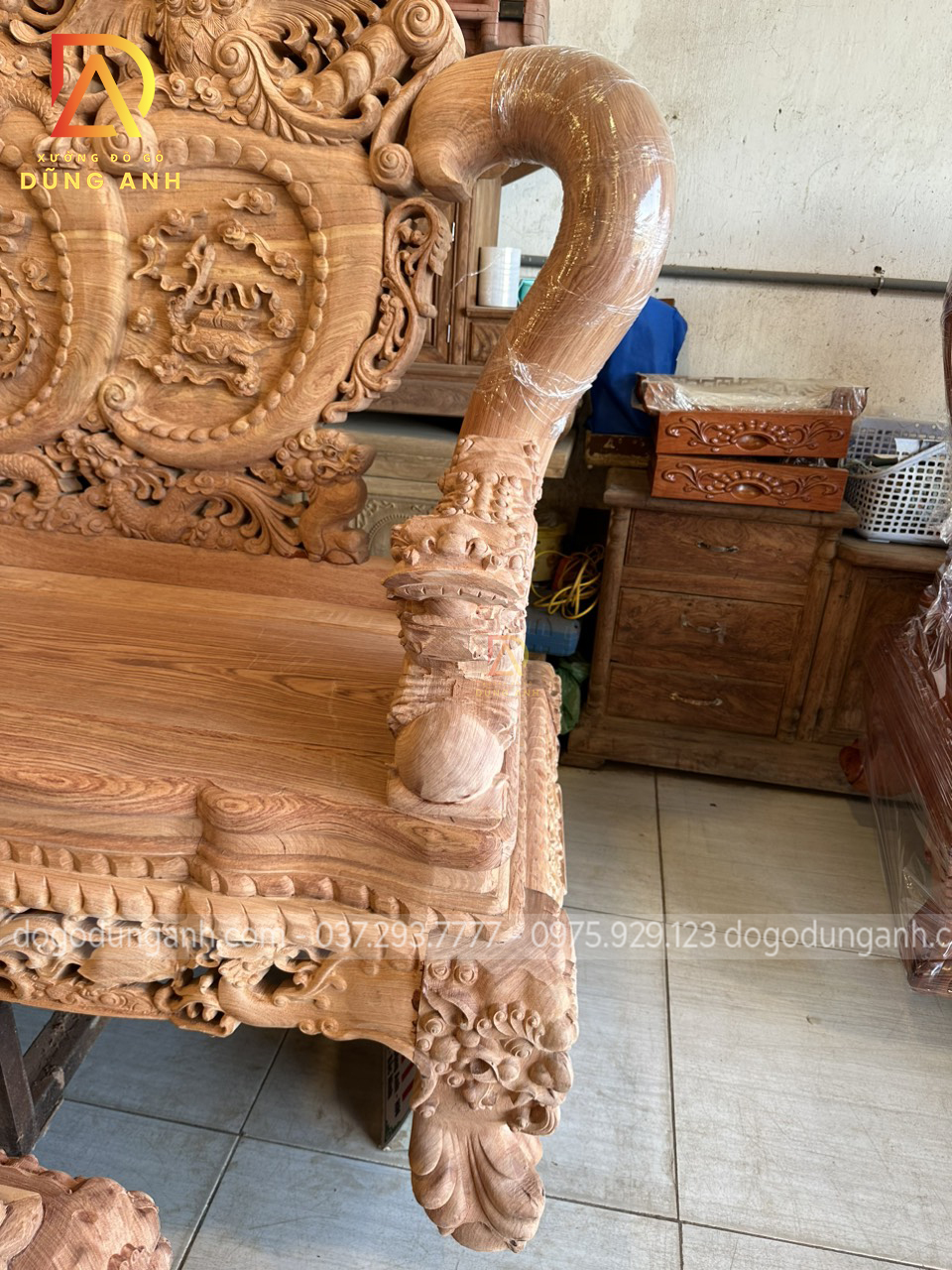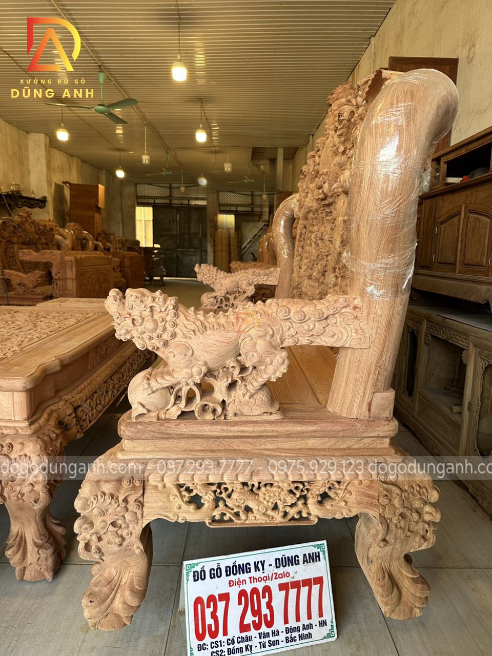 Hoàn thiện xong phần mộc bộ bàn ghế phòng khách mẫu Nghê Hoàng Tử 6 món cột 15 chân 16 đục tay siêu vip gỗ hương đá cho anh Phong ở Đà Nẵng. Hàng kích thước to và dày dặn, chi tiết đục được thực hiện thủ công nên có độ sắc nét kênh bong cao. Là một món đồ nội thất gỗ mỹ nghệ đẳng cấp chỉ có ở xưởng gỗ lâu đời.