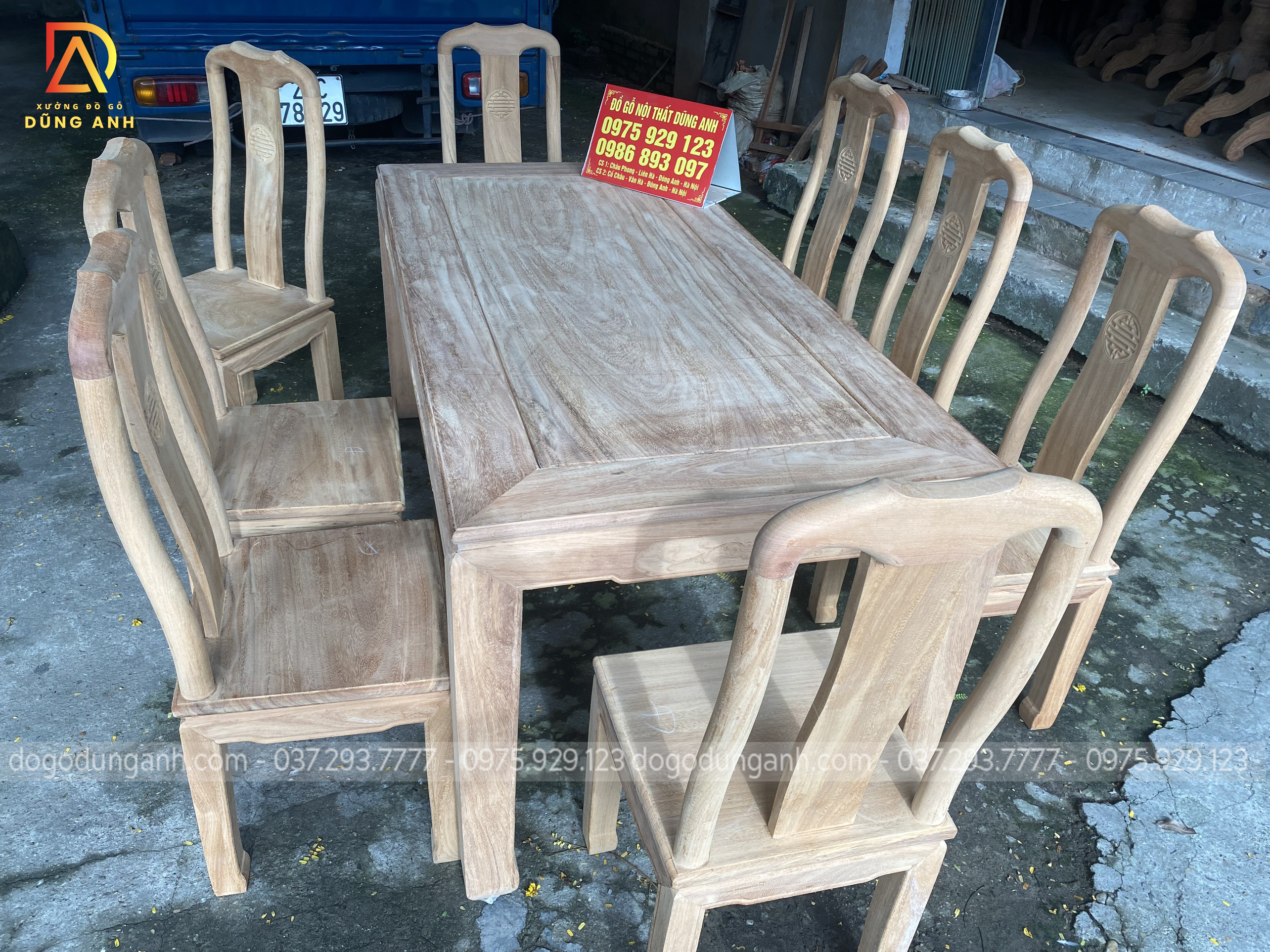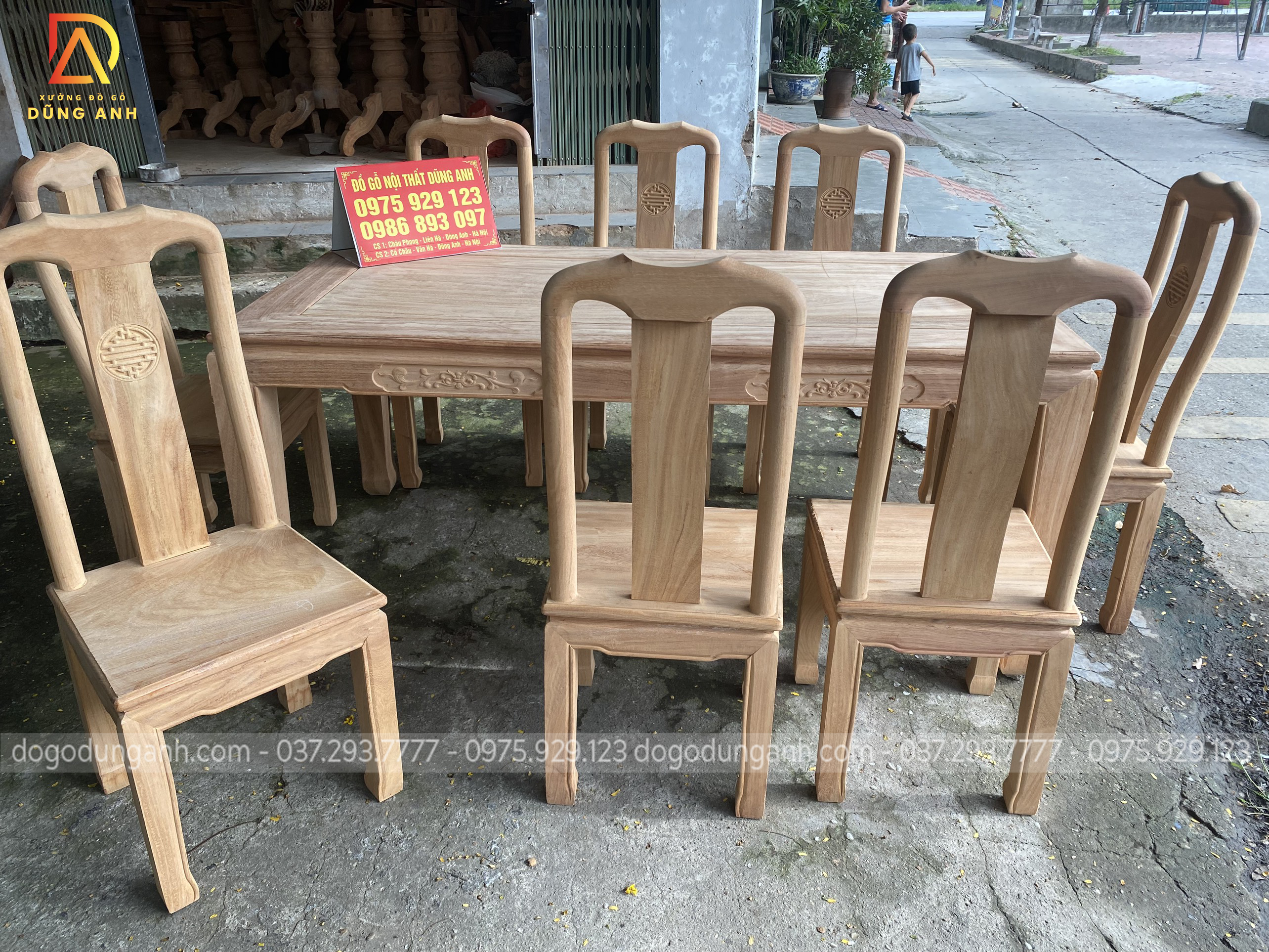 Bộ Sản Phẩm Triện Thọ 8 Ghế Kết Hợp Với 1 Bàn Chữ Nhật Chất Liệu Gỗ Hương Đá Vô Cùng Đẹp Và Đẳng Cấp