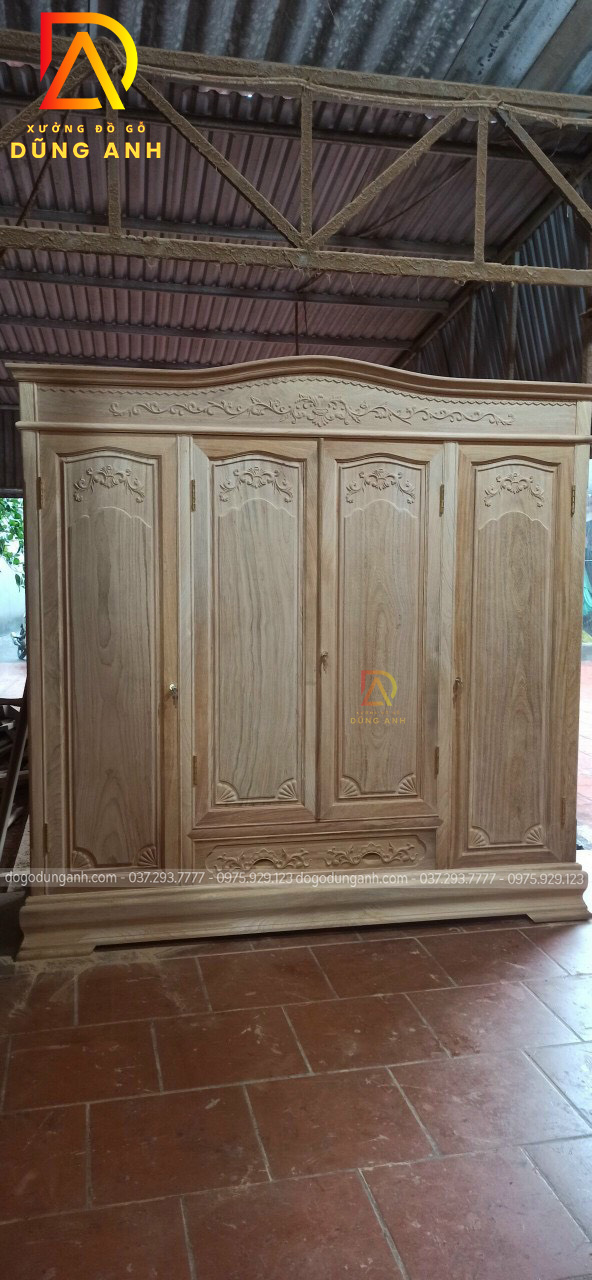 Bộ sản phẩm tủ áo 3 buồng 4 cánh chất liệu gỗ gõ đỏ