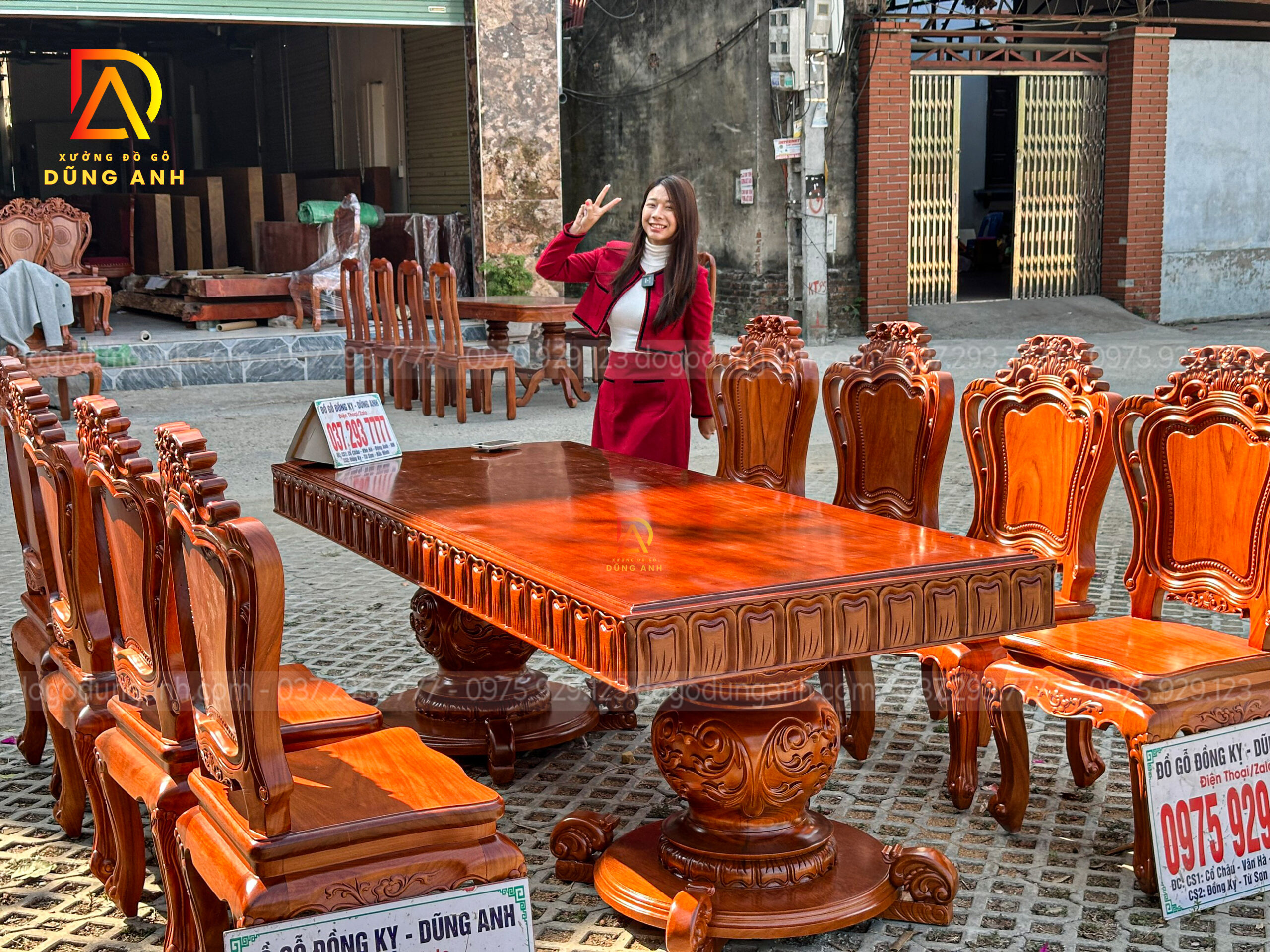 Bên cạnh đó, gỗ hương đá có khả năng kết hợp hoàn hảo với các phong cách trang trí khác nhau, từ nội thất cổ điển với những đường nét uốn lượn mềm mại đến không gian hiện đại với thiết kế tối giản. Dù bạn yêu thích sự cổ điển hay phong cách hiện đại, bộ bàn ghế gỗ hương đá vẫn sẽ là điểm nhấn nổi bật, tạo nên không gian phòng ăn đầy ấn tượng.