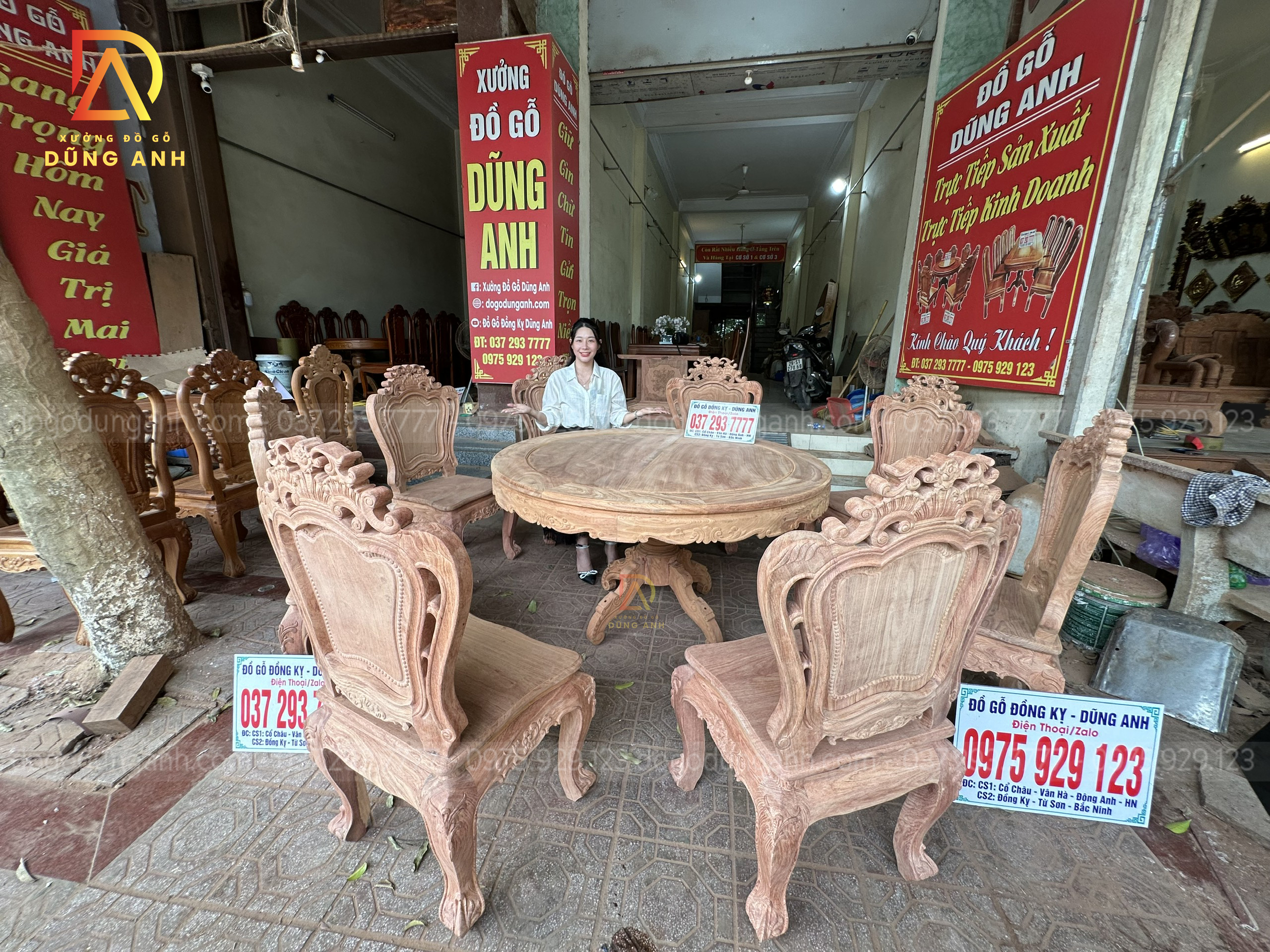 Tất cả sản phẩm tại Dũng Anh đều được chế tác từ gỗ tự nhiên cao cấp như gỗ gõ đỏ, hương đá, xoan đào ta… Tuyển chọn từ nguồn gốc rõ ràng, già gỗ, đảm bảo chống mối mọt – bền bỉ hàng chục năm.