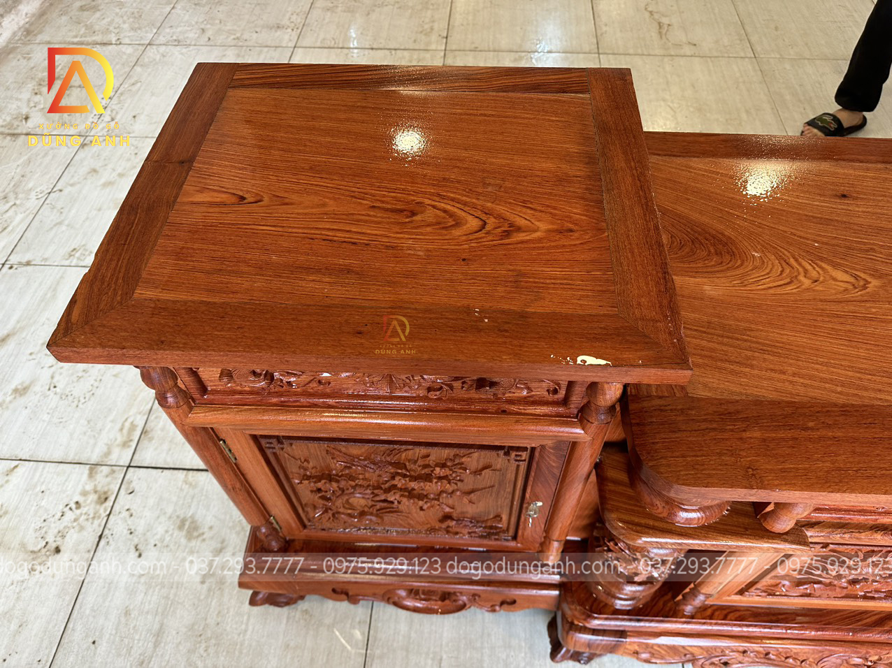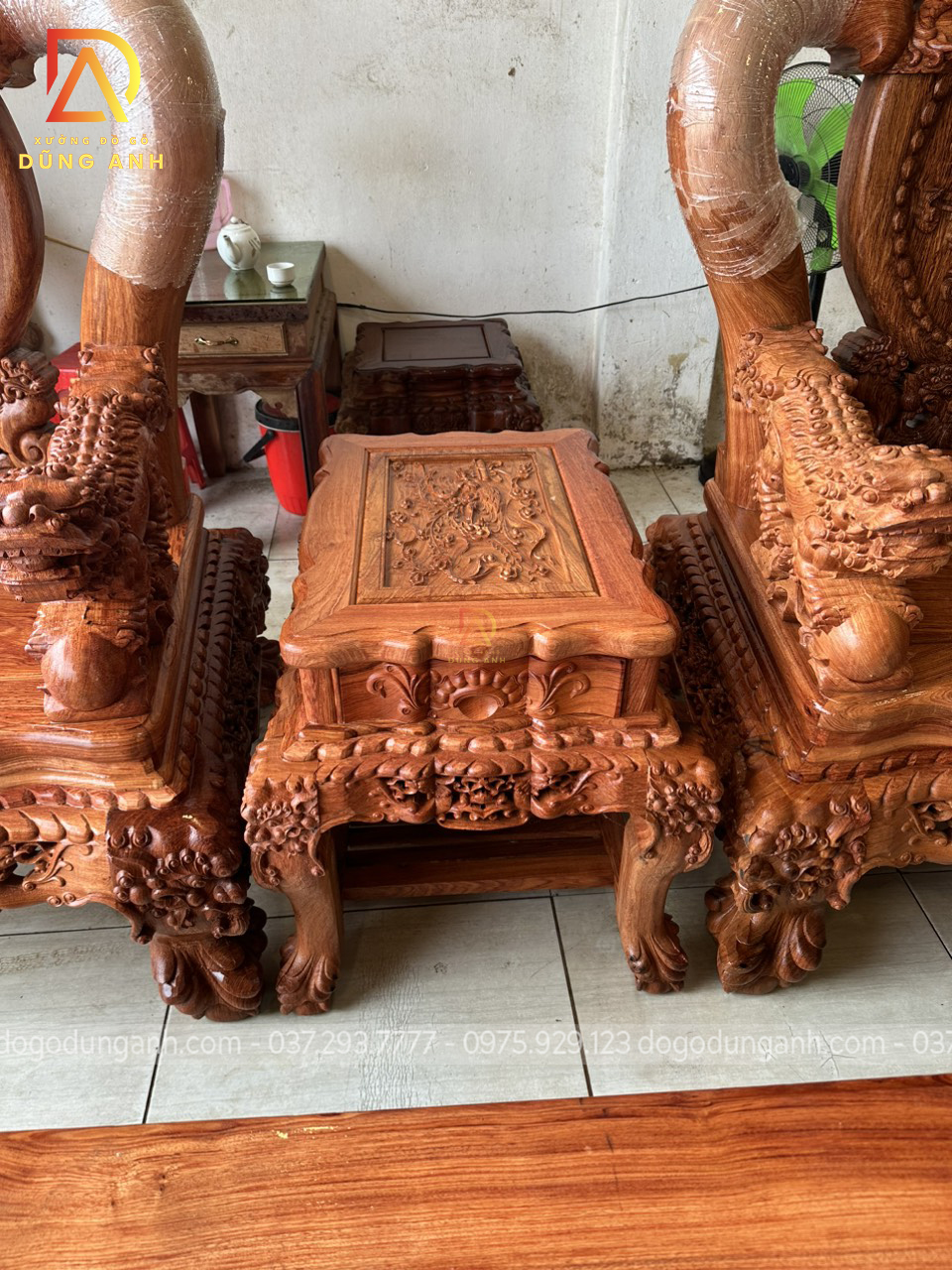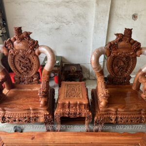 - Nghê bảo đỉnh cột 15 chân 16, 6 mónVách đục tứ linh, tay đục tỳ hưu giá combo (141.000.000)Gồm : 1 đoản dài, 2 ghế đơn, 1 bàn, 1 đôn kẹp, 1 đôn con