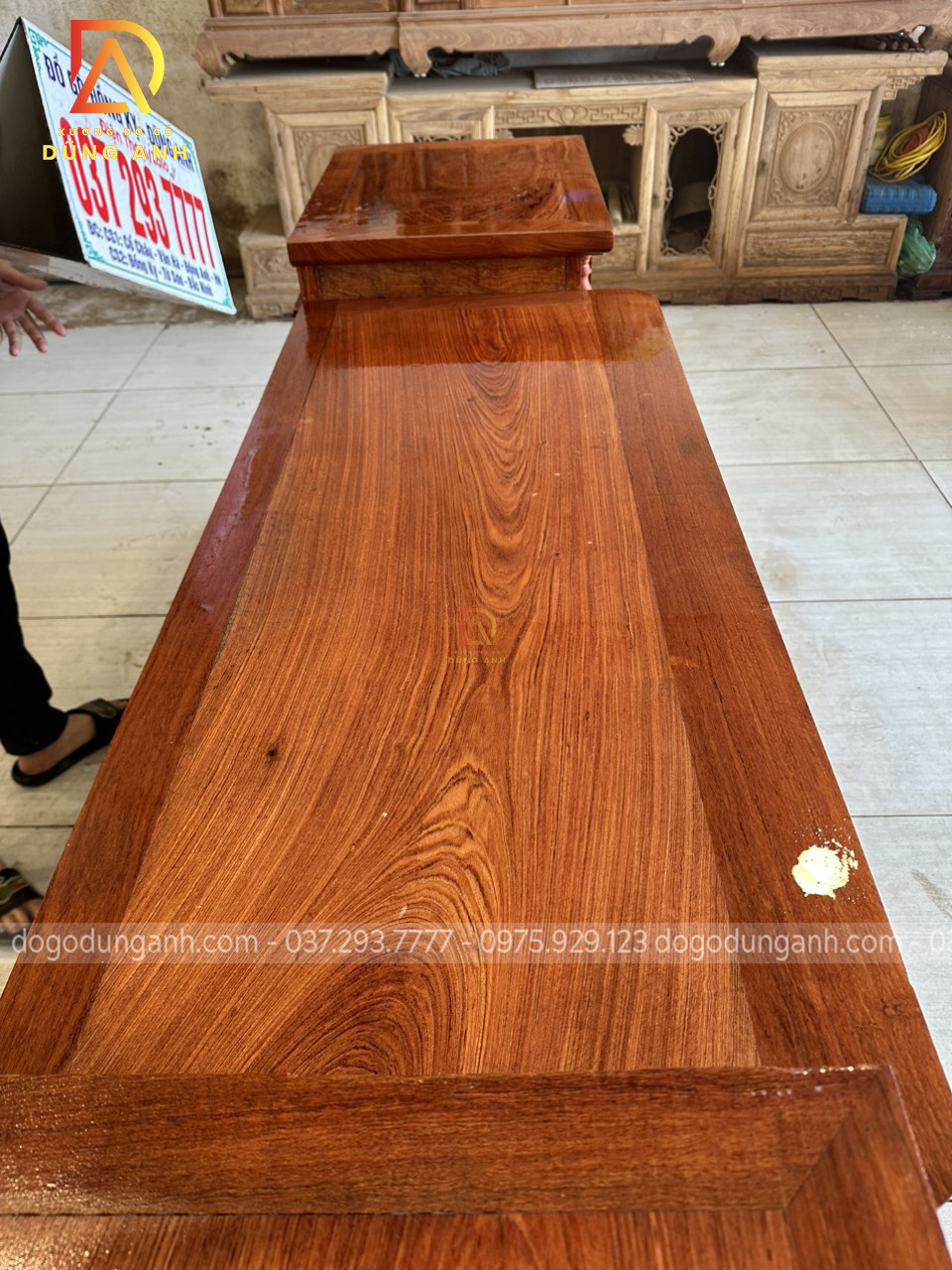 Mặt kệ thiết kế khung tranh ván liền gỗ hương đá siêu vân bóng mịn đẹp mắt được thiết kế 2 tầng mặt để phân biệt khu vực bố trí tivi và khu vực trưng bày loa đài hay bình hoa, tượng trang trí.
