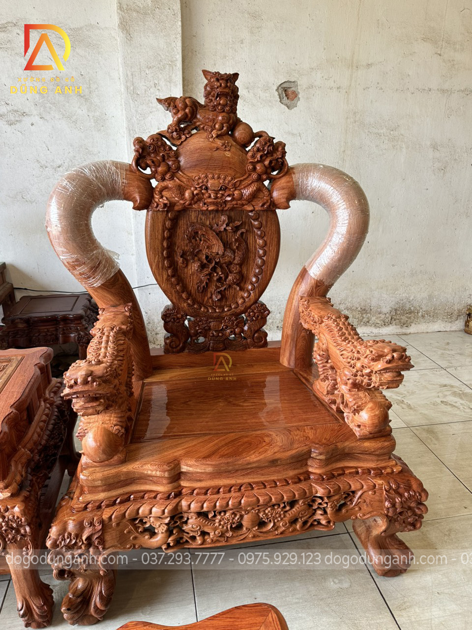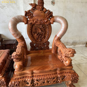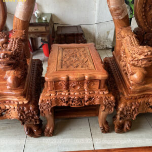 Hai hình ảnh Nghê, Rồng là những hình ảnh không còn xa lạ với bất kỳ ai trong chúng ta đã có trong văn hóa Á Đông từ rất lâu đời. Trên bộ bàn ghế Nghê Phượng được chạm khắc những họa tiết tinh xảo mang lại may mắn, quyền uy và xua đuổi những điềm xấu cho gia chủ. Quý khách hàng hãy cùng xưởng đồ gỗ giá rẻ tìm hiểu về bộ ghế nghê phượng cột 12 chân 14 này nhé!