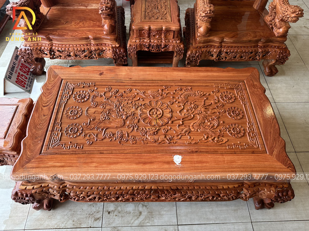 - Mặt bàn : Đục Tứ Linh Hội Tụ