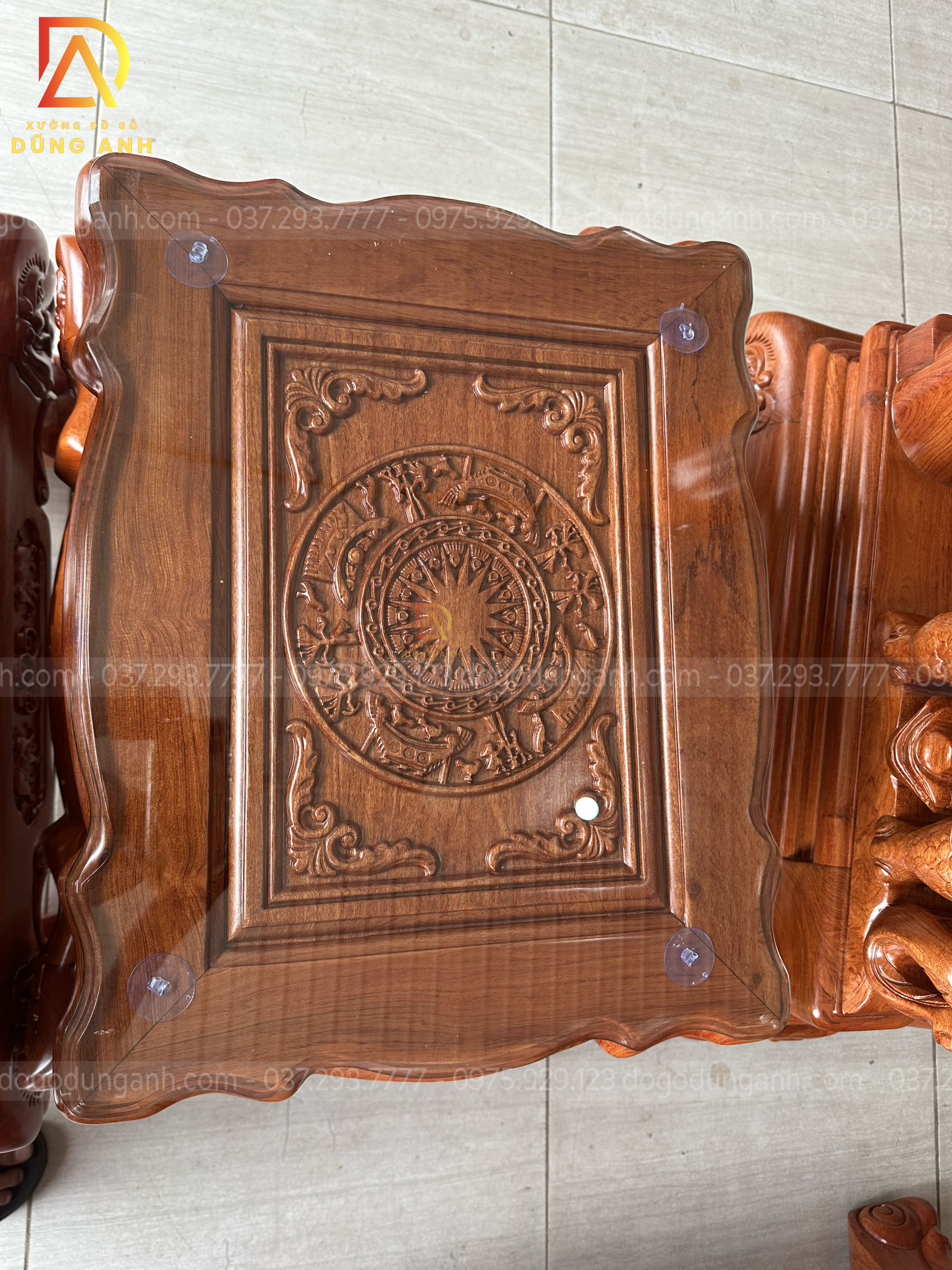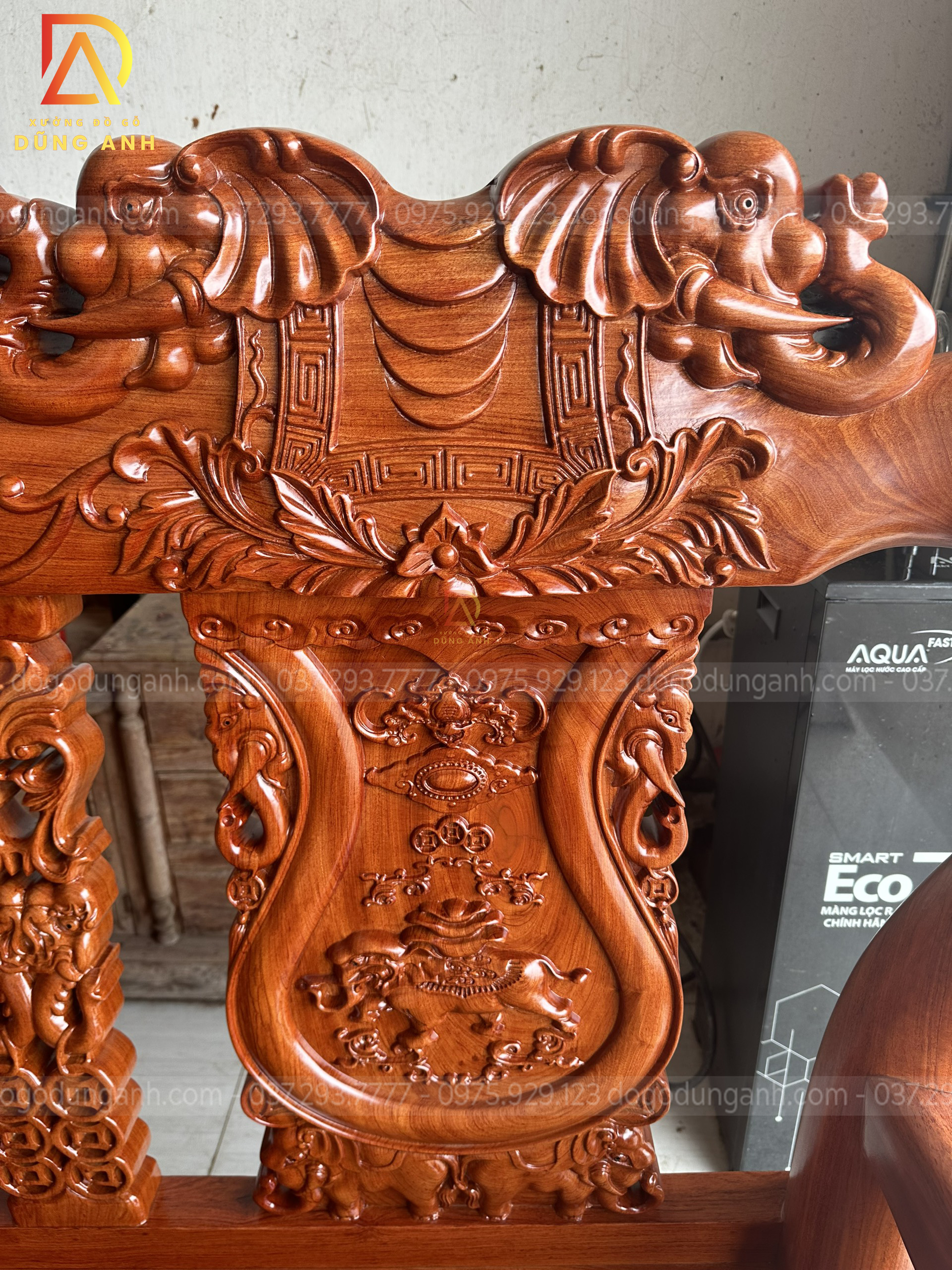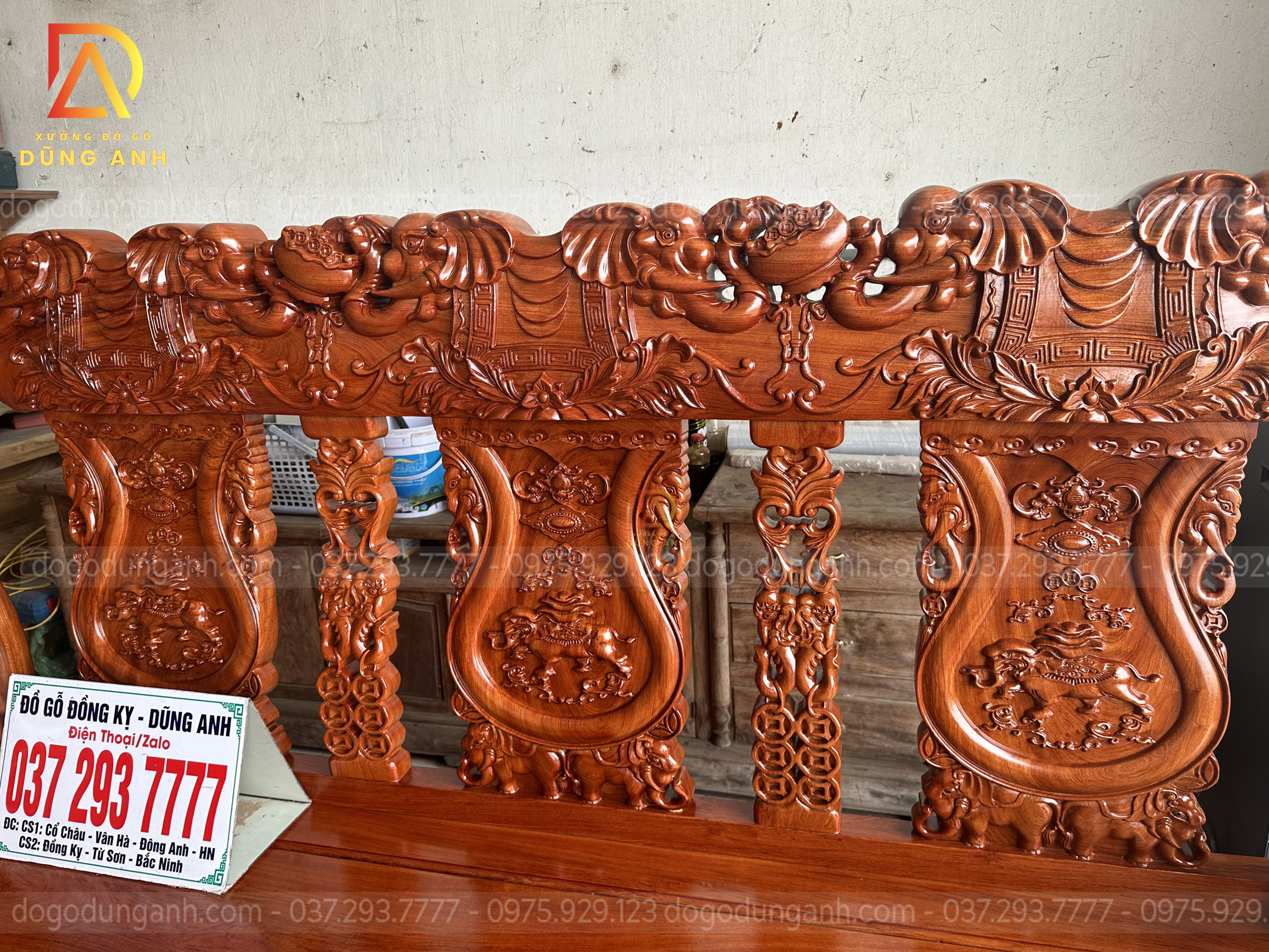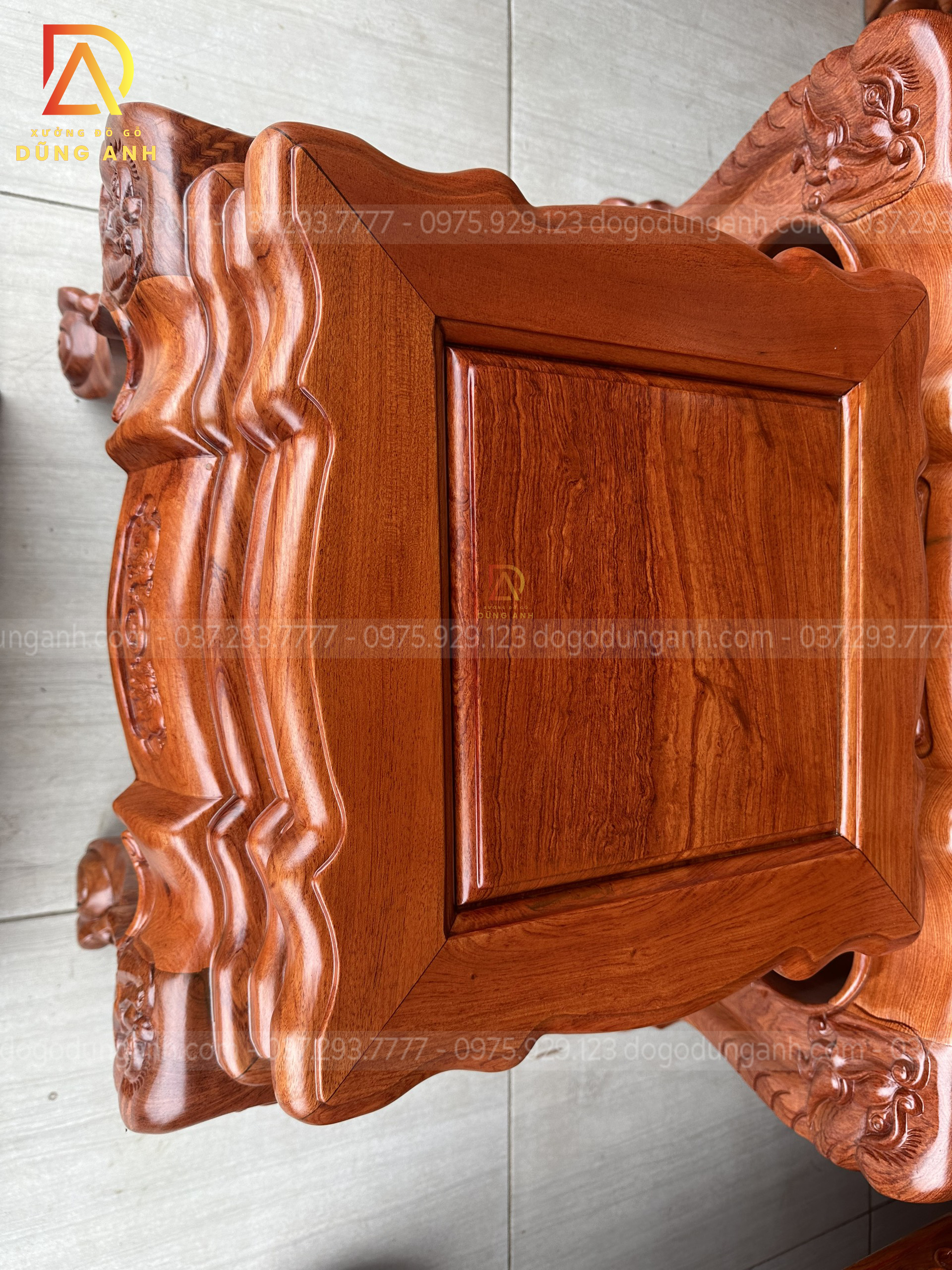 Bộ sản phẩm Xưởng đồ gỗ Dũng Anh bên em chế tác hoàn toàn từ 100% chất liệu gỗ hương đá dòng gỗ cao cấp chất lượng với giá thành khá đắt đỏ. Được xưởng chọn lọc kỹ càng nên đảm bảo độ đanh chắc hoàn hảo để tạo nên các họa tiết đục tinh xảo, nổi bật theo phong cách mới nhất năm 2024