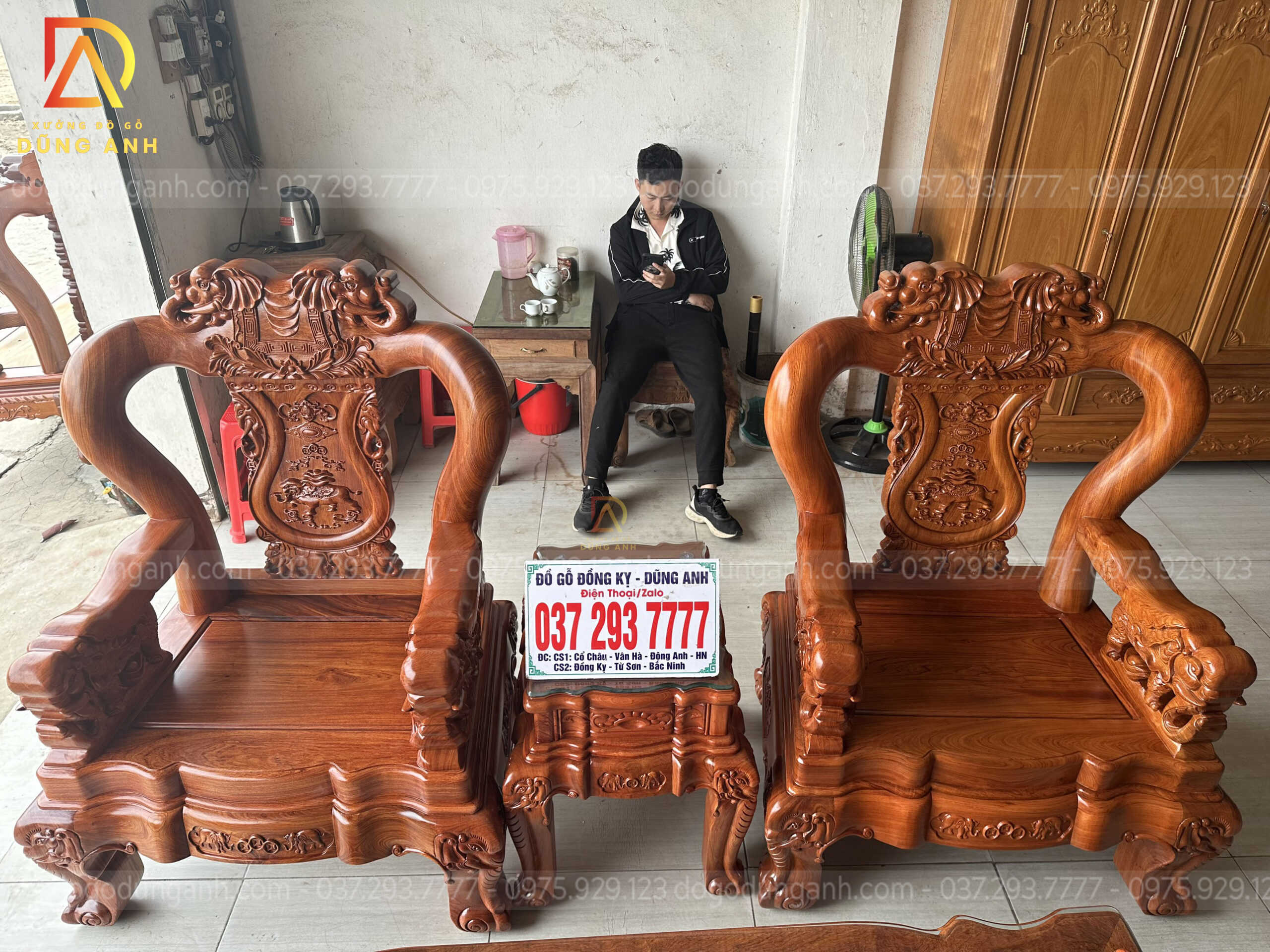 Xưởng đồ gỗ Dũng Anh xin trân trọng giới thiệu đến quý khách hàng bộ sản phẩm vừa hoàn thiện bộ bàn ghế và kệ tivi Minh Quốc Voi chân 14 cột 12 + Kệ tivi Cột Nho Con Sóc – gỗ Hương Đá hàng siêu VIP cực dày dặn và làm vô cùng chắc chắn