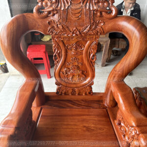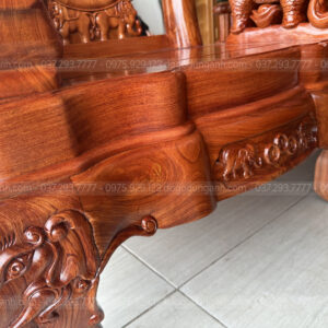 Bộ bàn ghế được chế tác 100% từ chất liệu gỗ hương đá được xưởng chọn lựa kỹ càng là dòng gỗ chất lượng với độ đanh chắc đem lại tuổi thọ cao và chi tiết chạm khắc sắc nét. Trọn bộ sản phẩm gồm 6 món: