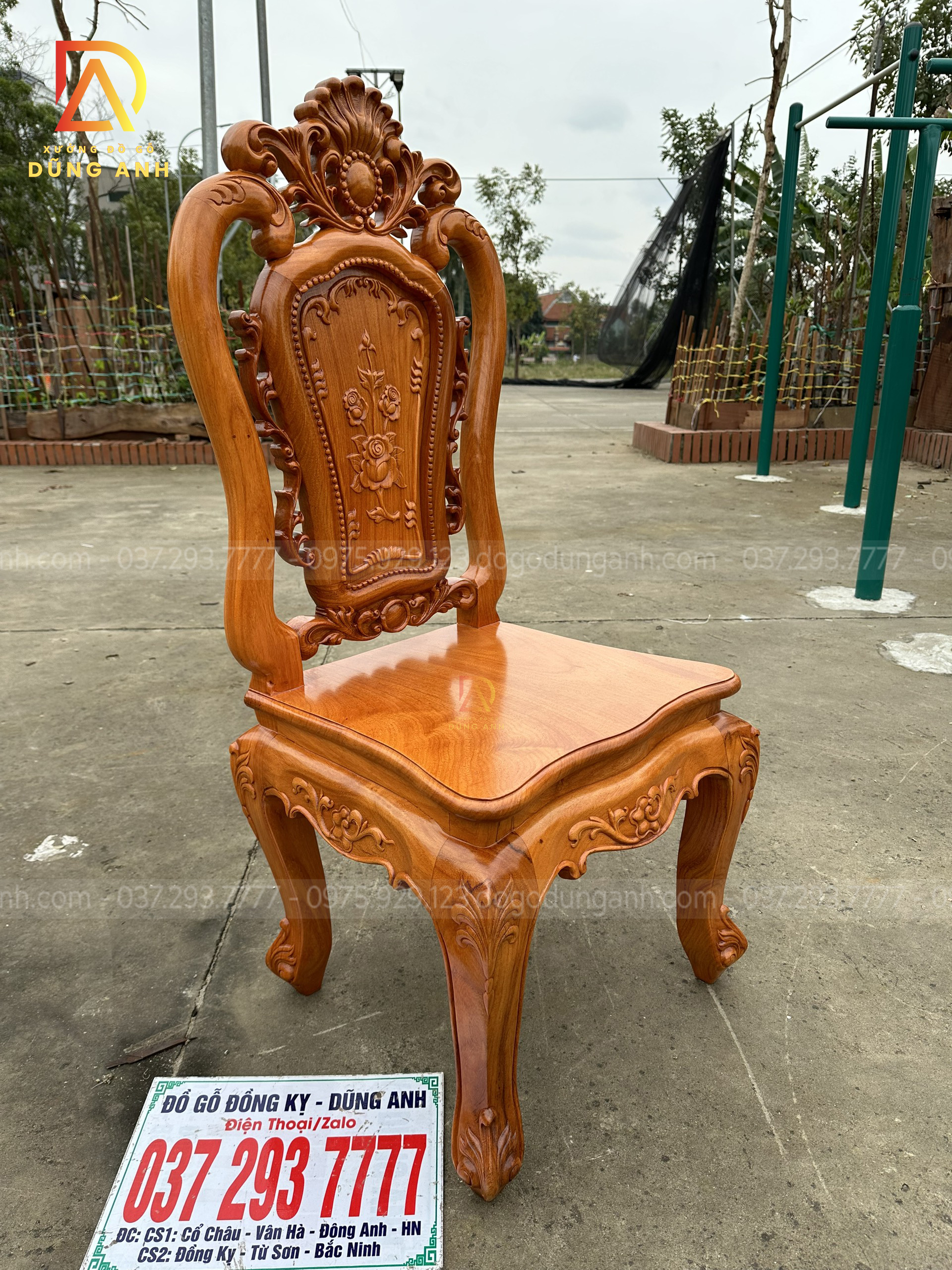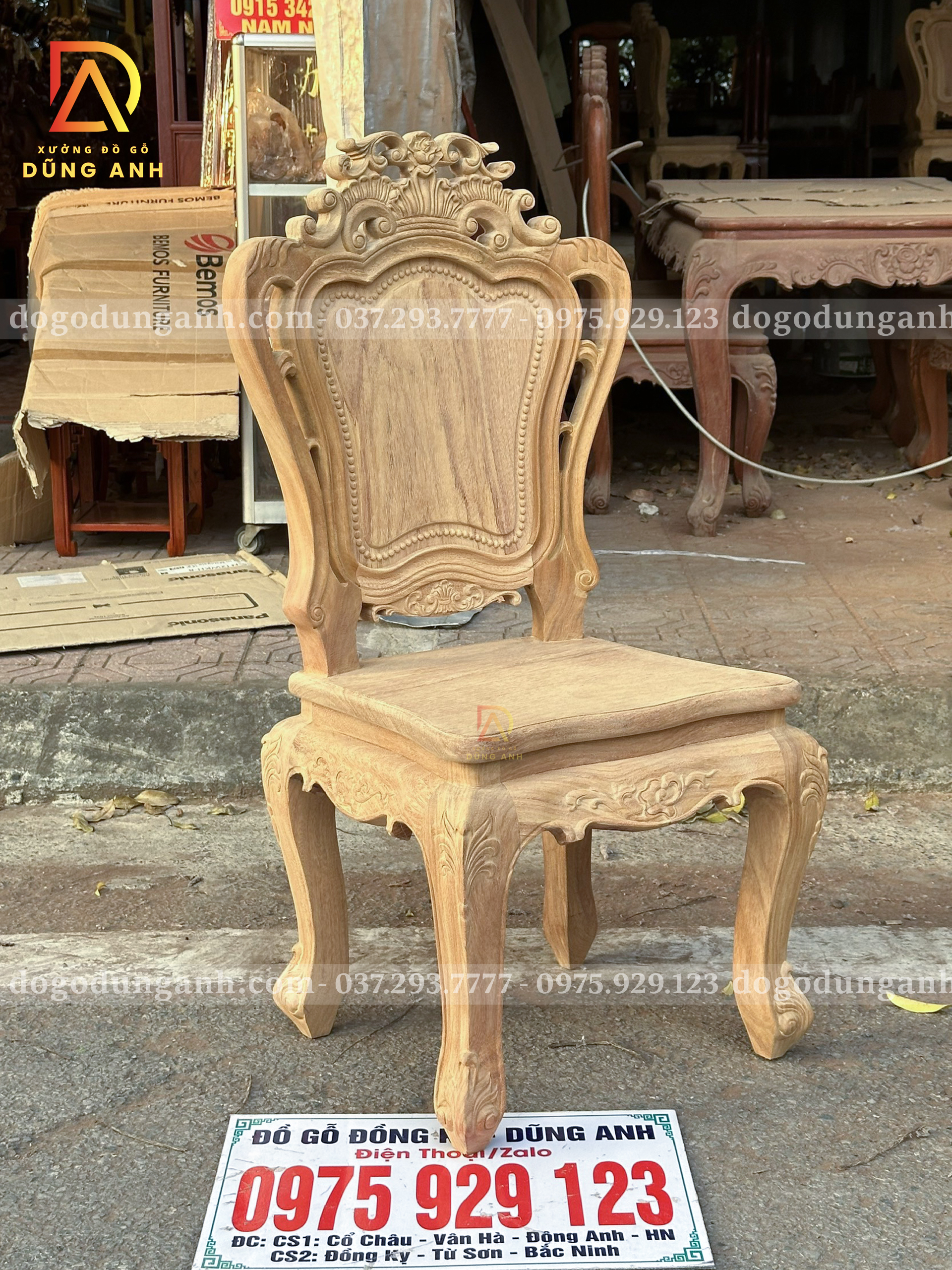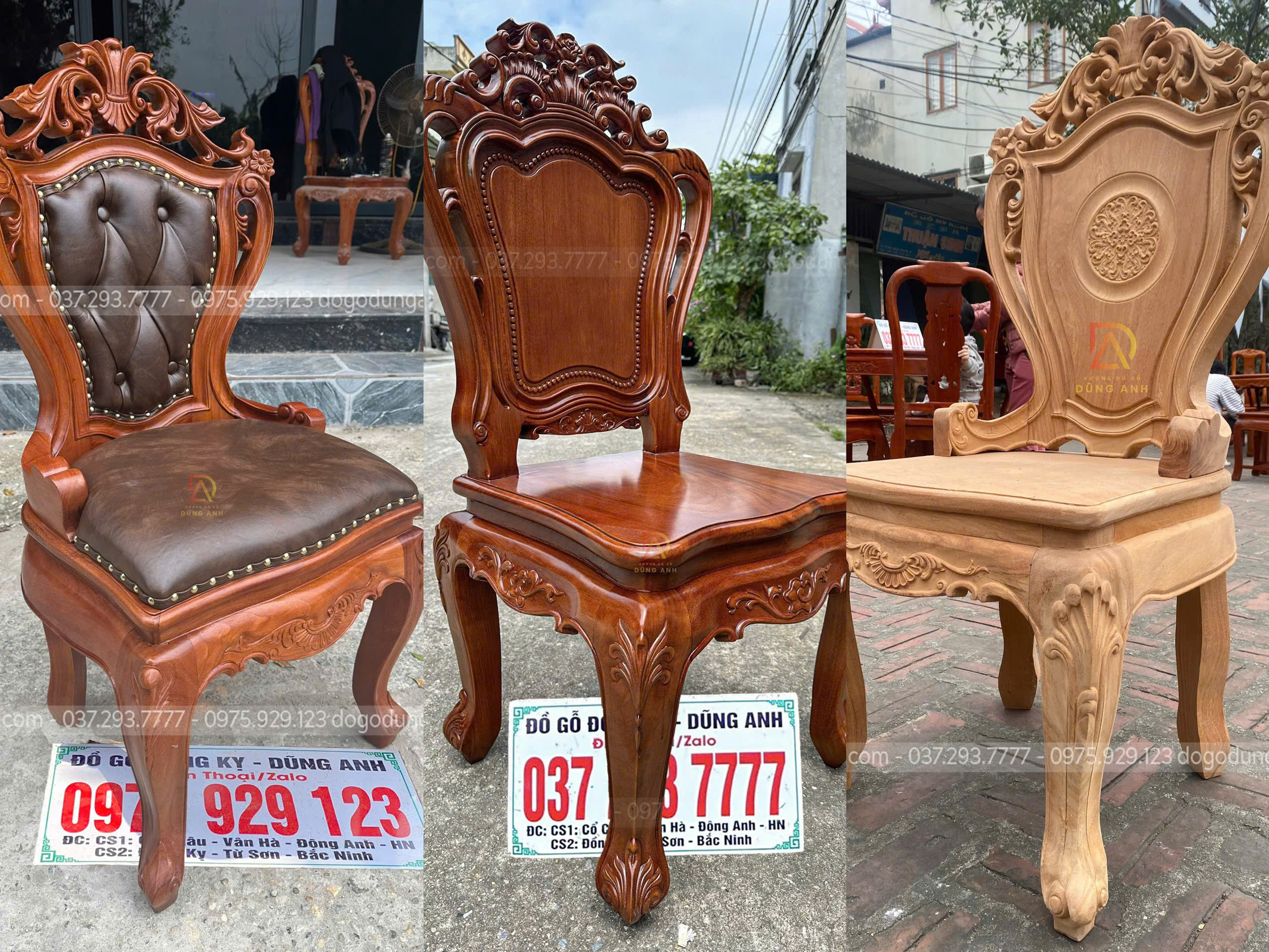 Điểm nhấn của các mẫu ghế này nằm ở những chi tiết tinh xảo, từ các đường cong mềm mại đến các họa tiết chạm khắc cầu kỳ. Những mẫu ghế có lưng tựa cao, chân ghế chắc chắn thường được ưa chuộng, mang lại sự sang trọng và quý phái cho không gian phòng ăn.