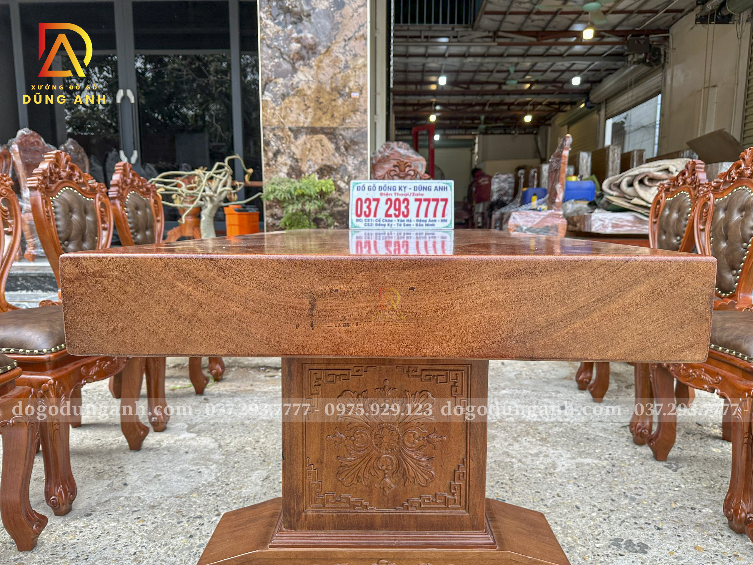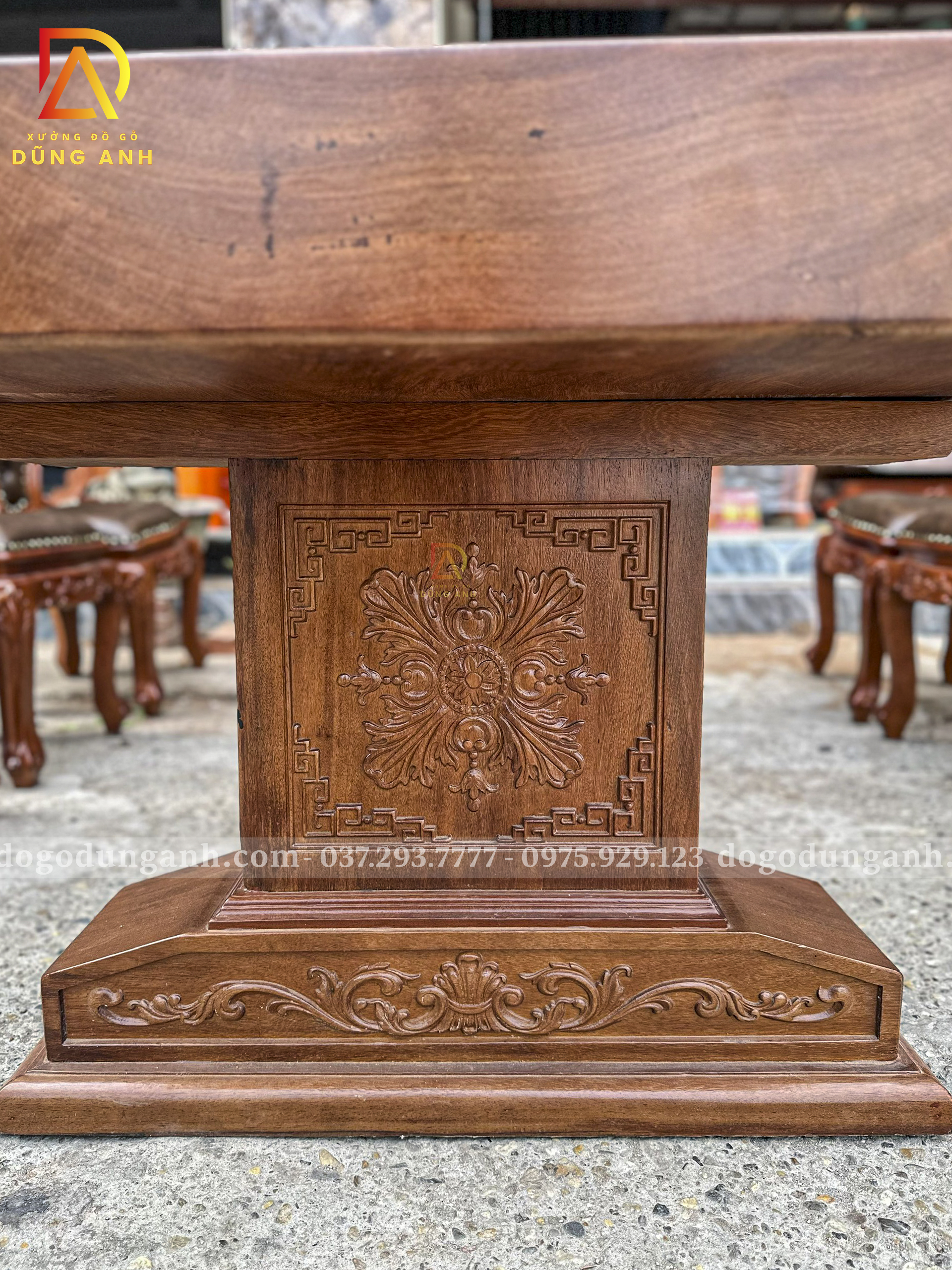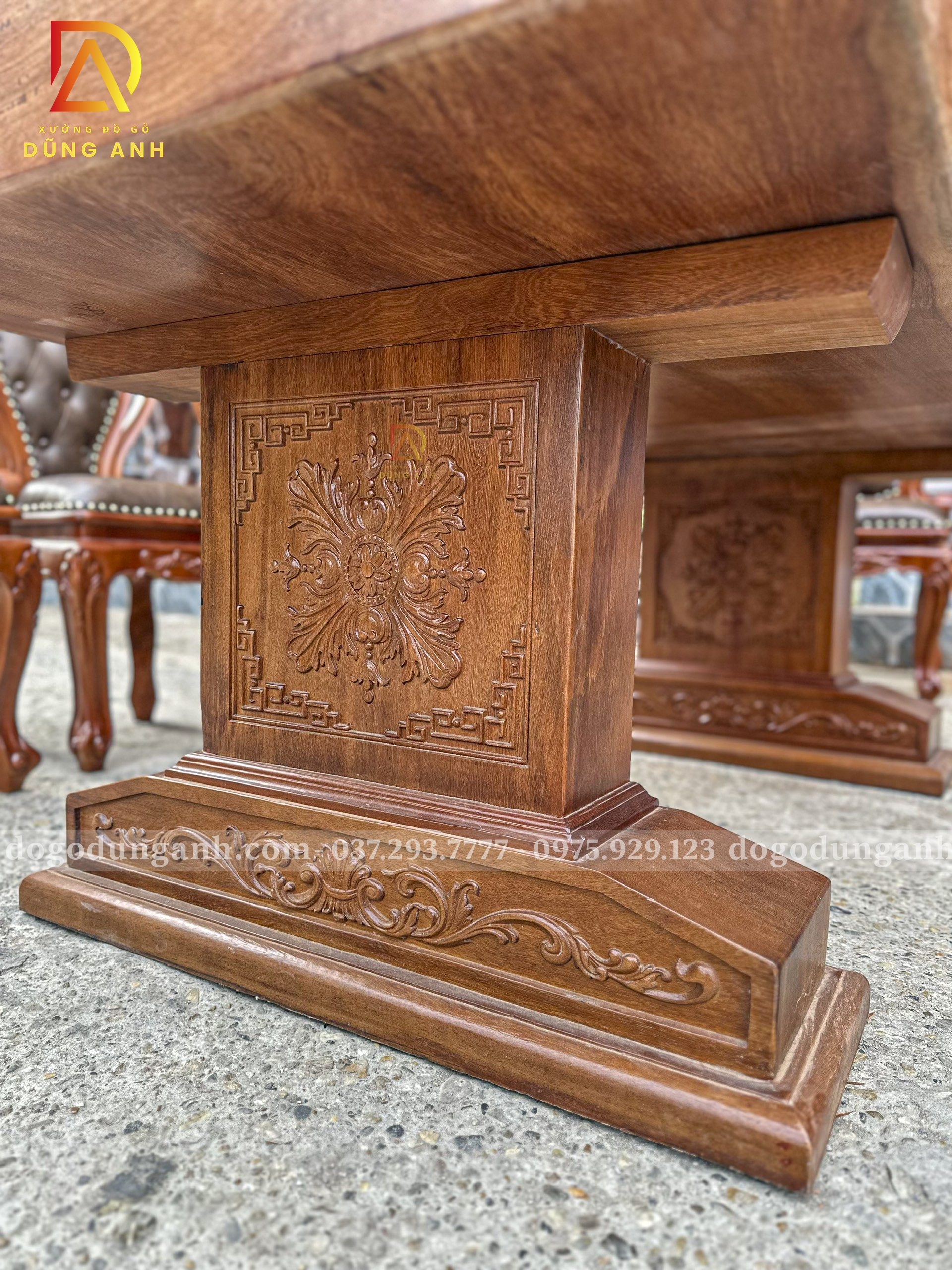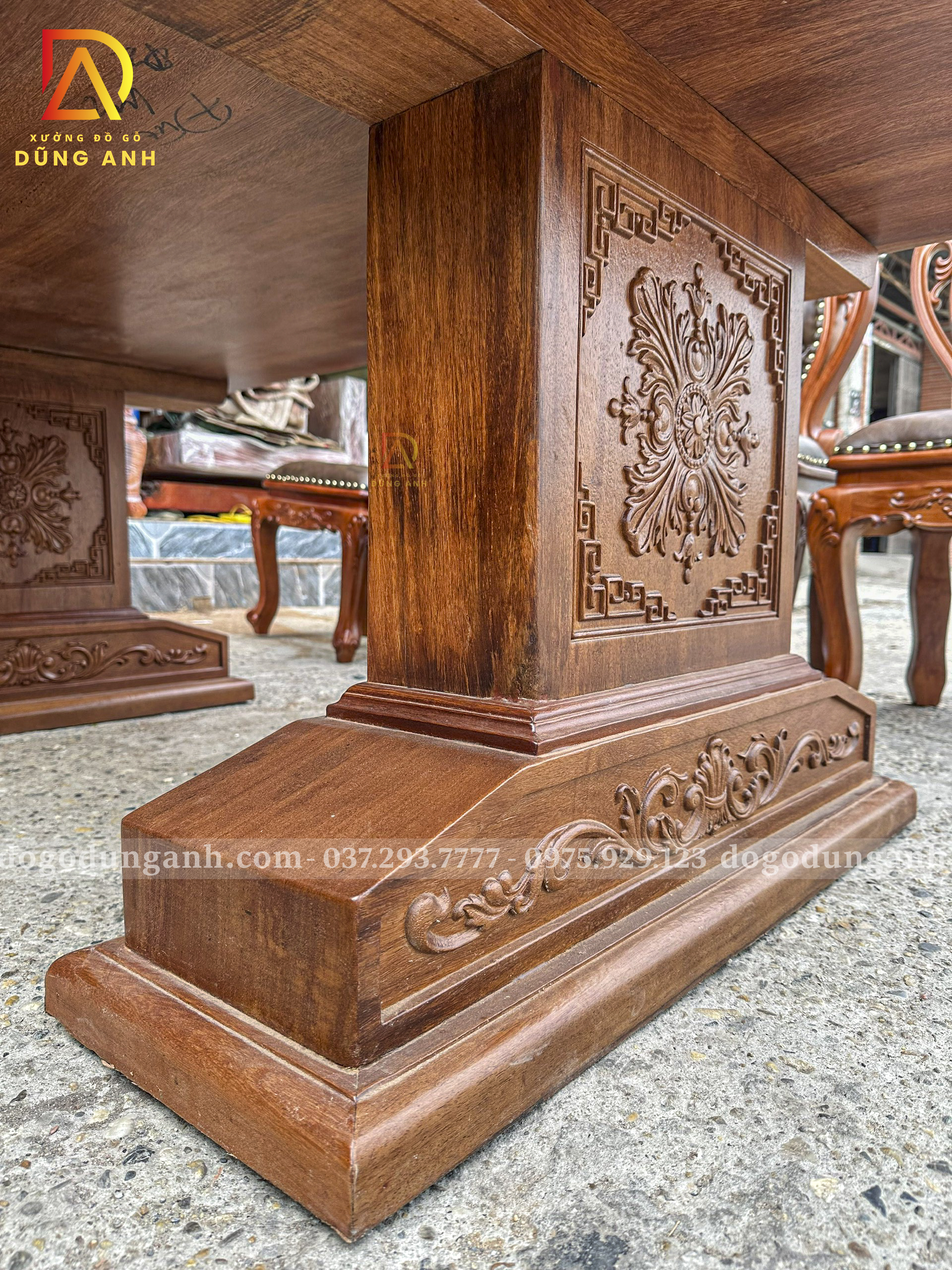- Phần chân của bàn được đục vô cùng tỉ mỉ và sắc nét được làm bởi những người thợ lành nghề với kỹ thuật rất cao và đã gắn bó với nghề lâu năm