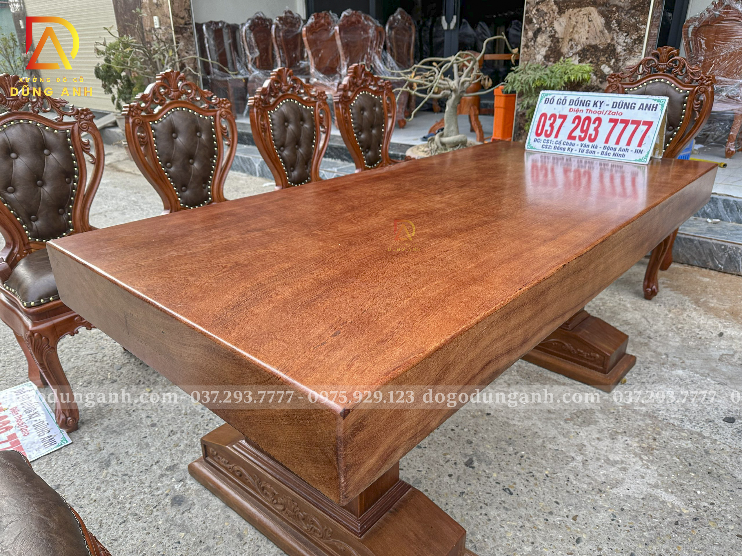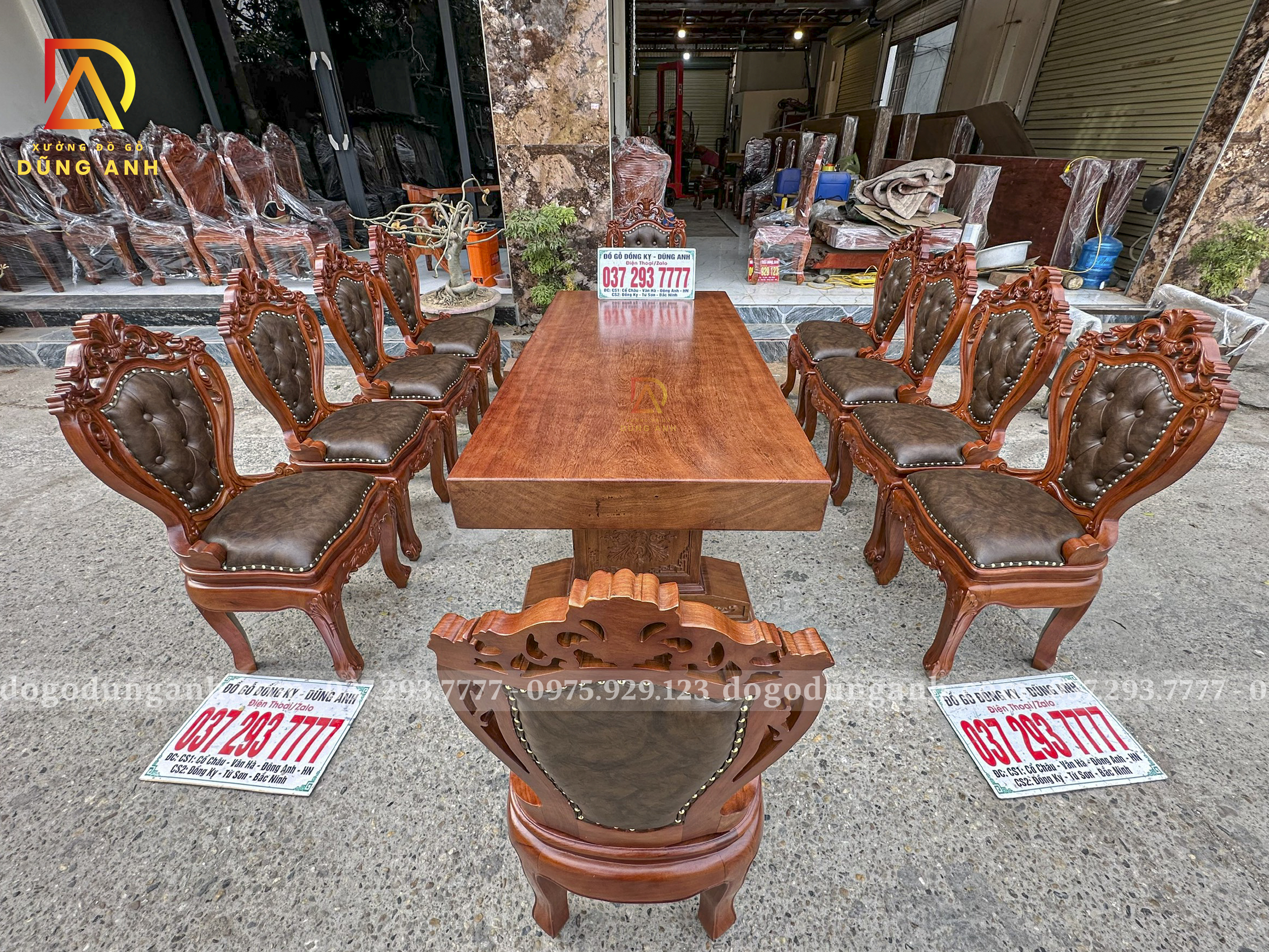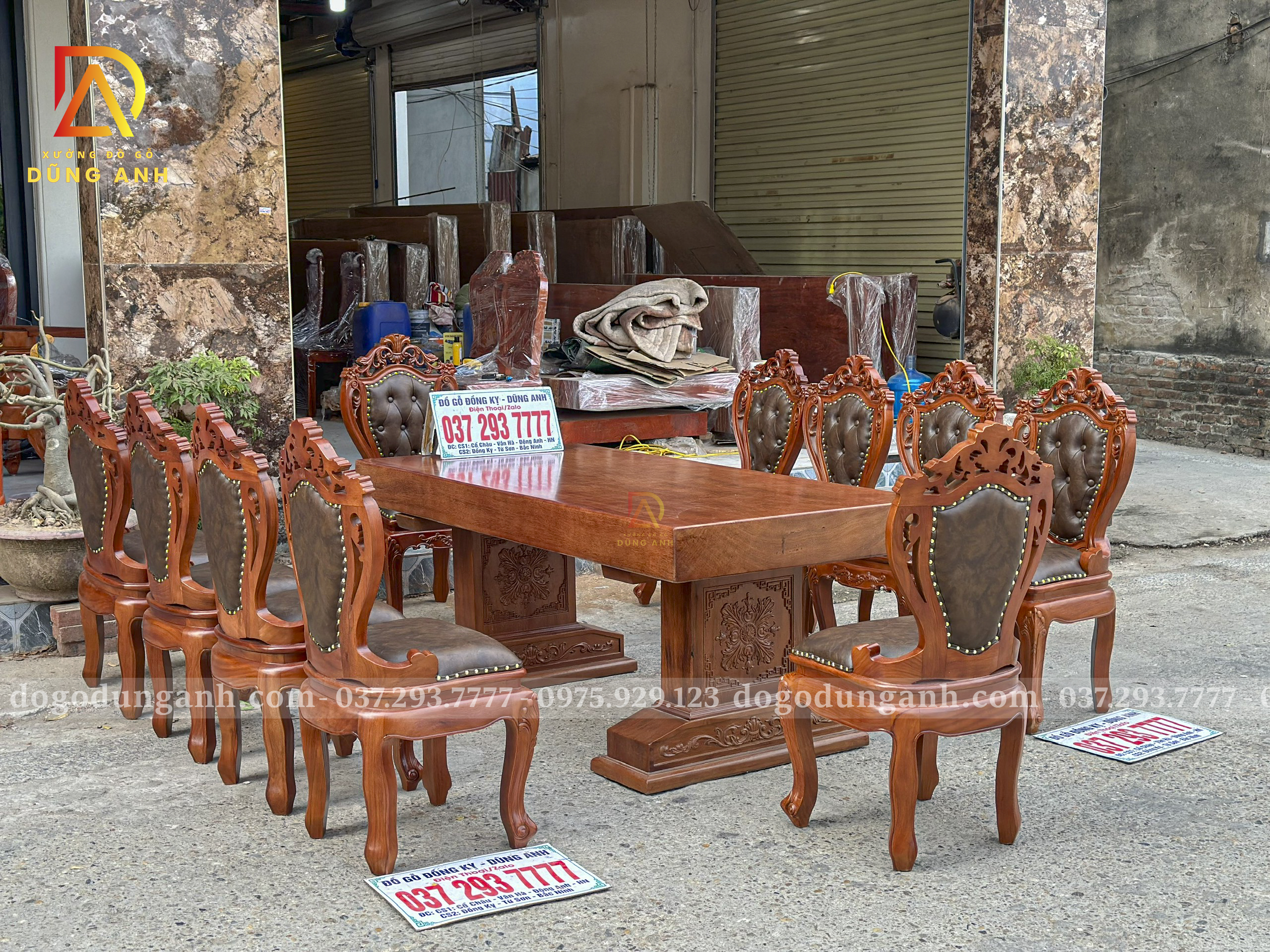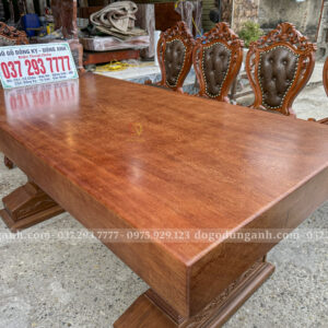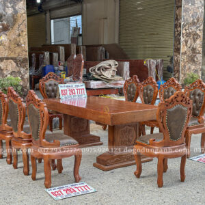 Đồ Gỗ Dũng Anh | Bộ 10 Ghế Louis Nữ Hoàng Bọc Đệm và Bàn Chữ Nhật Nguyên Khối – Gỗ Gõ Đỏ (MS11)