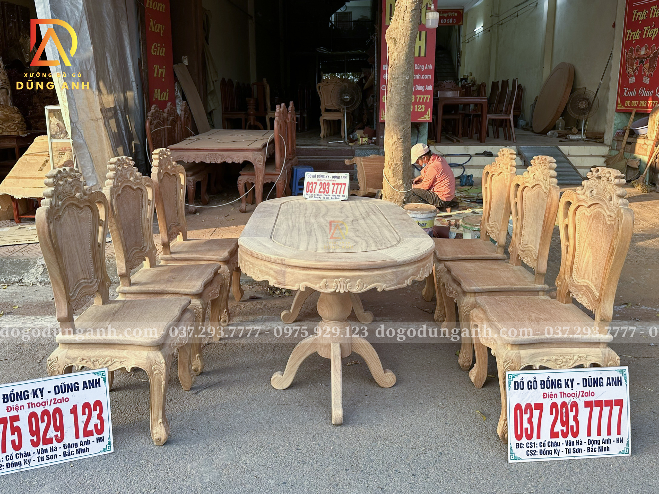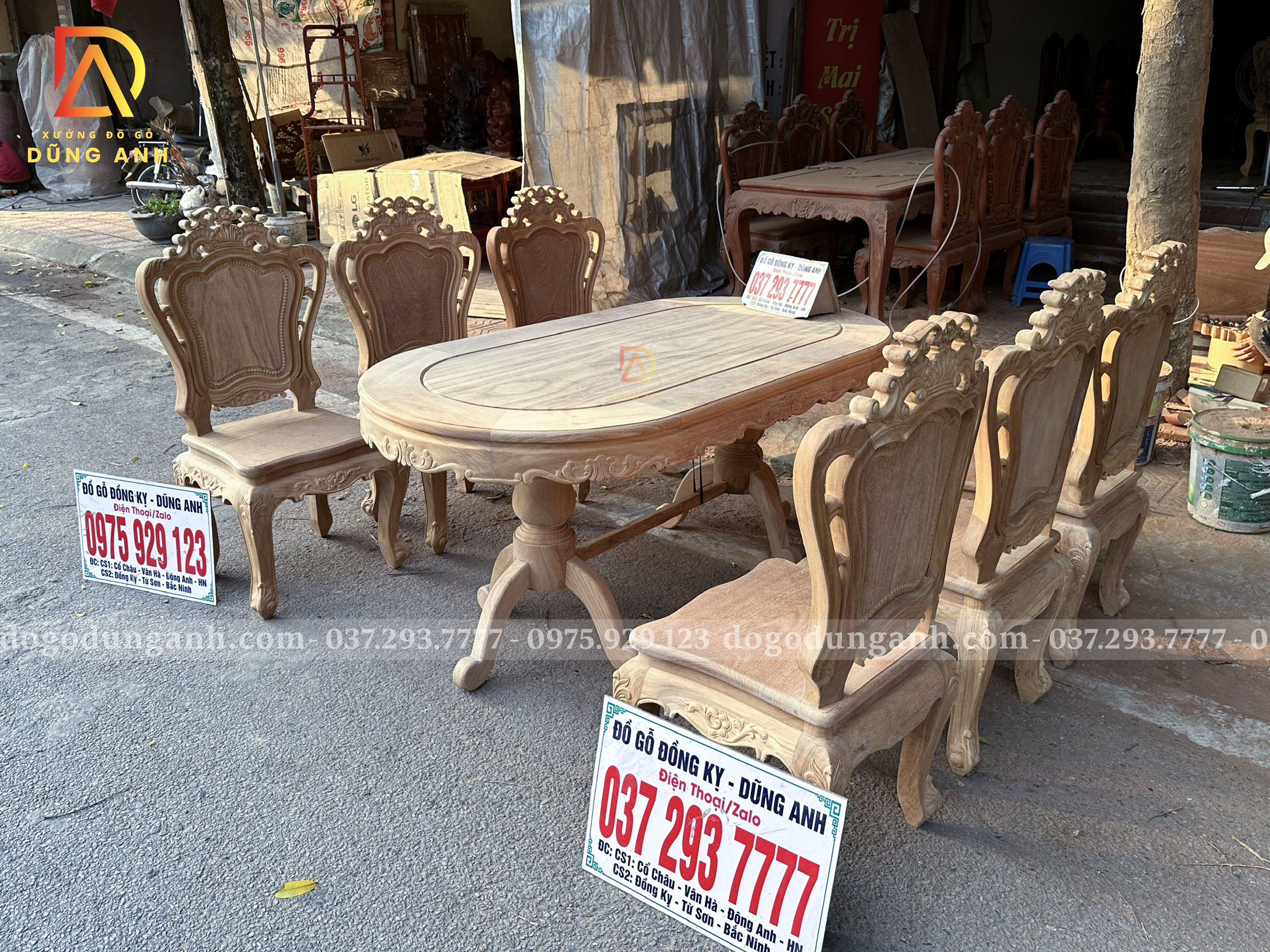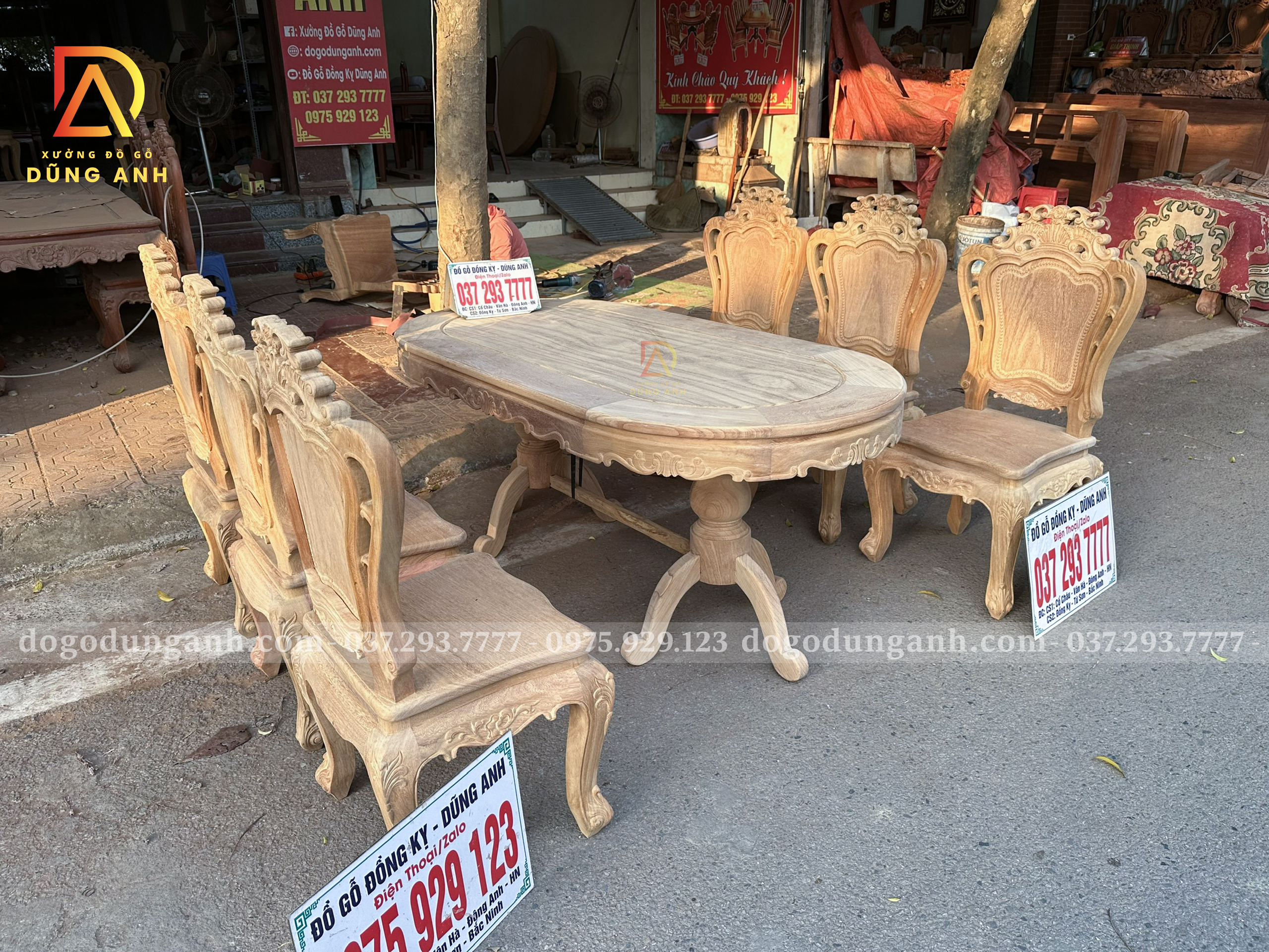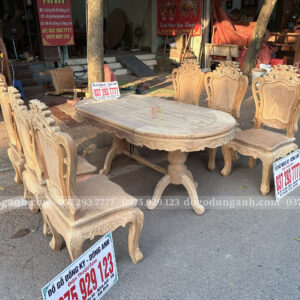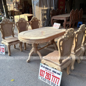 Đồ Gỗ Dũng Anh | Bộ 6 Ghế Louis Hoàng Gia + Bàn Bầu Dục – Gỗ Gõ Đỏ