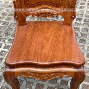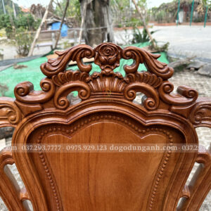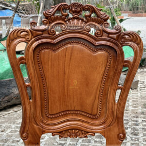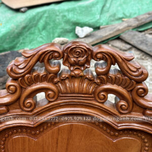 - Phần Chương ghế Liền Nguyên Khối được đục chính giữa là bông hoa hồng xung quanh là họa tiết hoa lá tây vô cùng sắc nét phía dưới