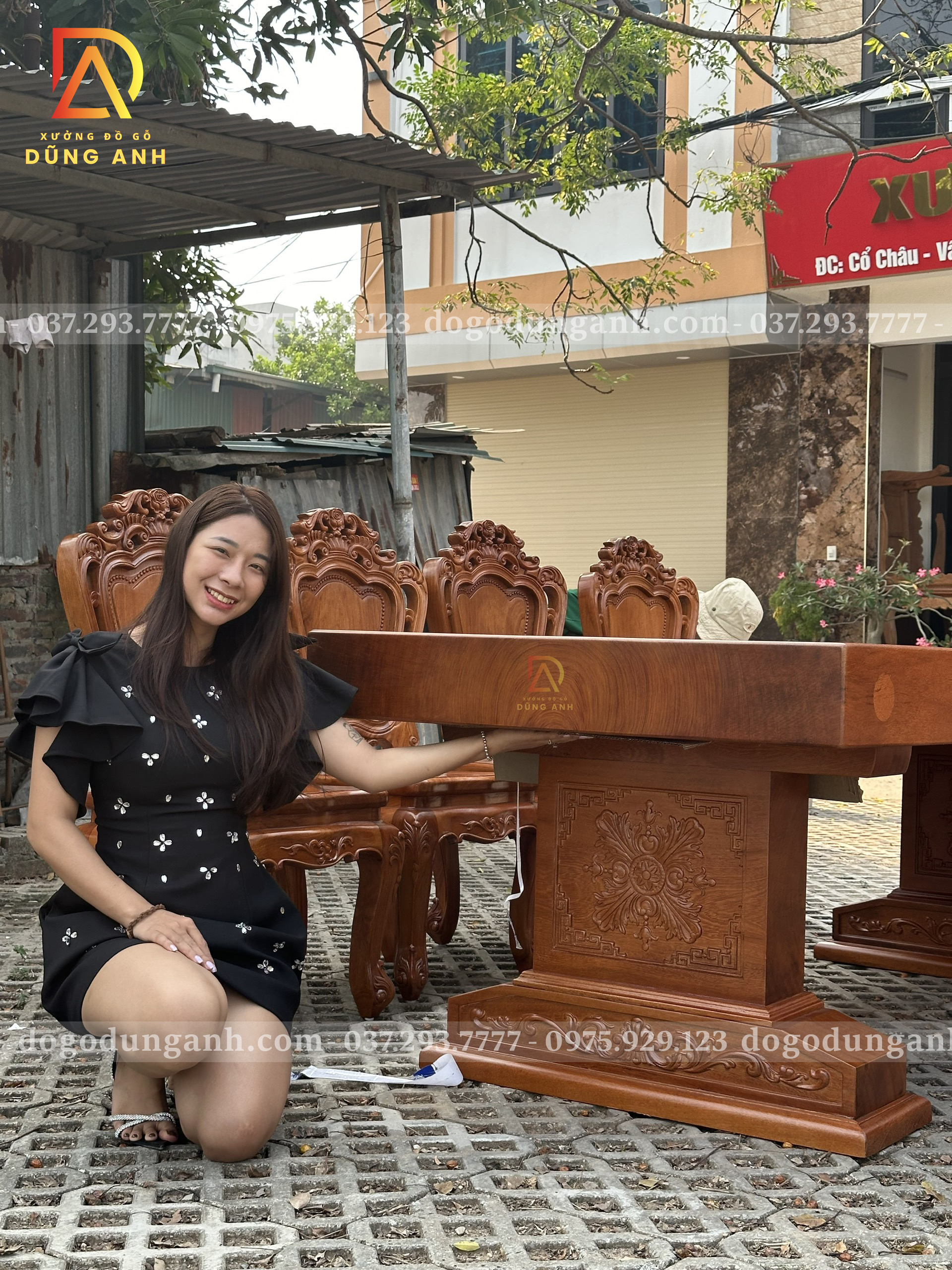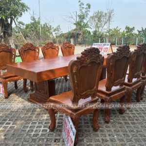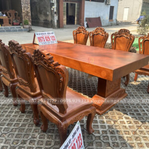 Đồ Gỗ Dũng Anh | Bộ 8 Ghế Louis Hoàng Gia + Bàn Chữ Nhật Nguyên Khối – Gỗ Gõ Đỏ