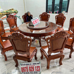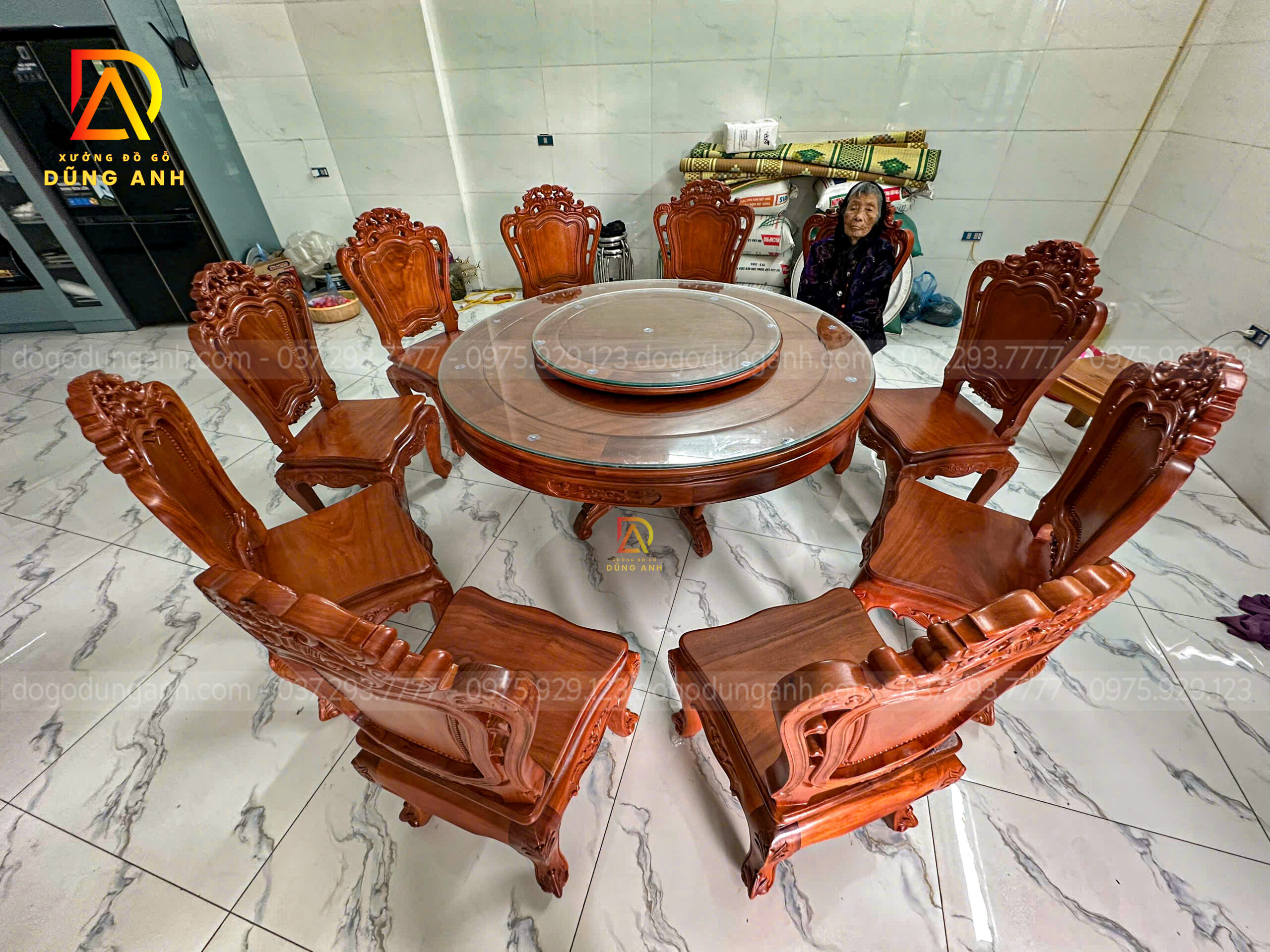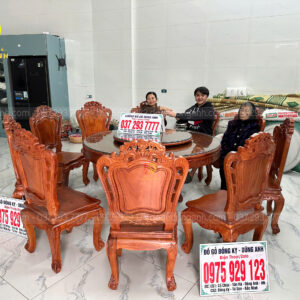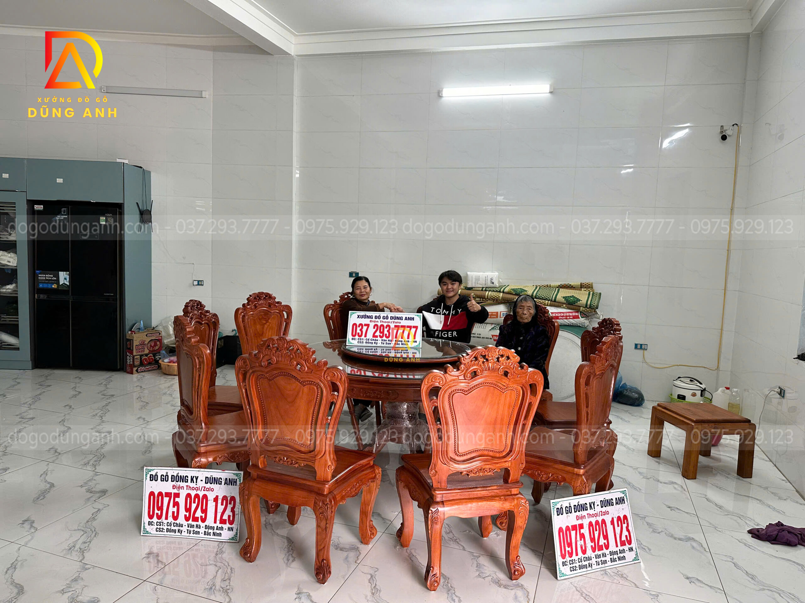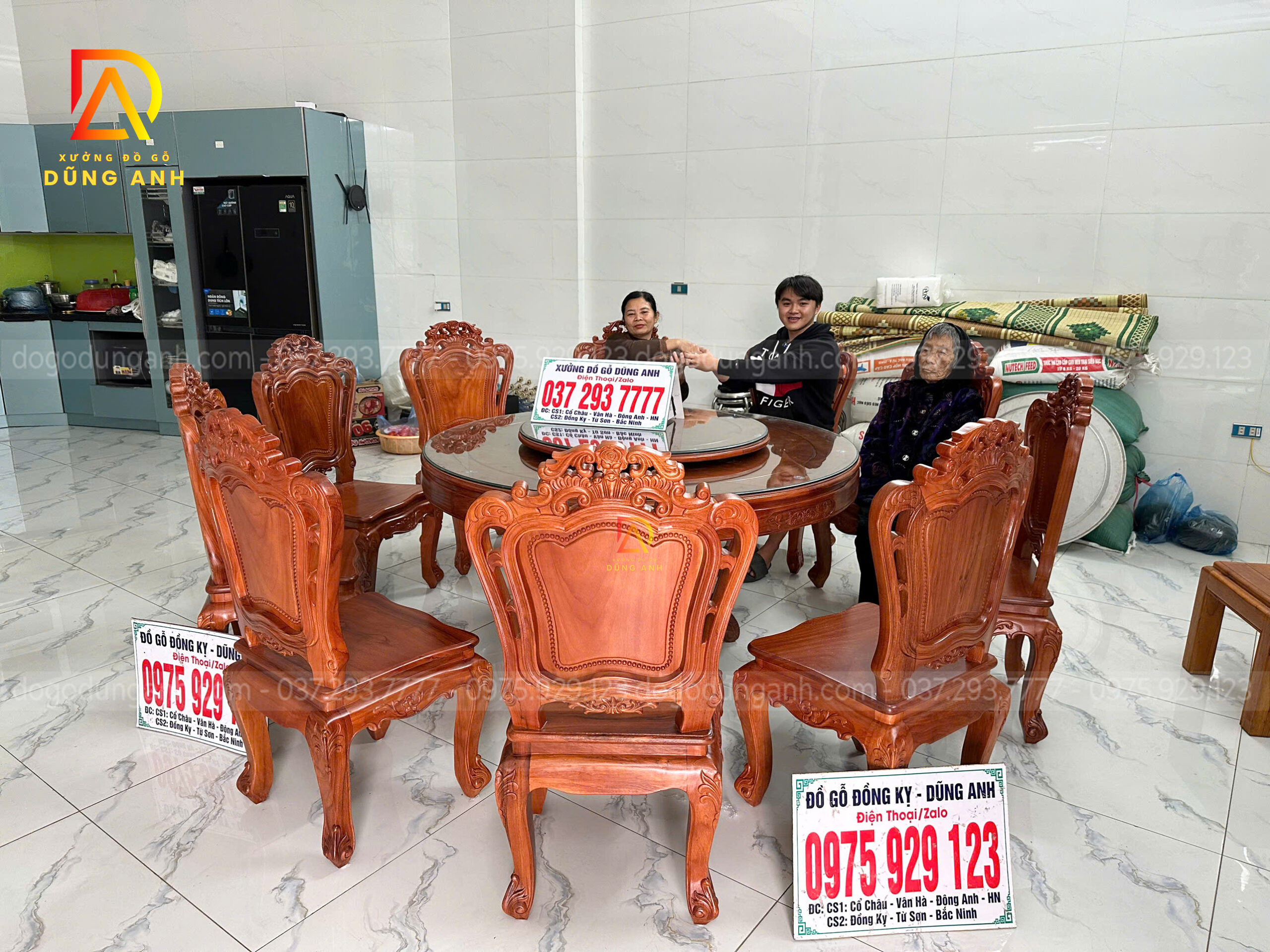 Đồ Gỗ Dũng Anh |Bàn Giao bàn ăn V.I.P 10 ghế Lousi hoàng gia + bàn tròn mâm xoay – Gỗ Gõ đỏ- tới địa chỉ TP Bắc Giang