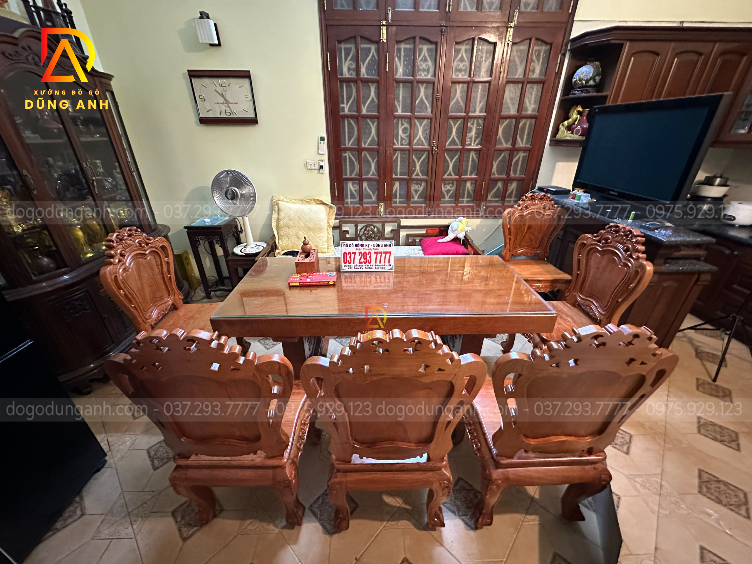 Đồ Gỗ Dũng Anh | Bàn giao bộ 5 ghế Louis Hoàng gia + Bàn nguyên khối – Gỗ Hương đá