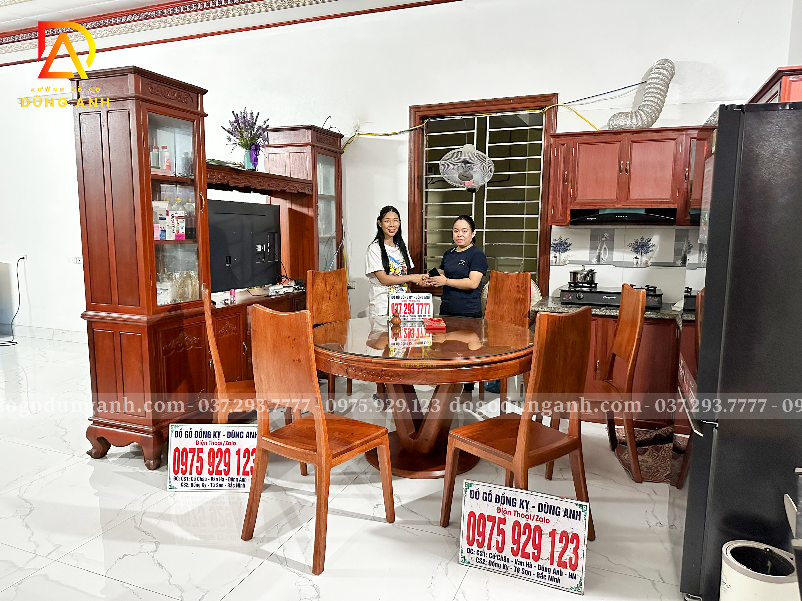 Đồ Gỗ Dũng Anh | Bàn Giao Bộ Bàn Ăn 6 Ghế Ba Tiêu + Bàn Tròn Chân Trụ Chữ V Nguyên Khối Cho Chị Kim Anh – Tiên Du- Bắc Ninh