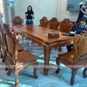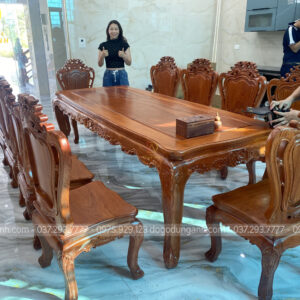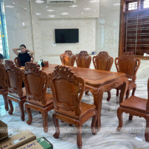 Bộ sản phẩm bao gồm bàn củ lạc và 10 ghế hoàng gia – lựa chọn hoàn hảo cho những ai yêu thích phong cách nội thất tinh tế và đẳng cấp.
