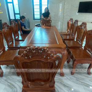 Bàn củ lạc kết hợp 10 ghế hoàng gia gỗ hương đá