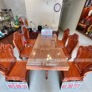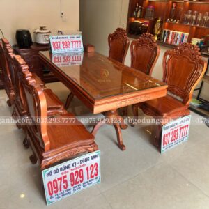 Đồ Gỗ Dũng Anh | Bàn Giao cho Anh Trợn – Sóc sơn Bộ 6 ghế louis Hoàng Gia + Bàn Chữ Nhật – Gỗ Hương Đá