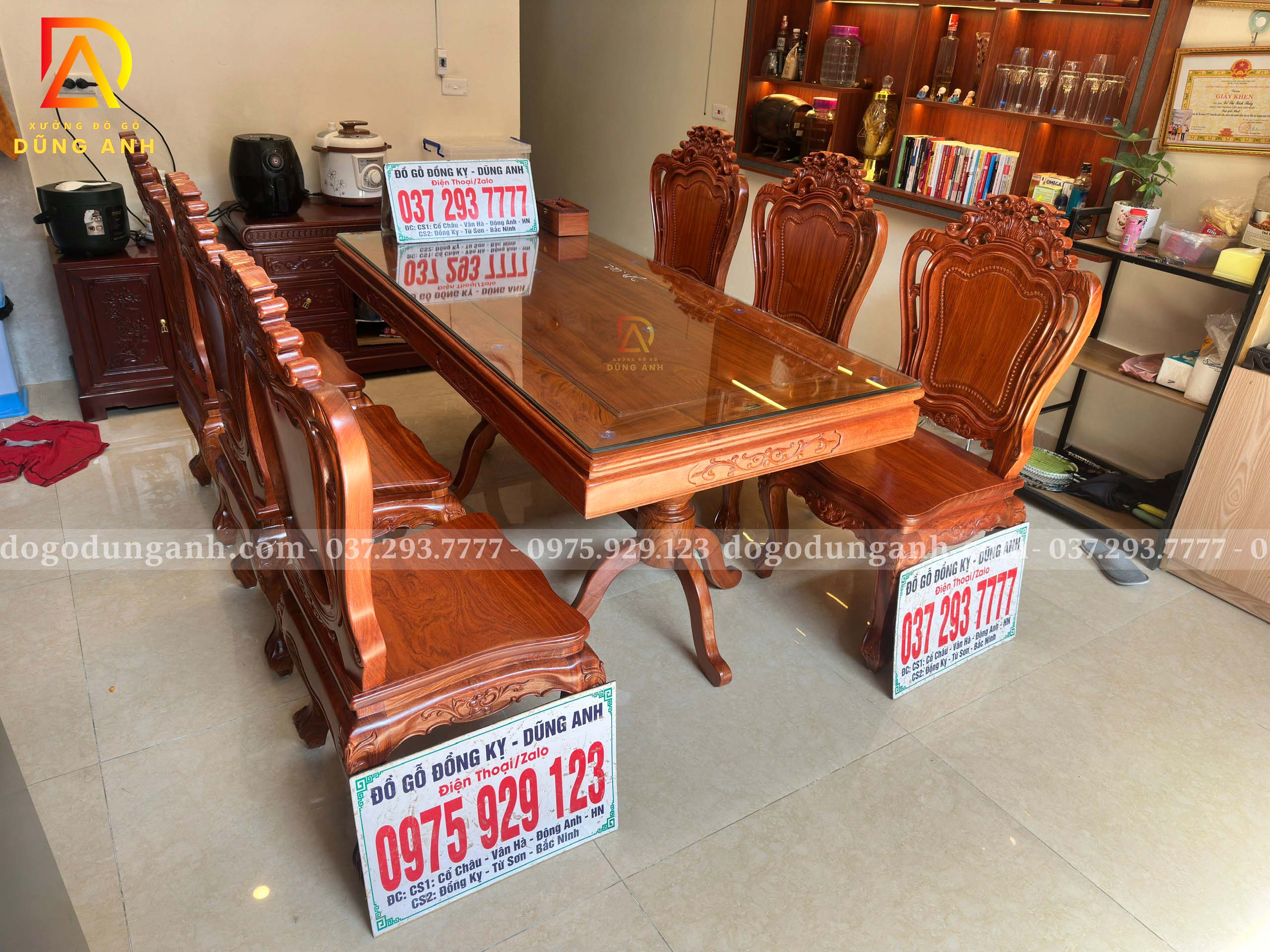 Đồ Gỗ Dũng Anh | Bàn Giao Bộ Sản Phẩm 6 Ghế Louis Hoàng Gia Kết Hợp Bàn Chữ Nhật Đến Anh Trợn – Sóc Sơn ( Gỗ Hương Đá )