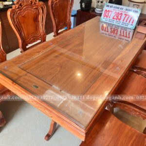 Mặt bàn chữ nhật được thiết kế liền khối, kết hợp hệ long khung chắc chắn, các đường nét vuông vắn, sắc sảo, vừa mang tính thẩm mỹ cao vừa đảm bảo sự ổn định, bền bỉ trong quá trình sử dụng. Khi kết hợp cùng 6 ghế Hoàng Gia đồng bộ, tổng thể bộ sản phẩm trở nên cân đối, hài hòa, phù hợp với nhiều không gian từ nhà phố đến biệt thự.