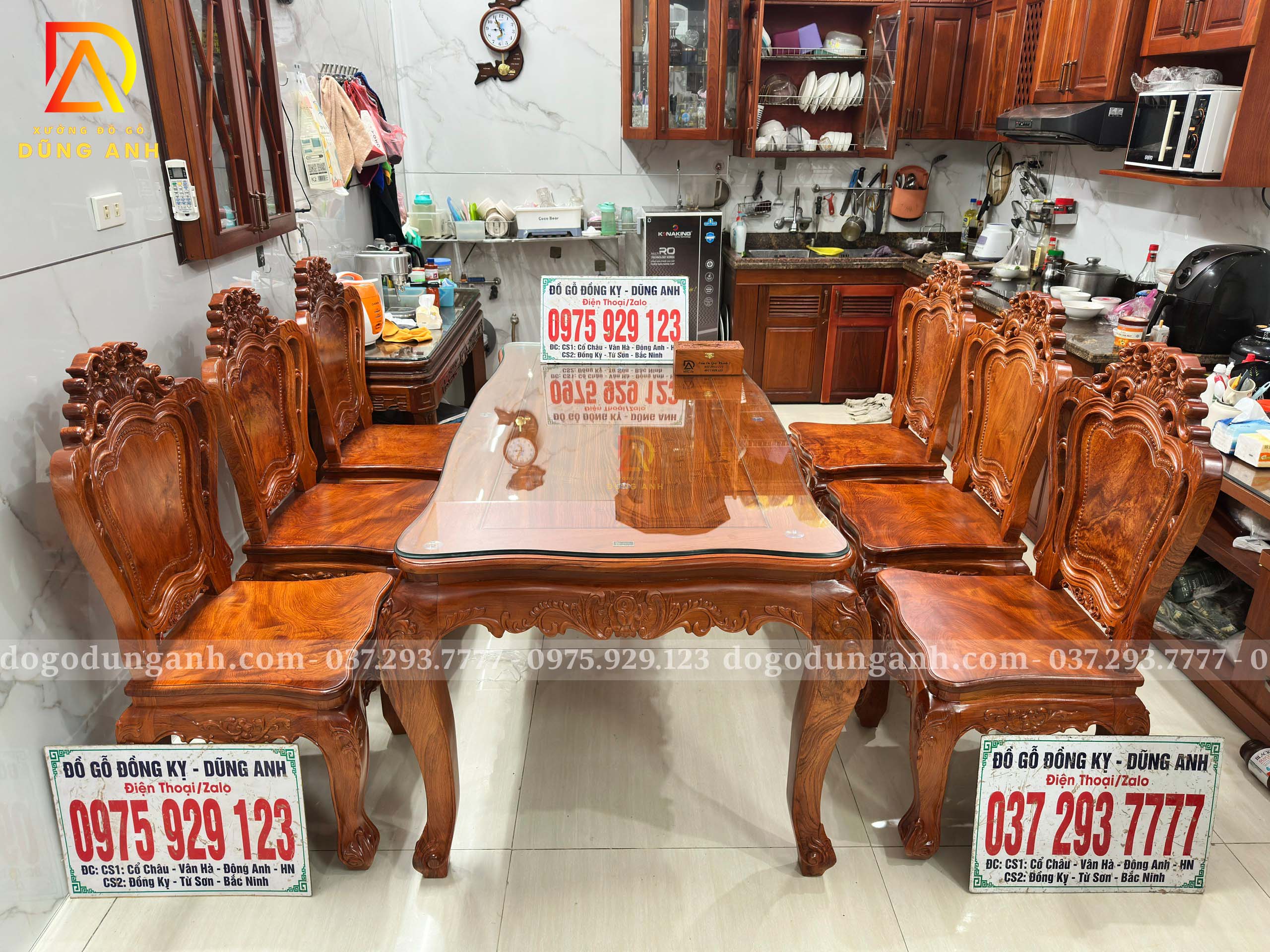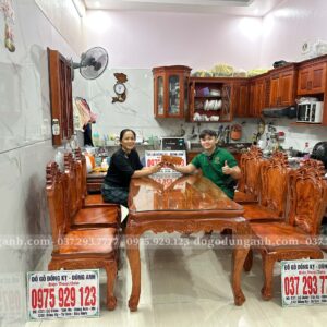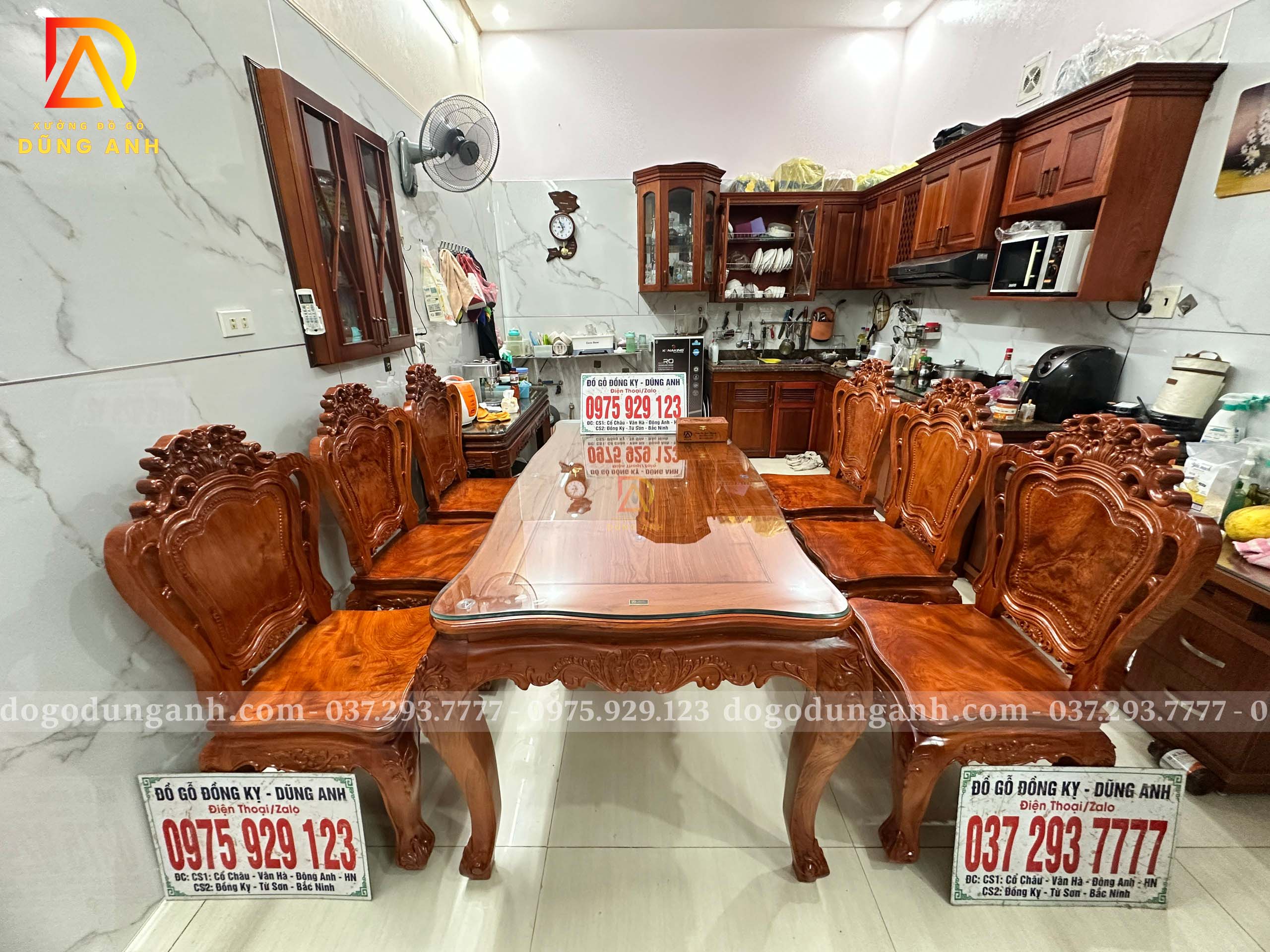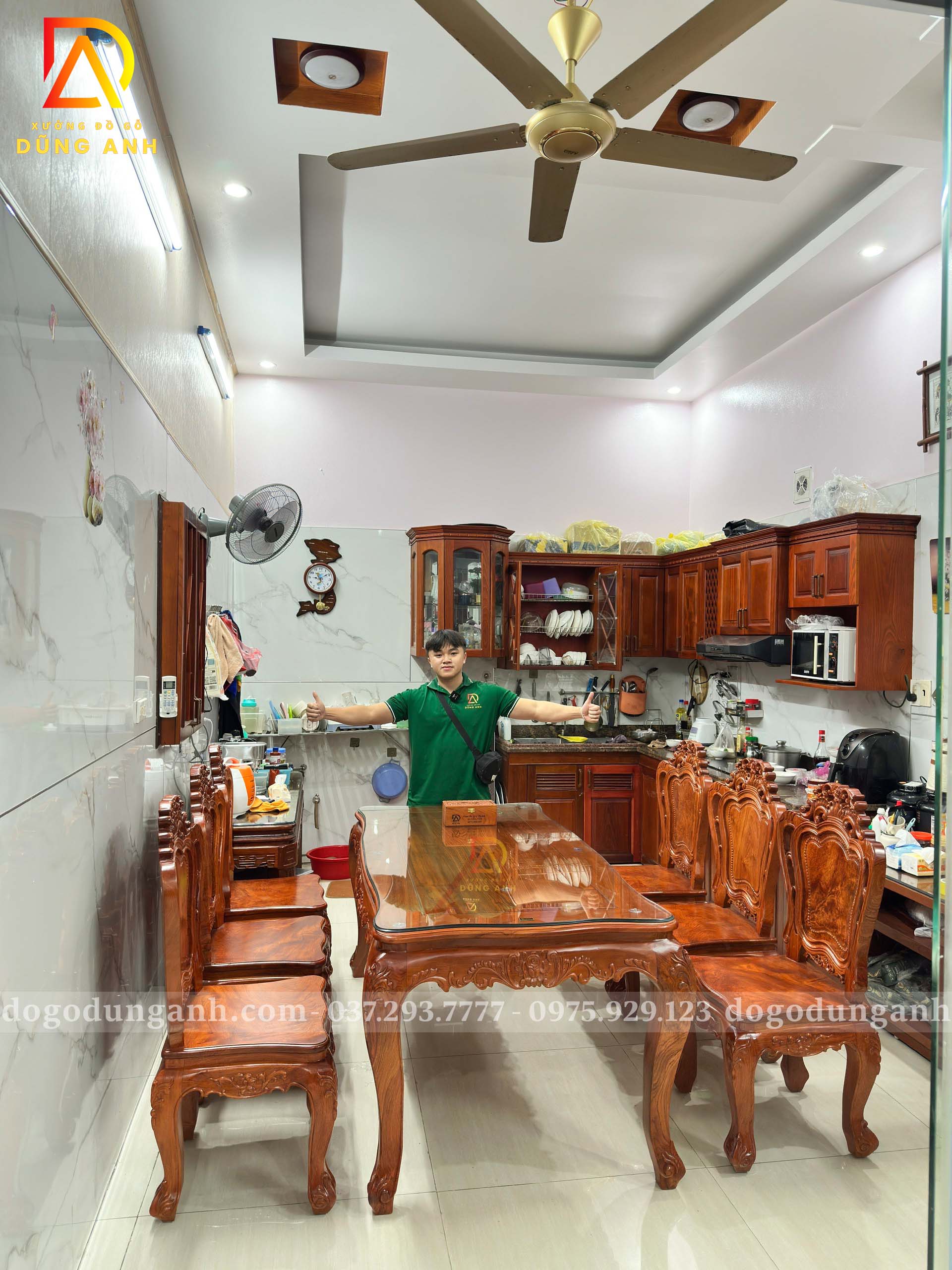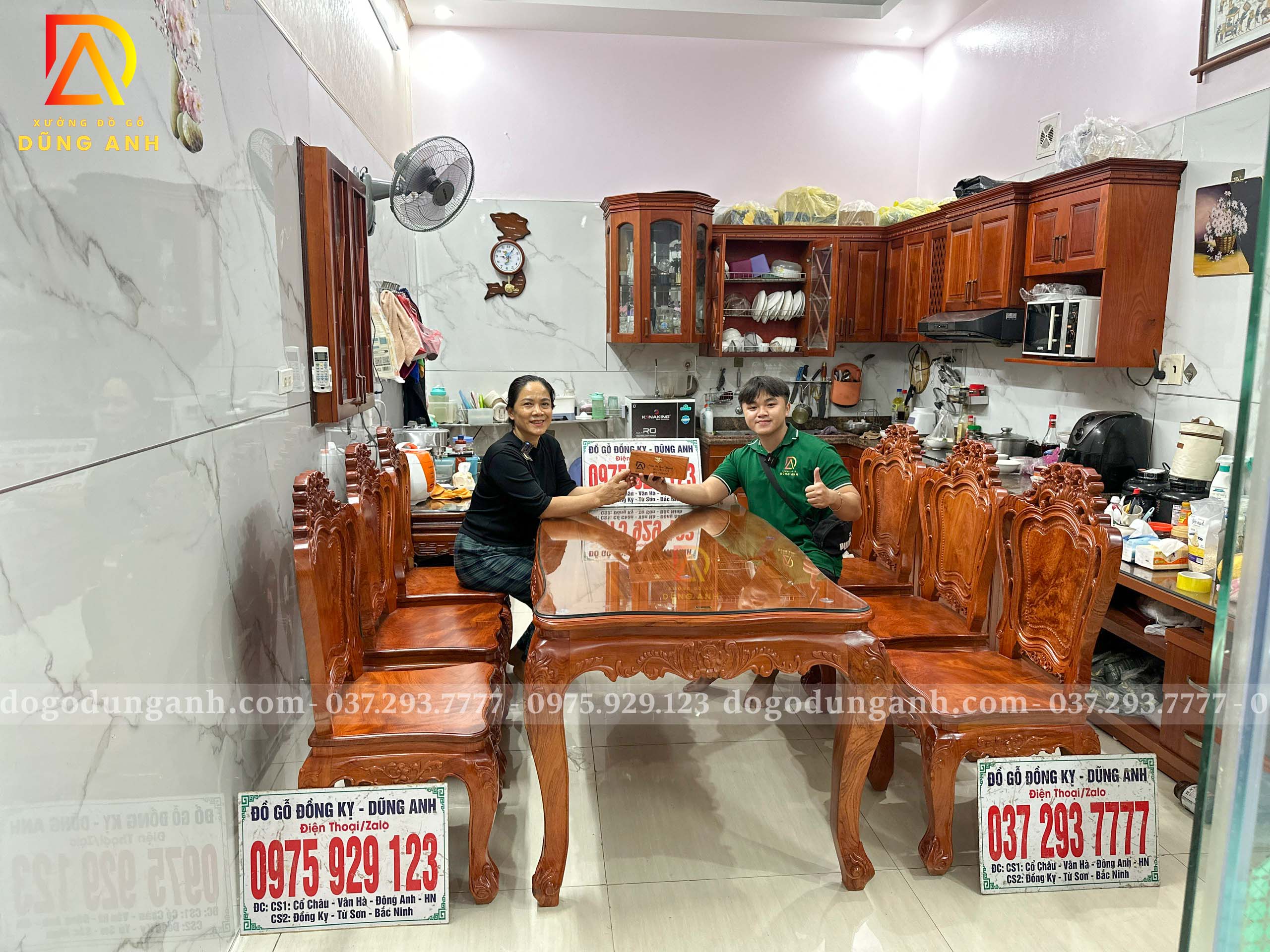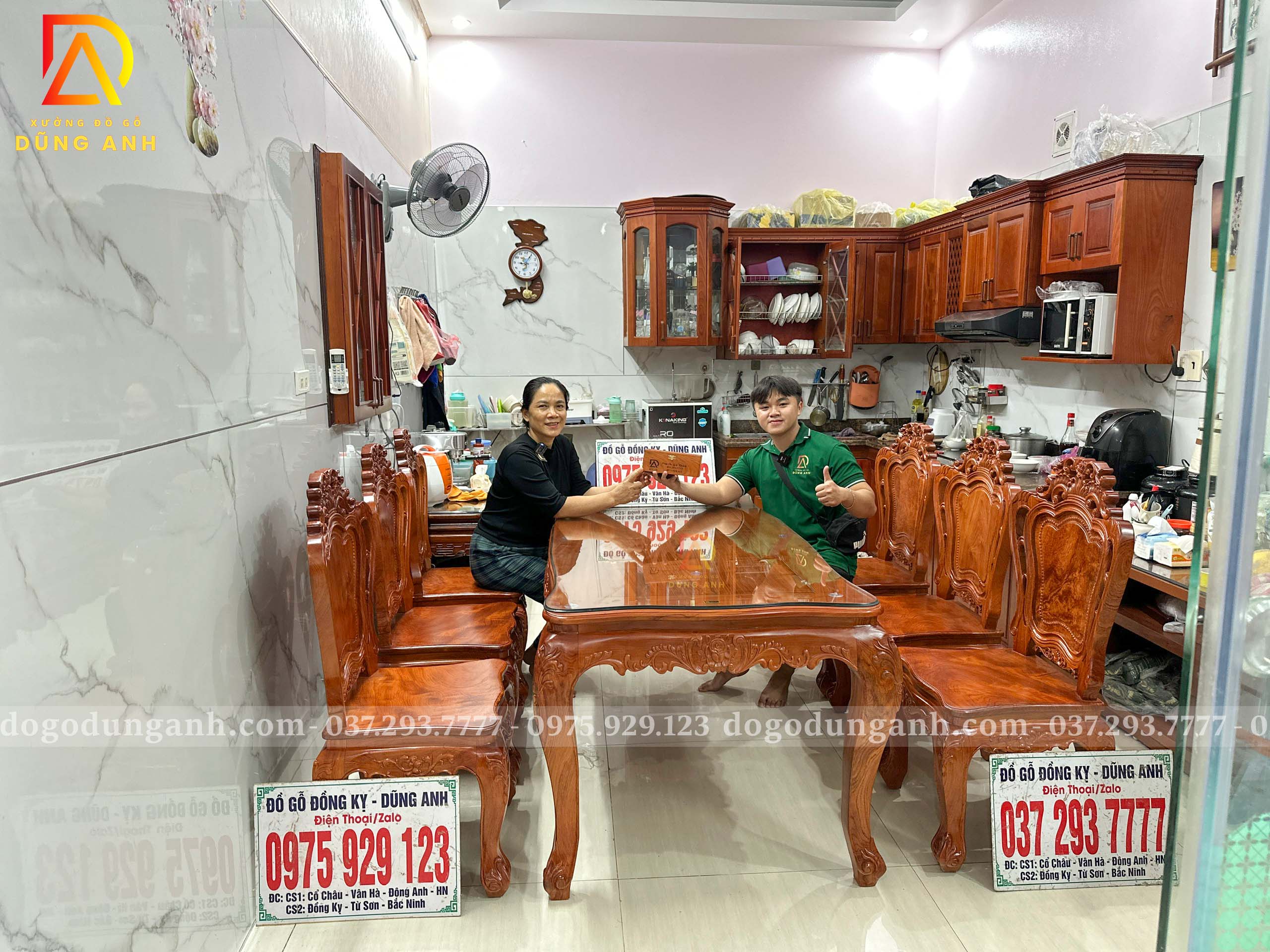Đồ Gỗ Dũng Anh | Bàn Giao cho Anh Lợi – Bắc Ninh Bộ 6 ghế louis Hoàng Gia + Bàn Củ Lạc – Gỗ Hương Đá