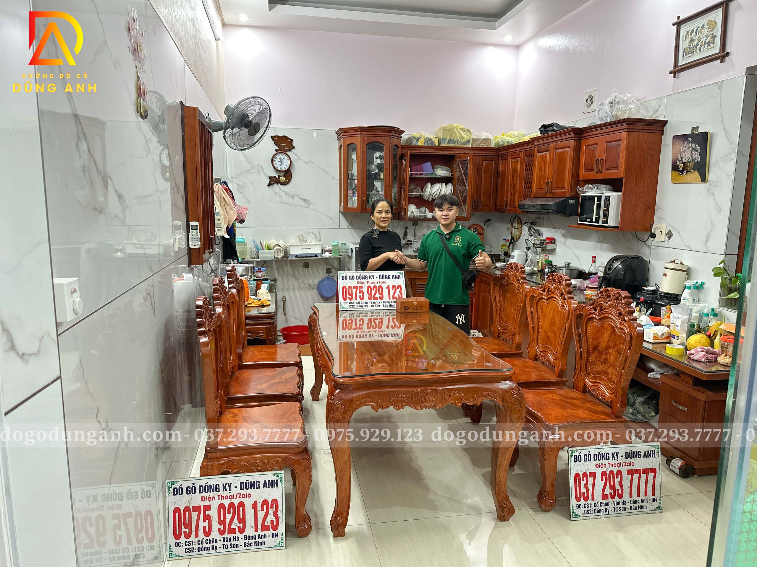 Đồ Gỗ Dũng Anh | Bàn Giao Bộ Sản Phẩm 6 Ghế Louis Hoàng Gia Kết Hợp Bàn Củ Lạc Đến Anh Lợi – Bắc Ninh ( Gỗ Hương Đá ).