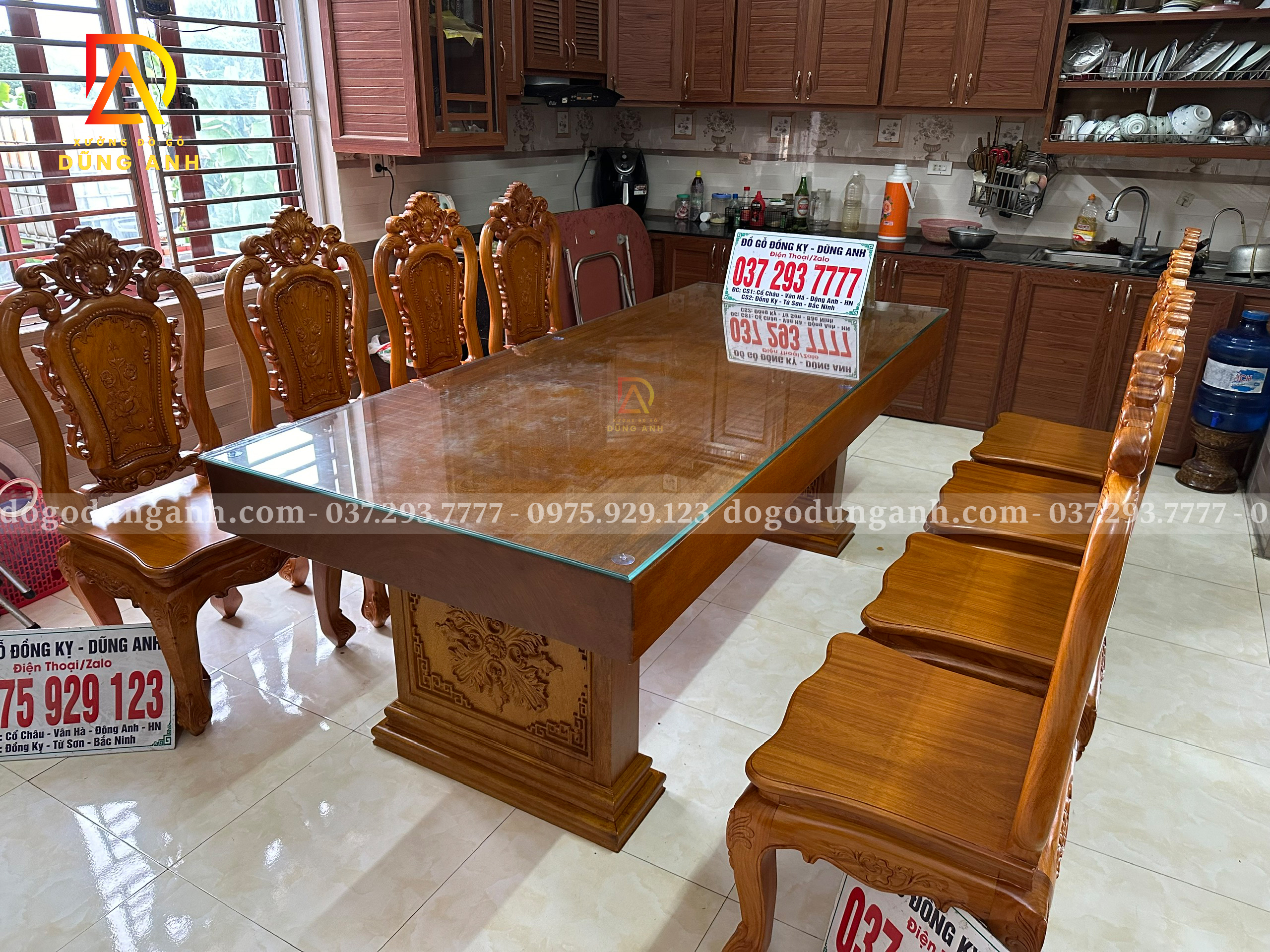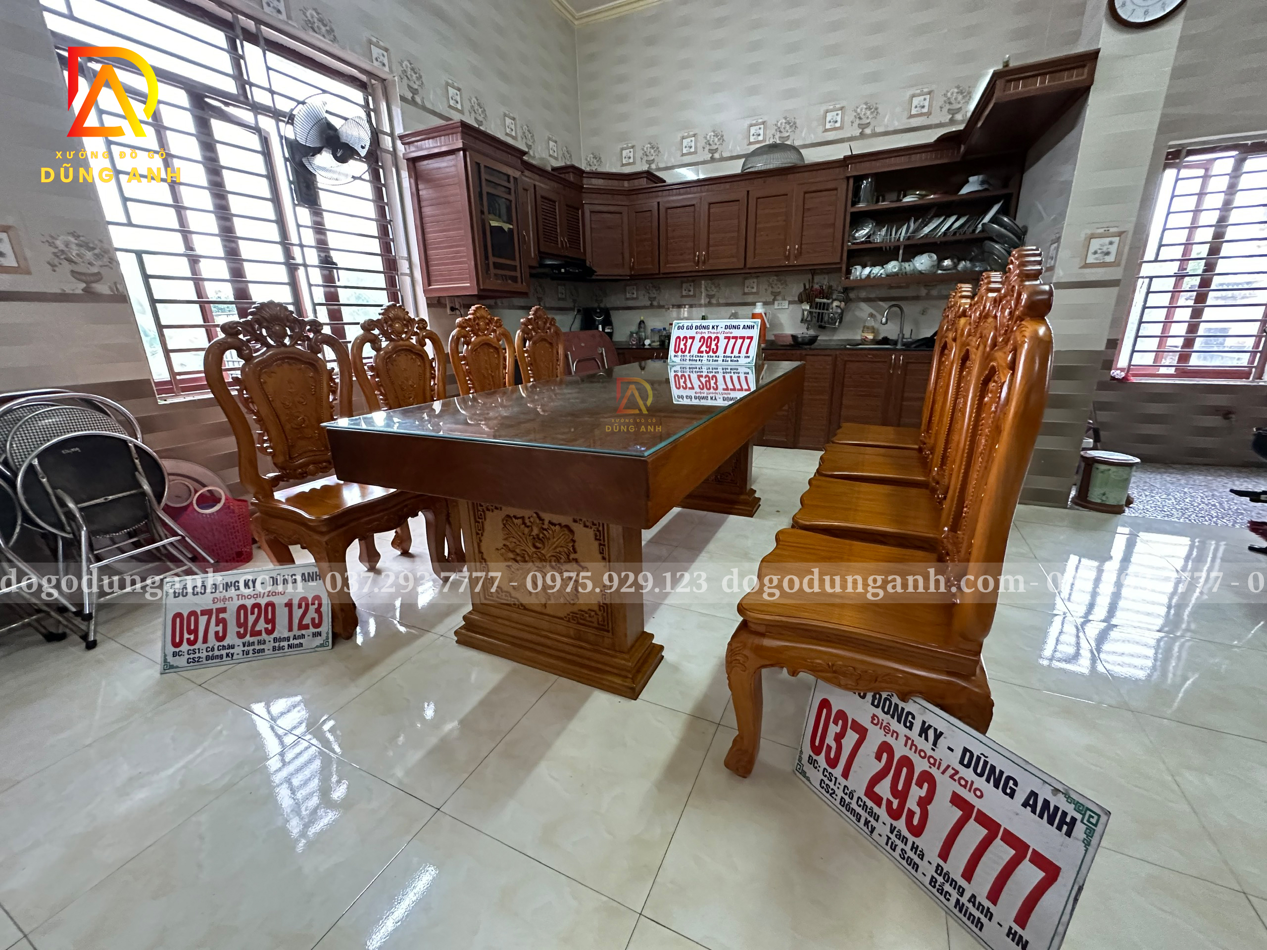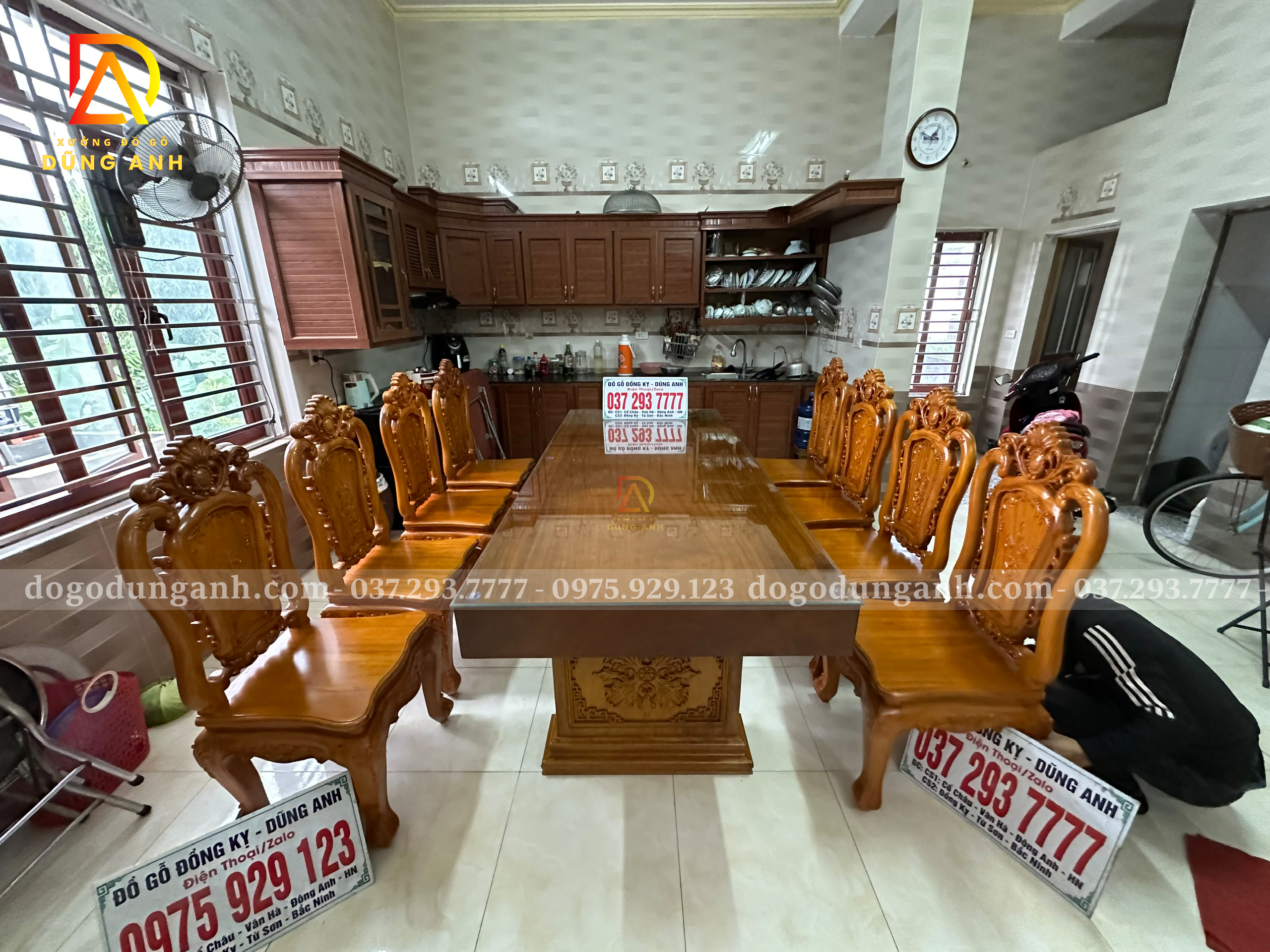 Đồ Gỗ Dũng Anh | Bàn giao bộ sản phẩm 8 ghế louis hoa hồng + bàn nguyên khối – Gia đình bác Trọng ( Vĩnh Phúc )