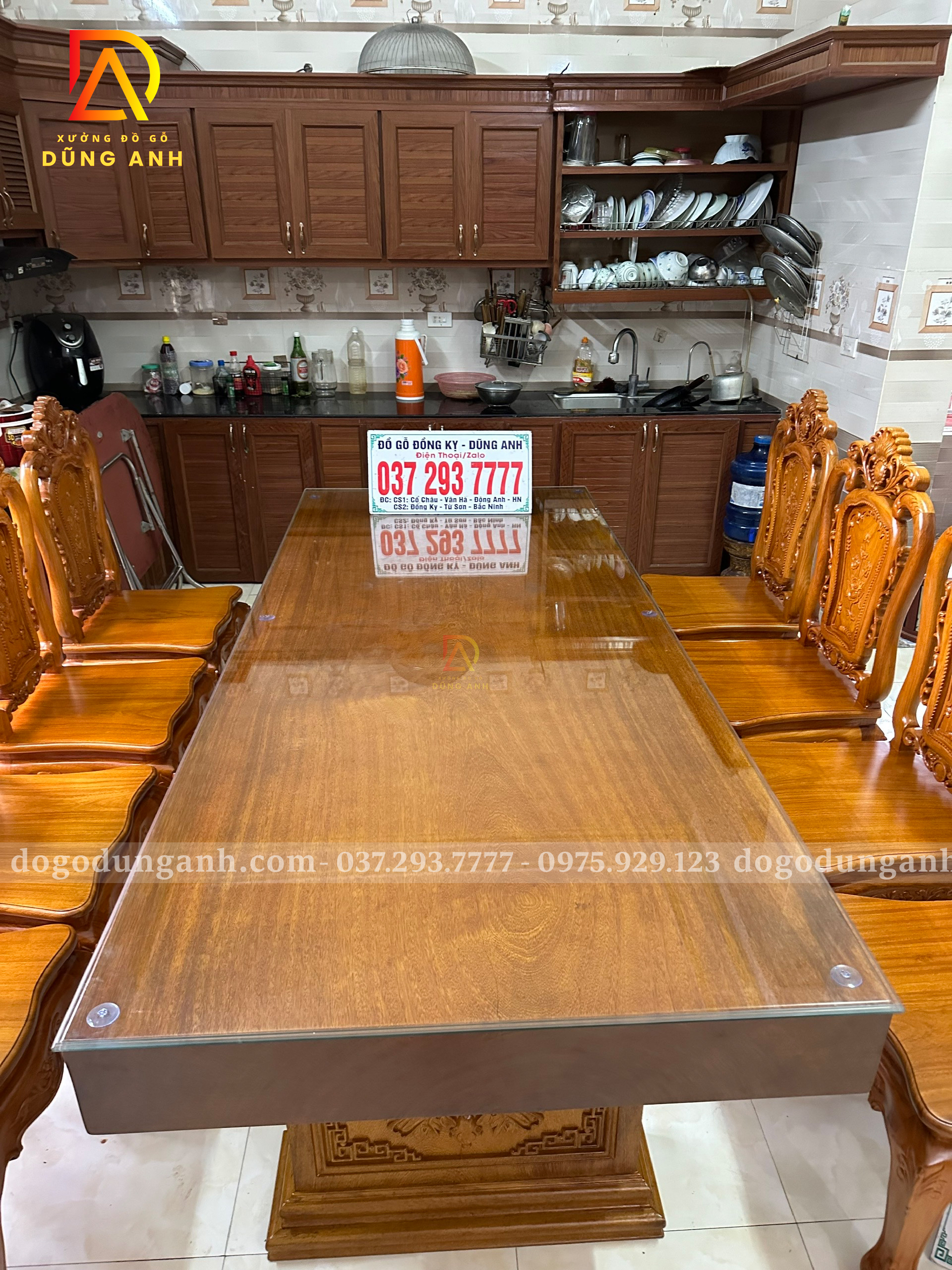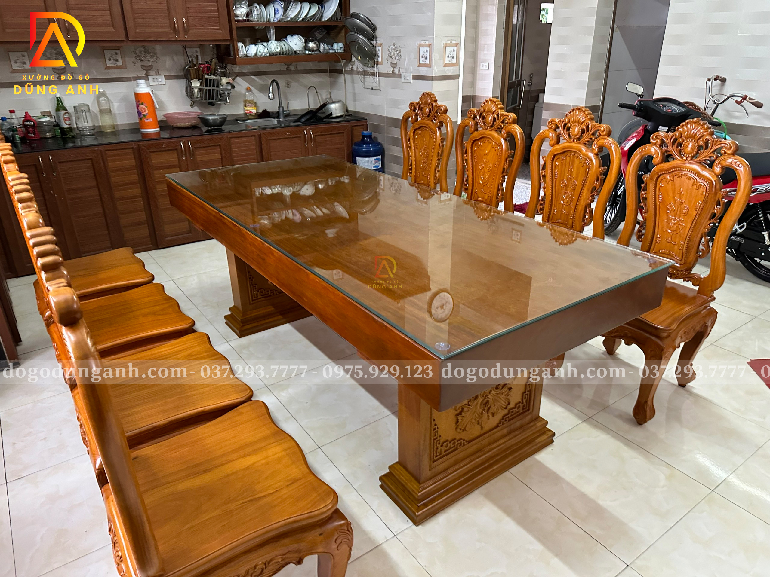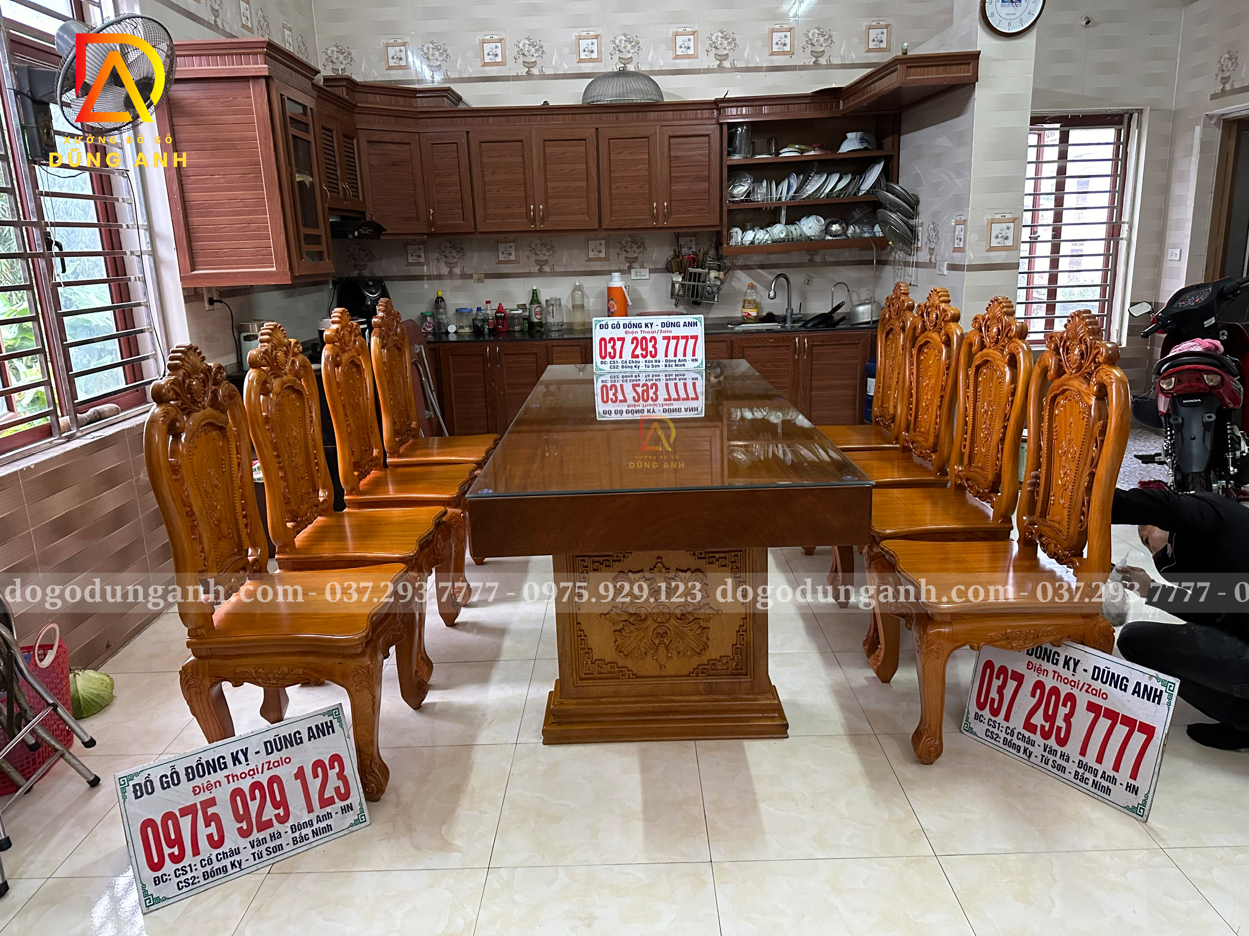 Đồ Gỗ Dũng Anh | Bàn giao bộ sản phẩm 8 ghế louis hoa hồng + bàn nguyên khối – Gia đình bác Trọng ( Vĩnh Phúc )