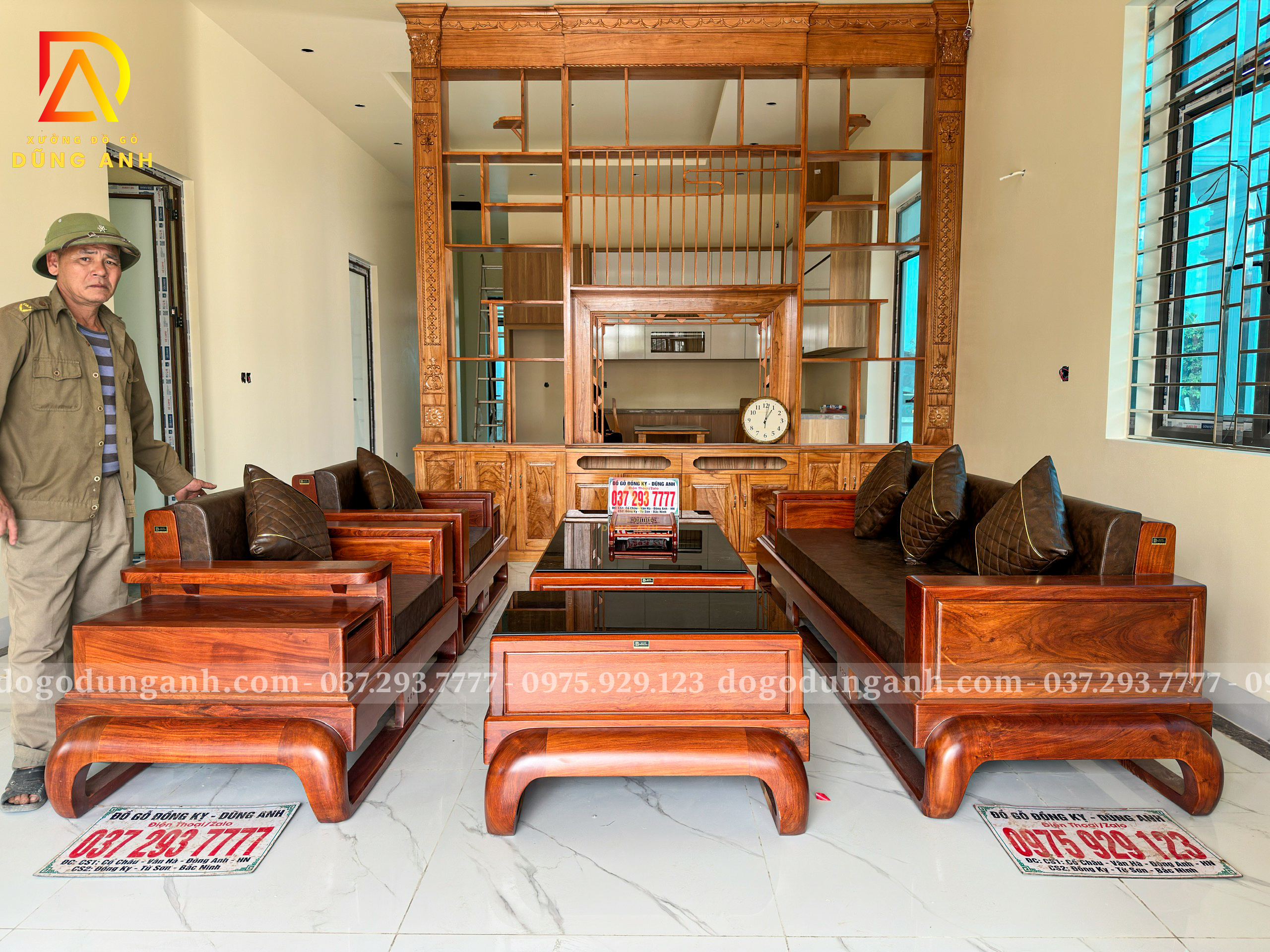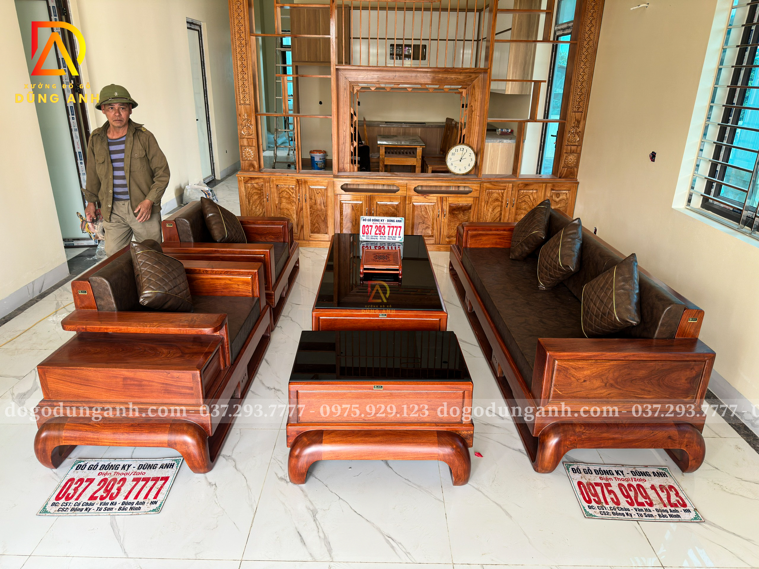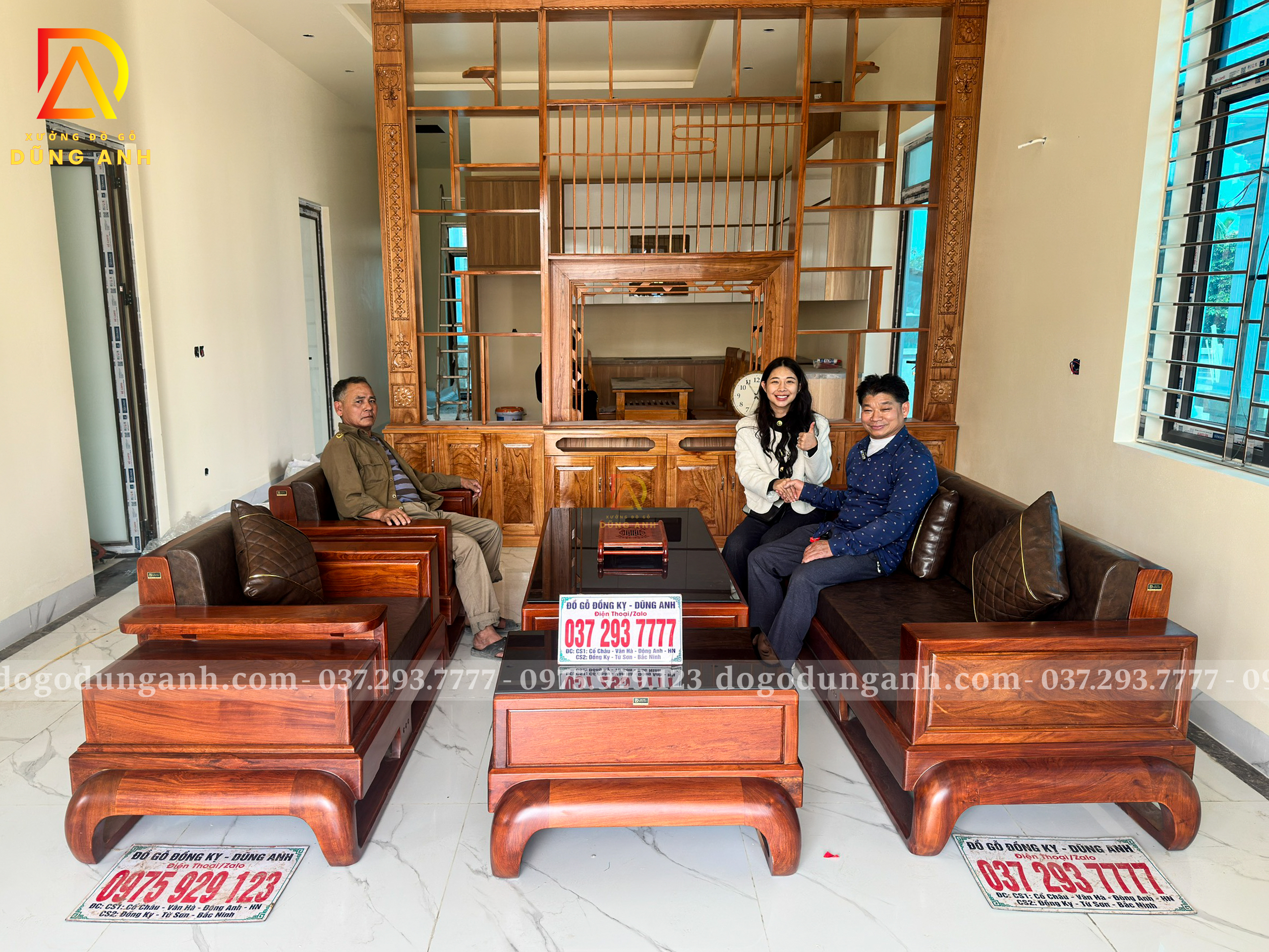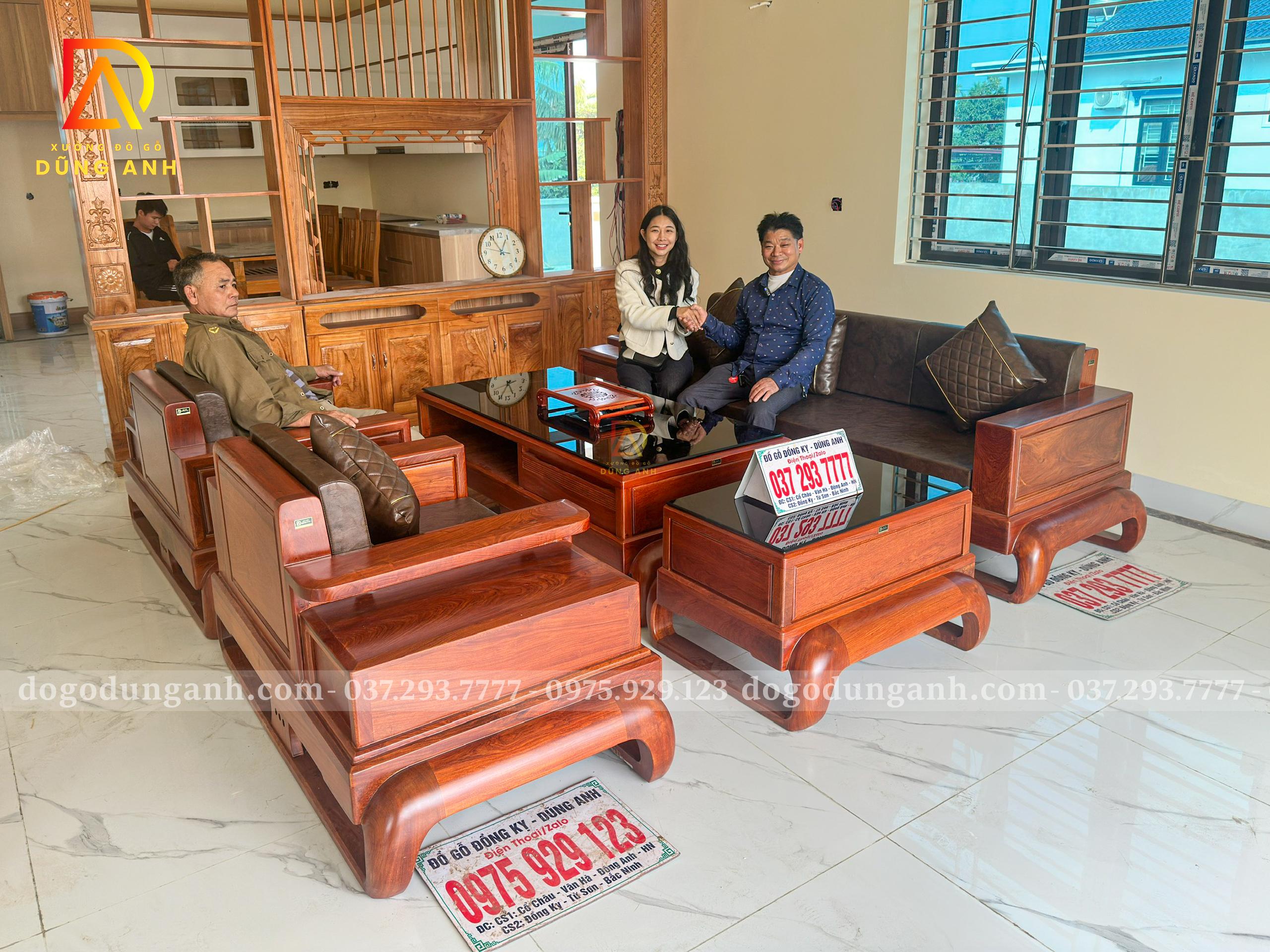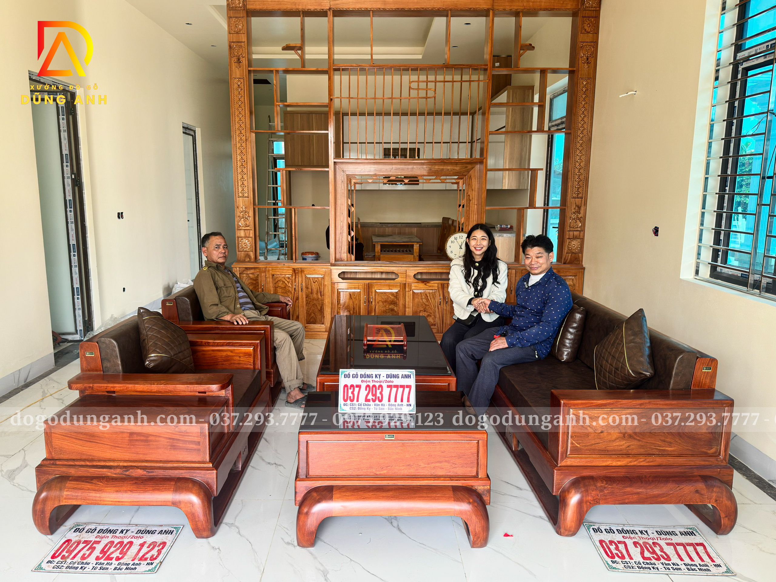 Chú Dũng cùng gia đình vô cùng hài lòng và dành nhiều lời khen cho sản phẩm sau khi hoàn thiện và bàn giao tận nơi. Đây không chỉ là một bộ bàn ghế phòng khách , mà còn là điểm nhấn nghệ thuật nâng tầm giá trị thẩm mỹ cho ngôi nhà