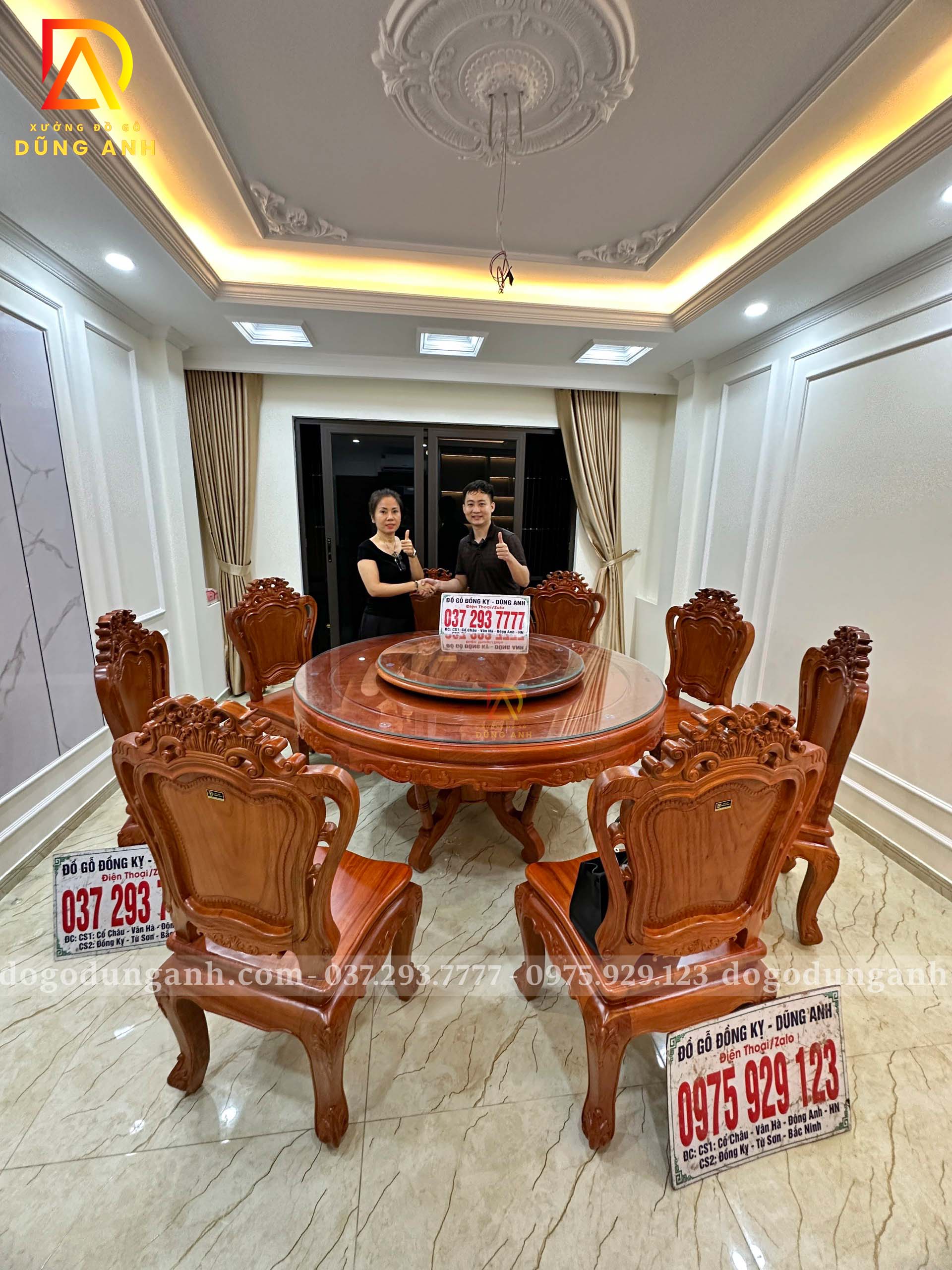 Cảm ơn Đồ Gỗ Dũng Anh đã giao hàng đúng hẹn và phục vụ rất tận tâm. Bộ bàn ăn này đúng là xứng đáng với giá trị và đẳng cấp của gỗ gõ đỏ thật!”