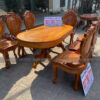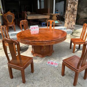 Trình làng SIÊU PHẨM 6 ghế hiện đại kết hợp với bàn tròn NGUYÊN KHỐI chất liệu gỗ gõ đỏ vân siêu đẹp