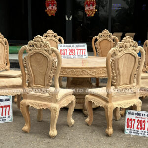 💺 6 ghế Louis với phần tựa lưng uốn cong, hoa văn nổi bật, mang đến sự thoải mái và đẳng cấp cho không gian phòng ăn.