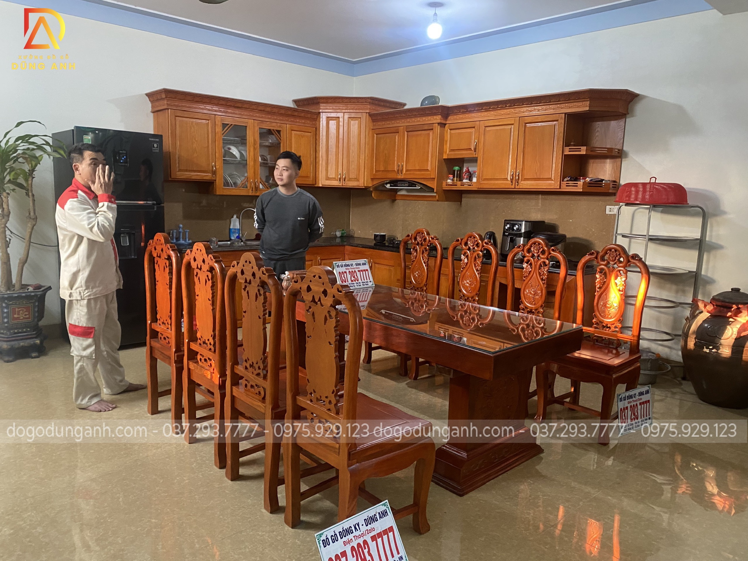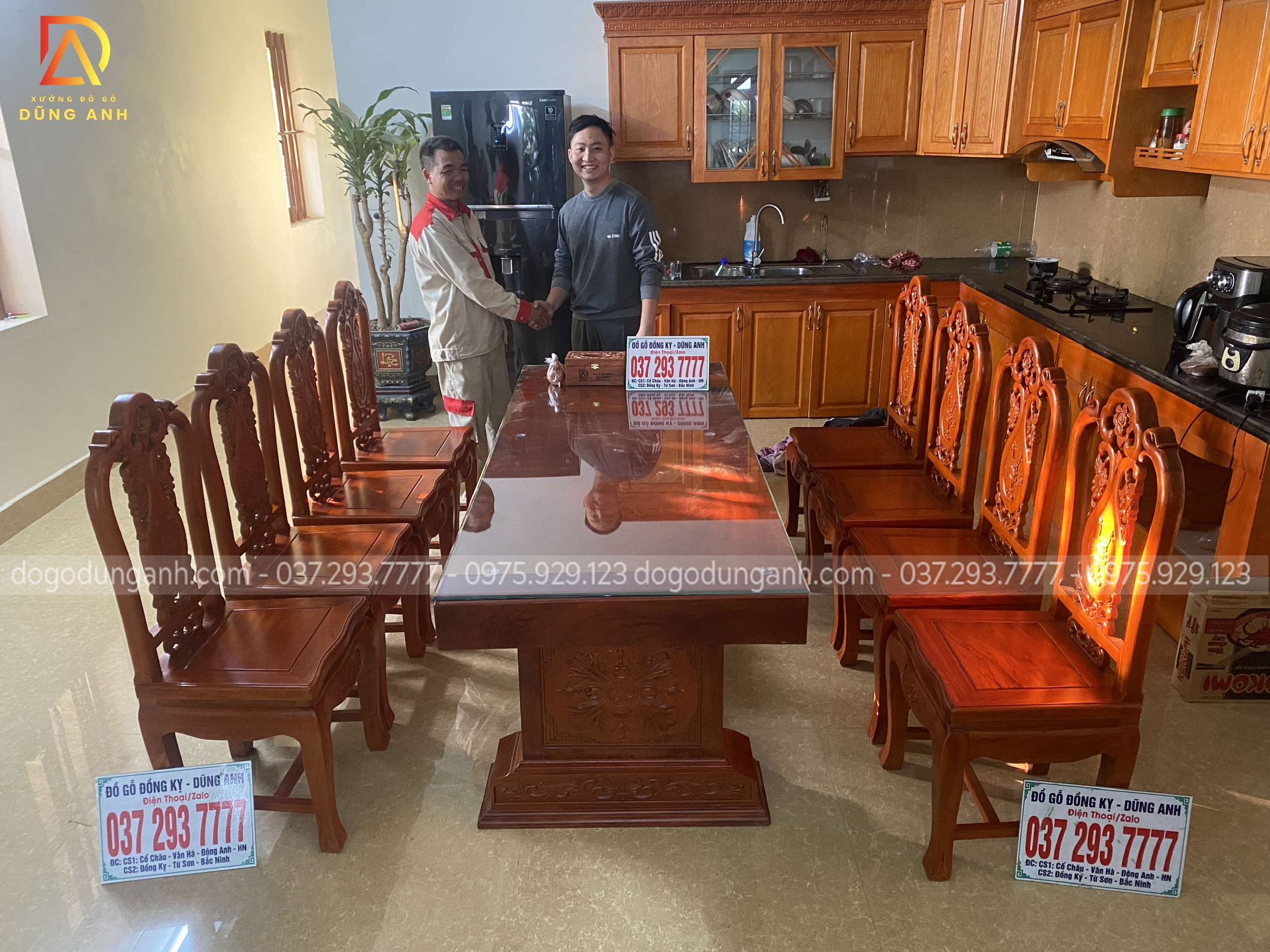 Đồ Gỗ Dũng Anh | Bàn GiaO Siêu Phẩm 8 Ghế Hồng Con + Bàn Nguyên Khối Cho Anh Bắc – ( Thuận Thành – Bắc Ninh )