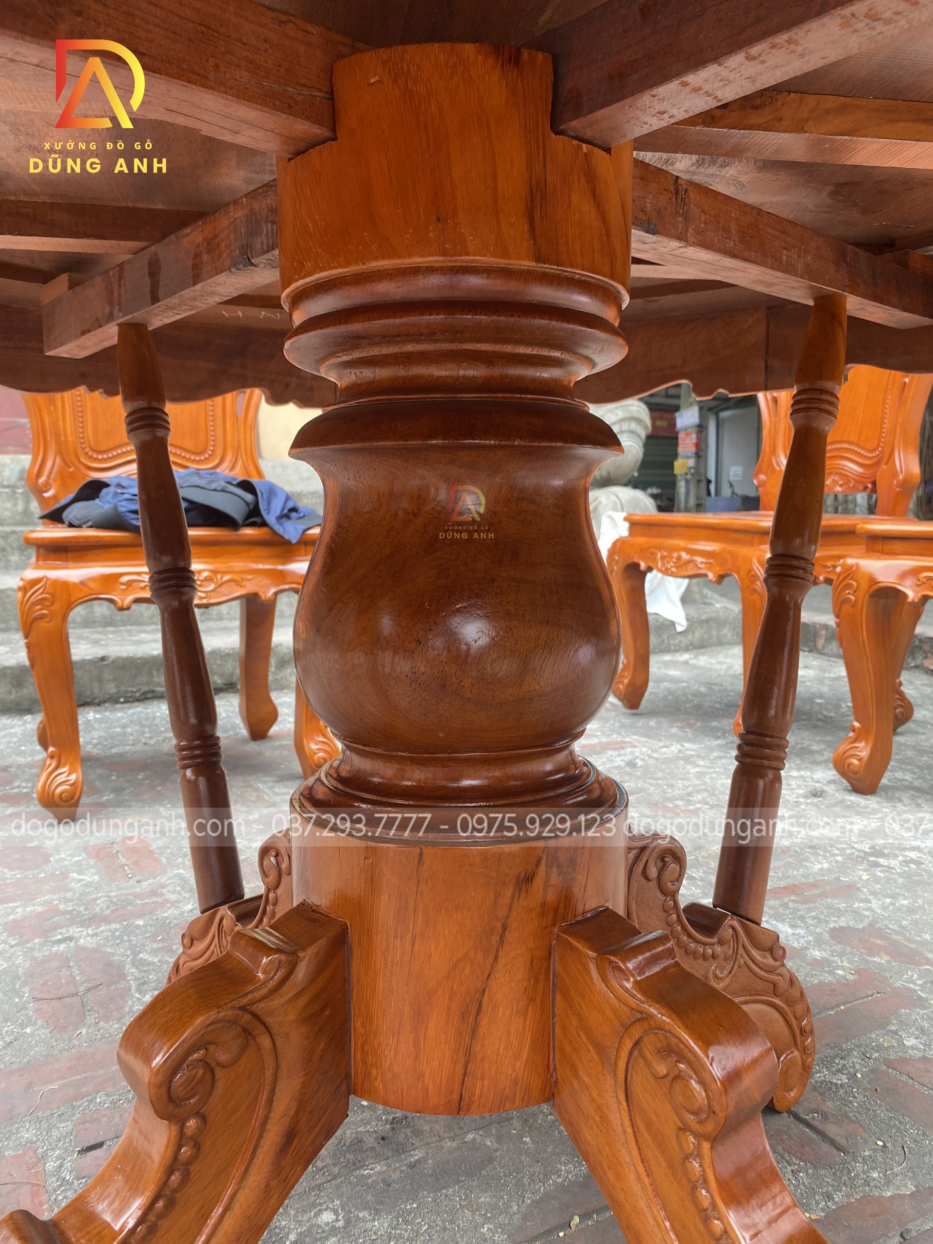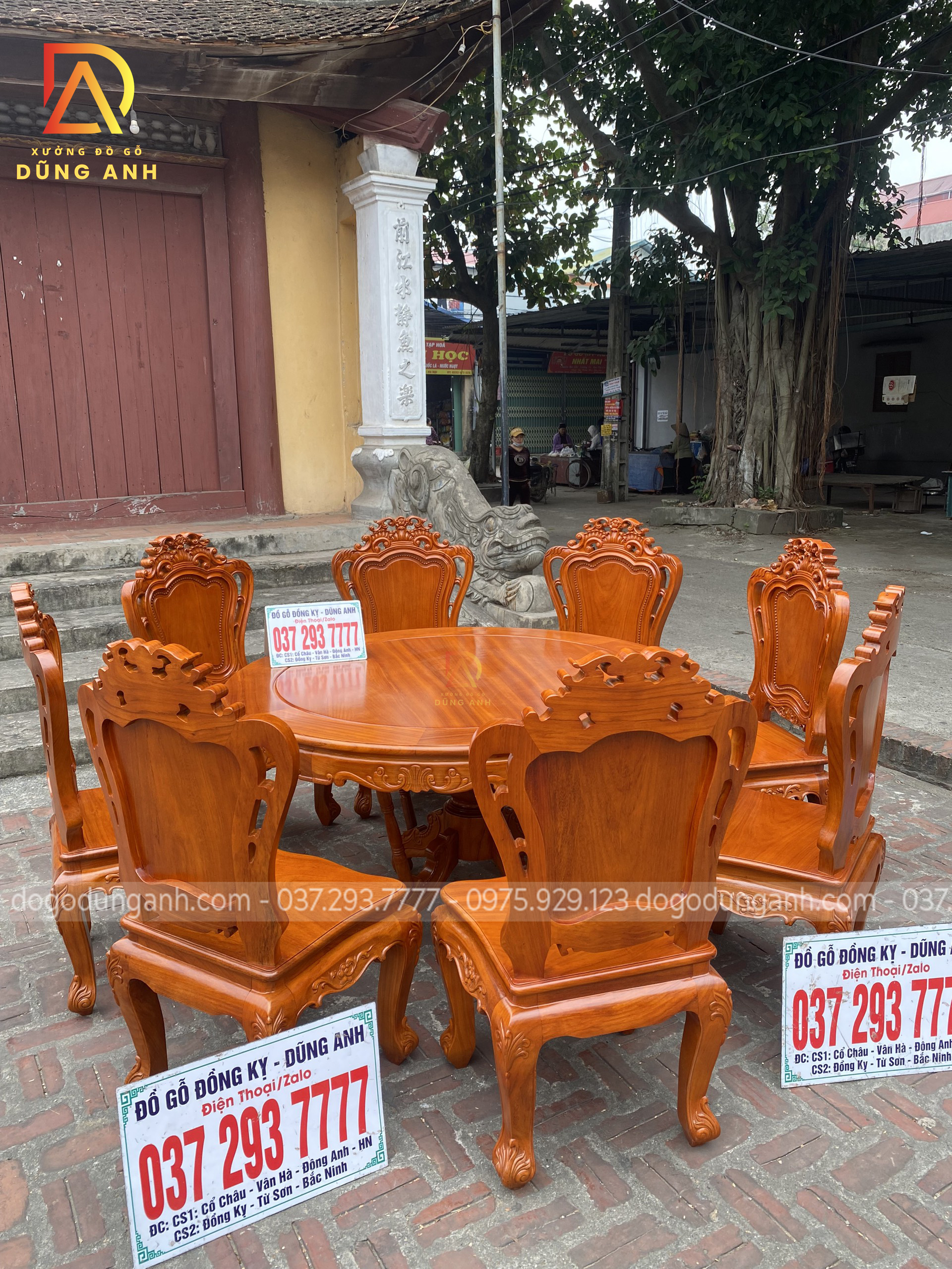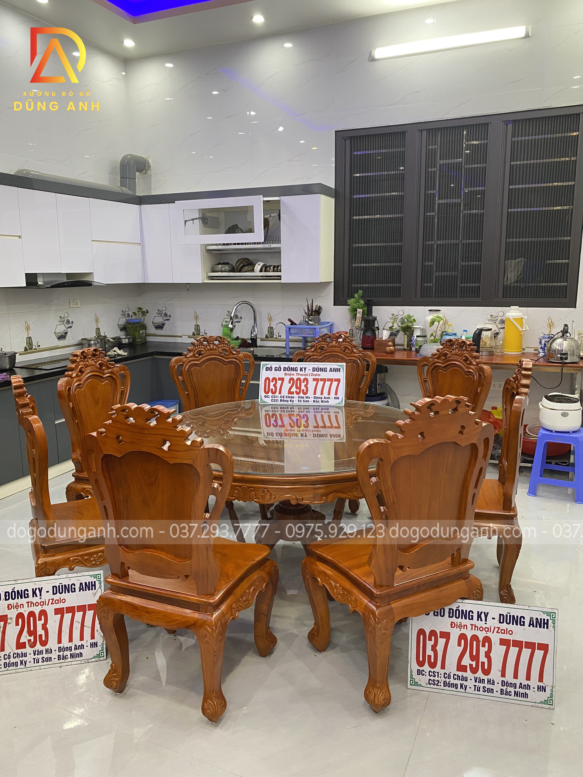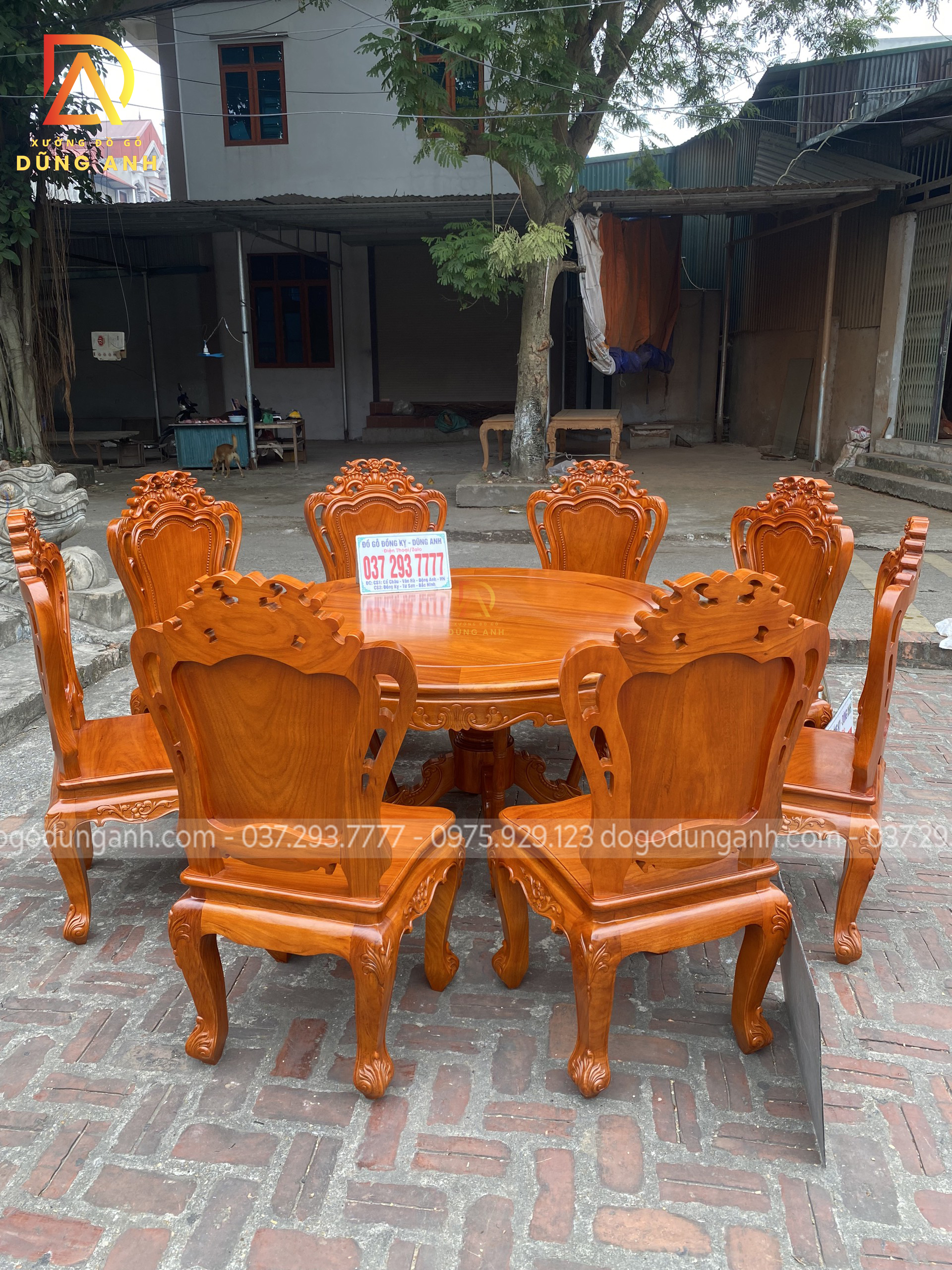 Bộ sản phẩm này gồm 8 ghế hoàng gia kết hợp là 1 chiếc bàn tròn yếm vén.