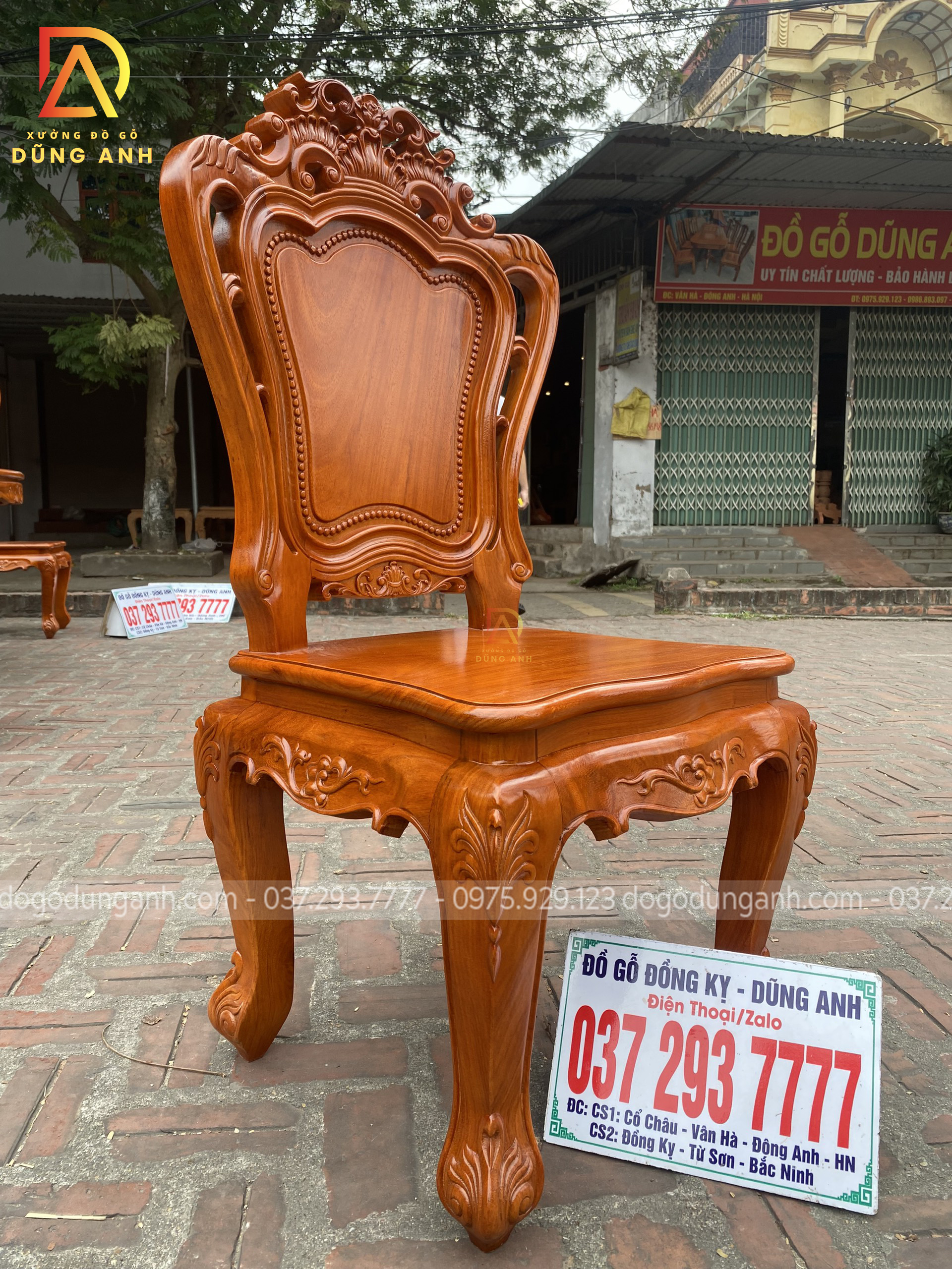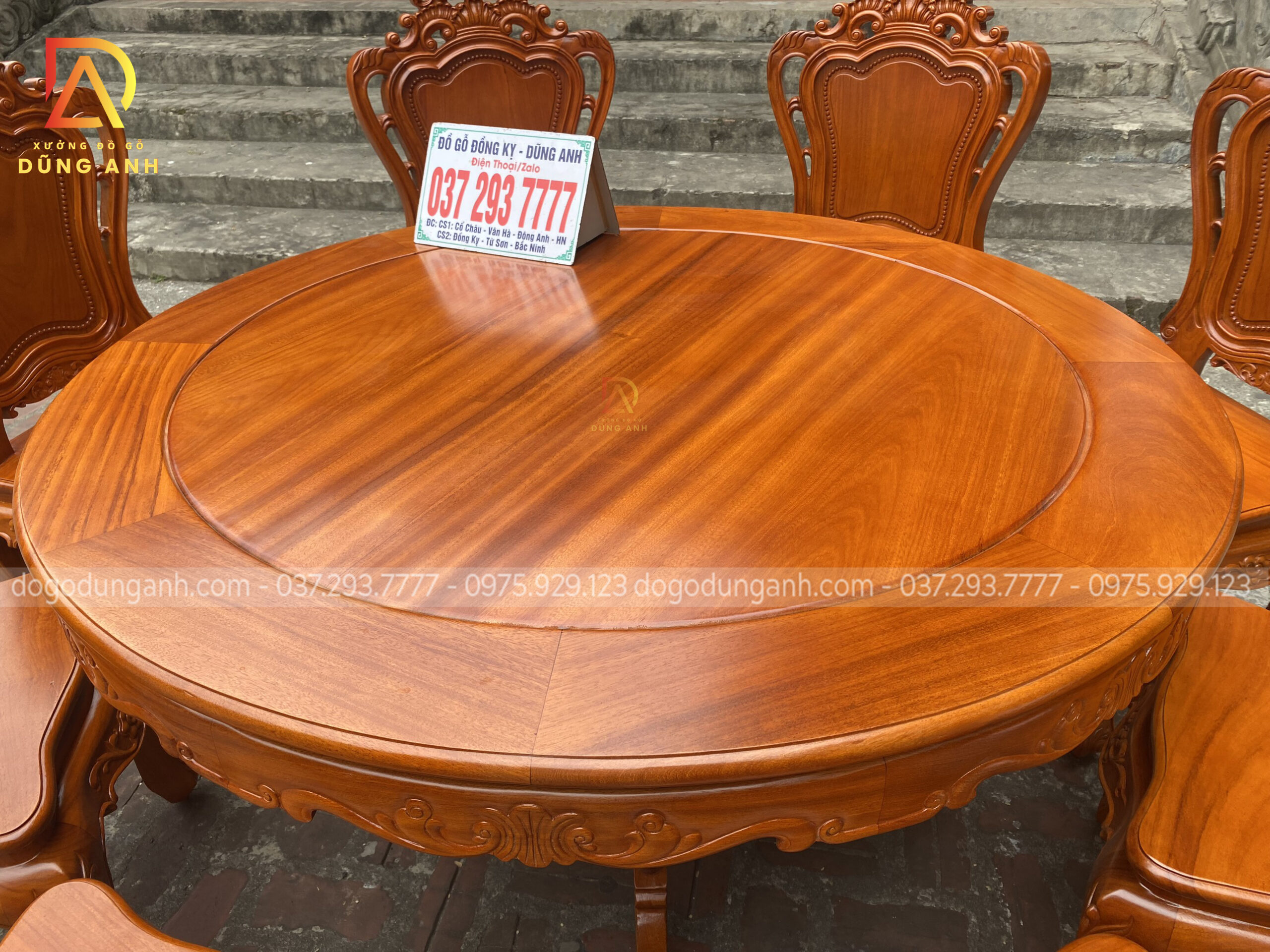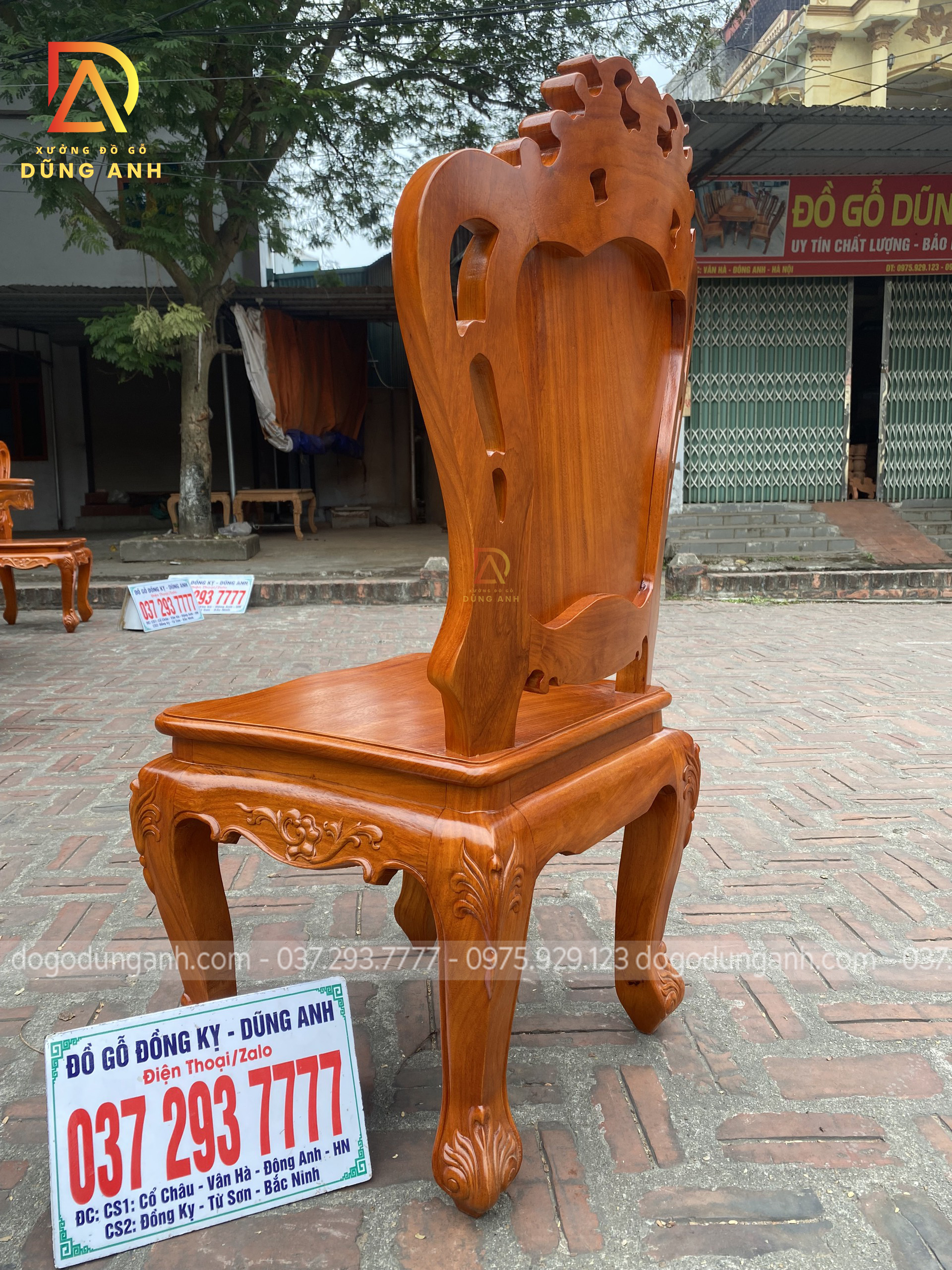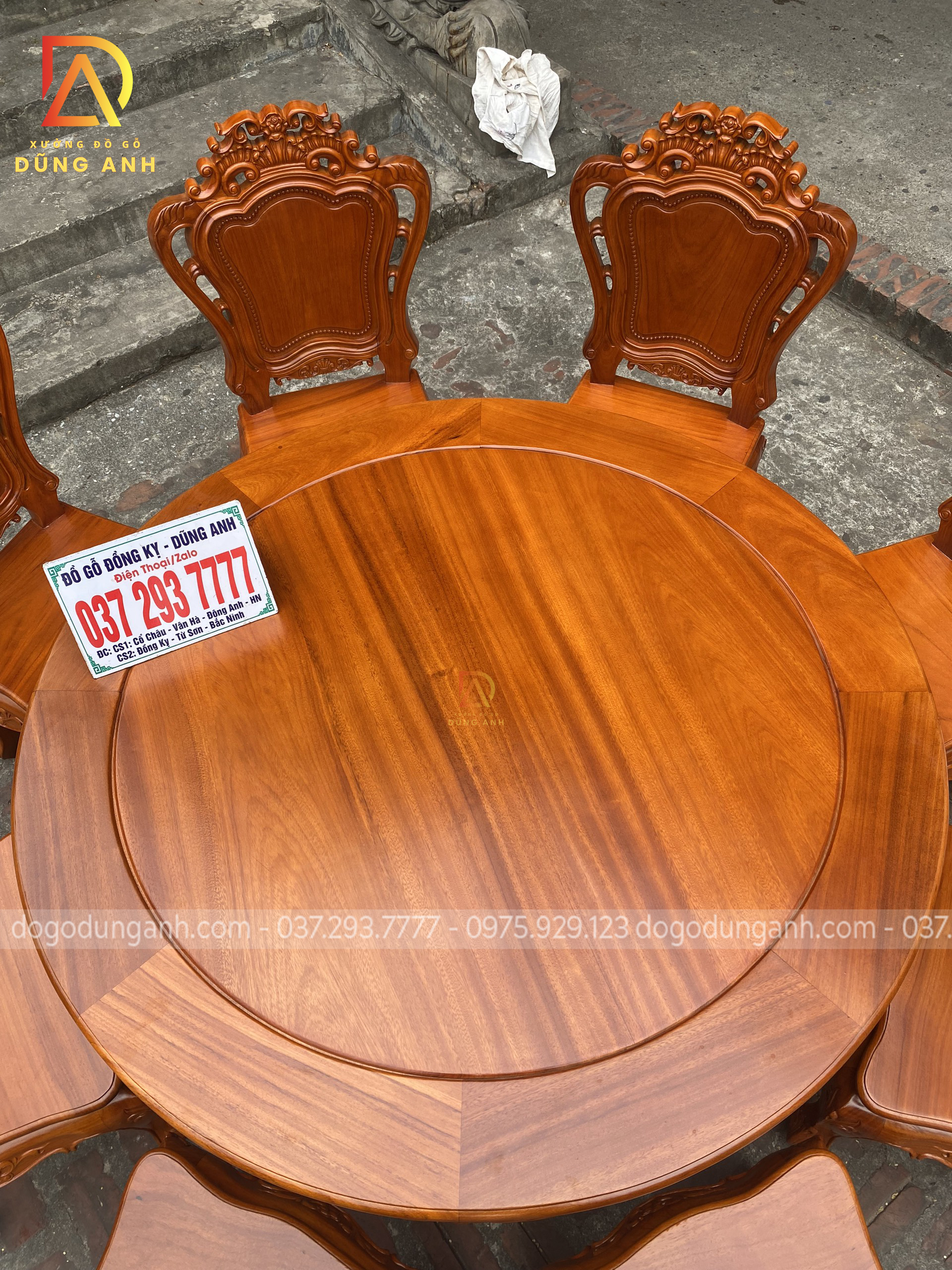 Bộ sản phẩm này gồm 8 ghế hoàng gia kết hợp là 1 chiếc bàn tròn yếm vén.