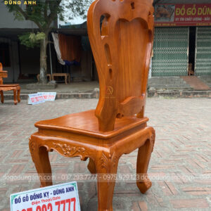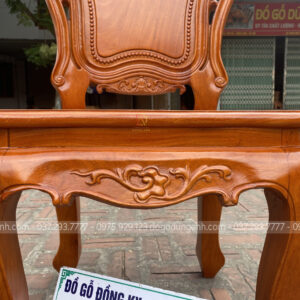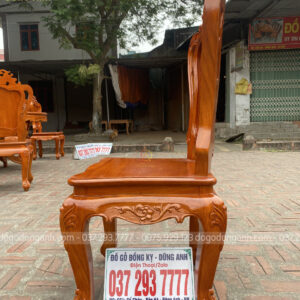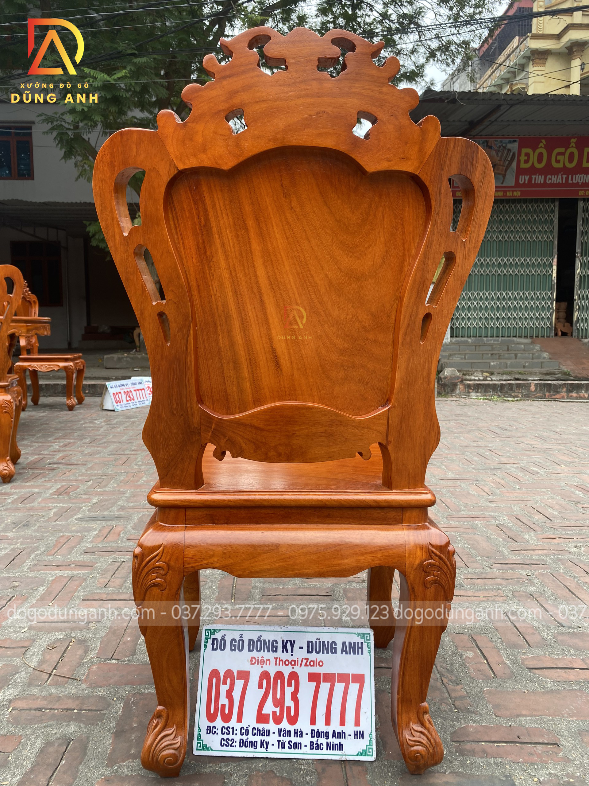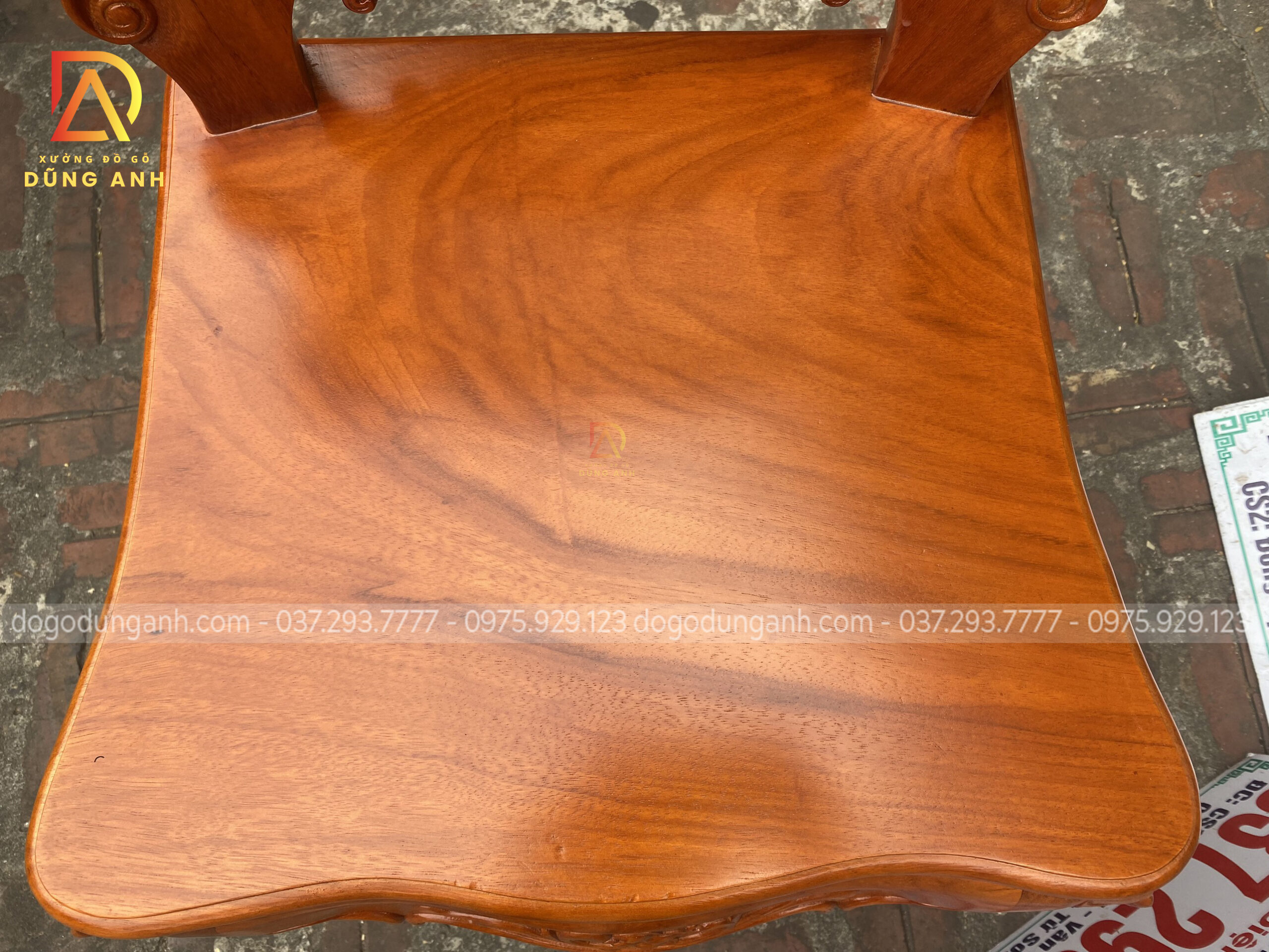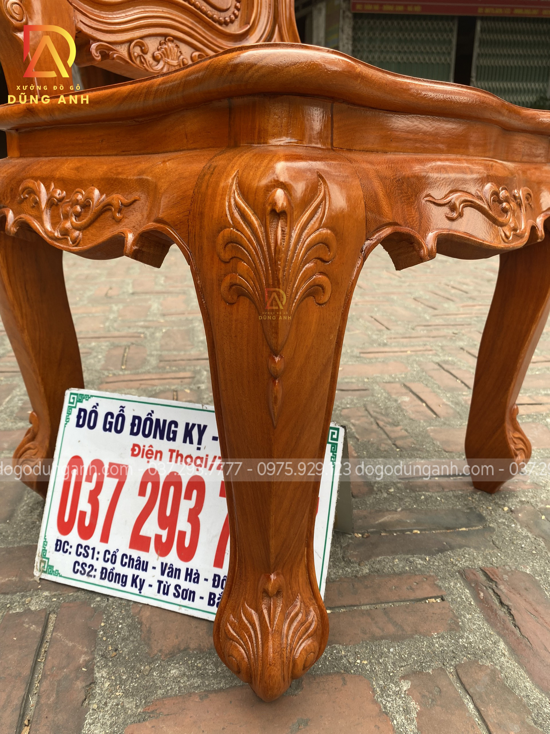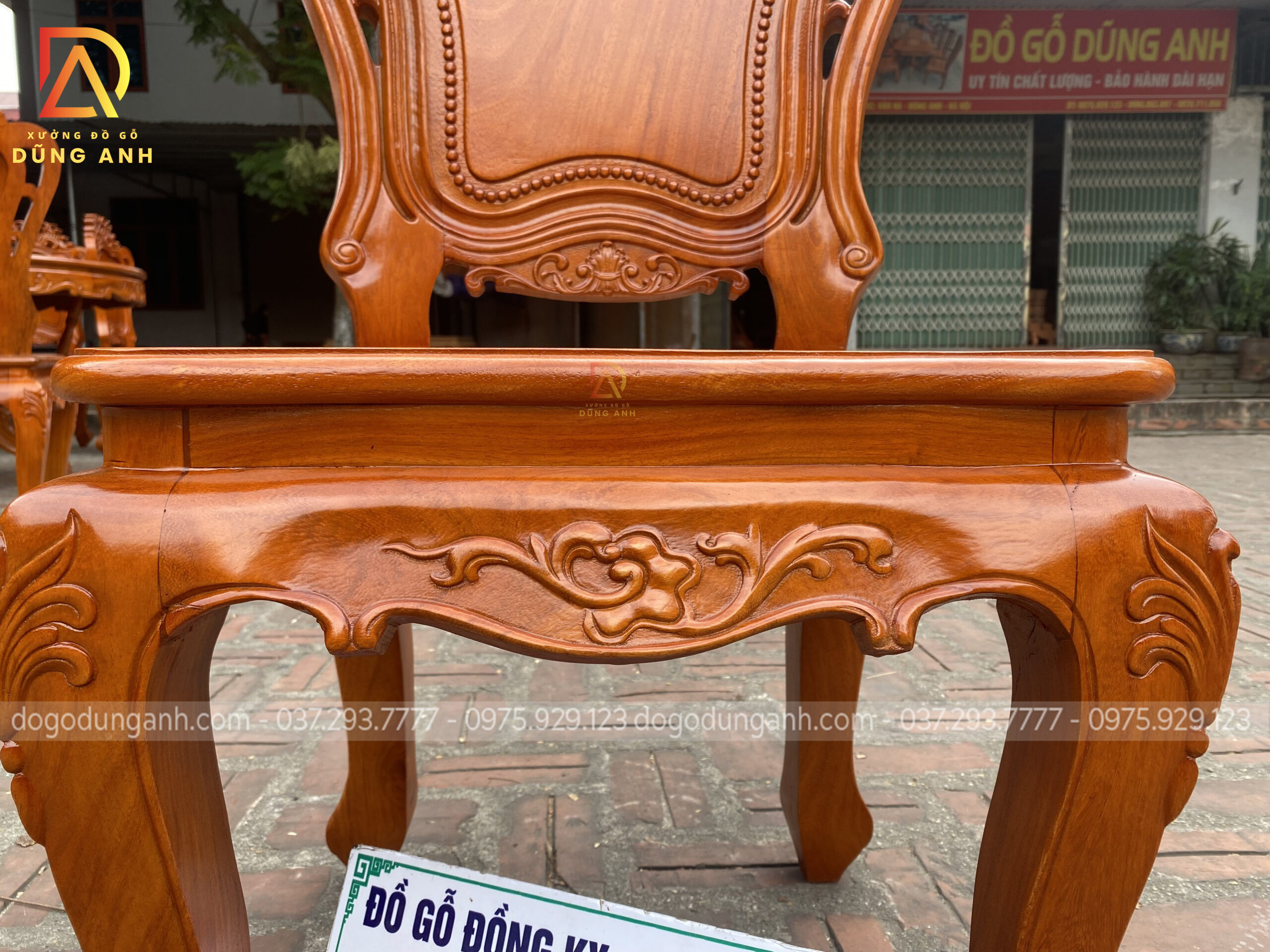 Thiết kế chân ghế quỳ cong độc đáo kết hợp yếm chạm lá tây đẹp mắt mang lại vẻ đẹp kiêu sa, sang trọng cho sản phẩm.