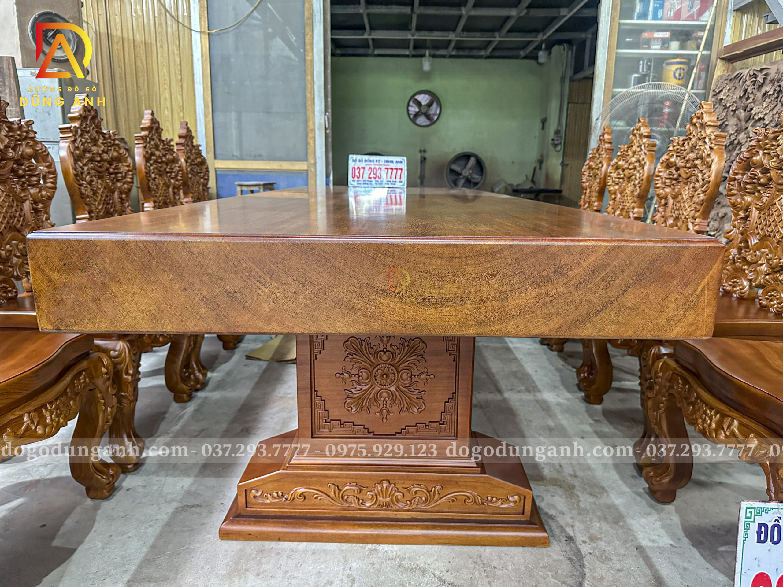 Sản phẩm được những người thợ có kinh nghiệm lâu năm trong nghề triển khai hoàn thiện cực kỳ tỉ mỉ và sặc nét đến chi tiết. Quý khách hàng nào muốn sở hữu ngay bàn ăn có khung tranh và ván tương tự thì hãy liên hệ ngay Xưởng Gỗ Dũng Anh Hotline: 0372937777 / 0975929123 để được nhân viên tư vấn chi tiết và cụ thể hơn!