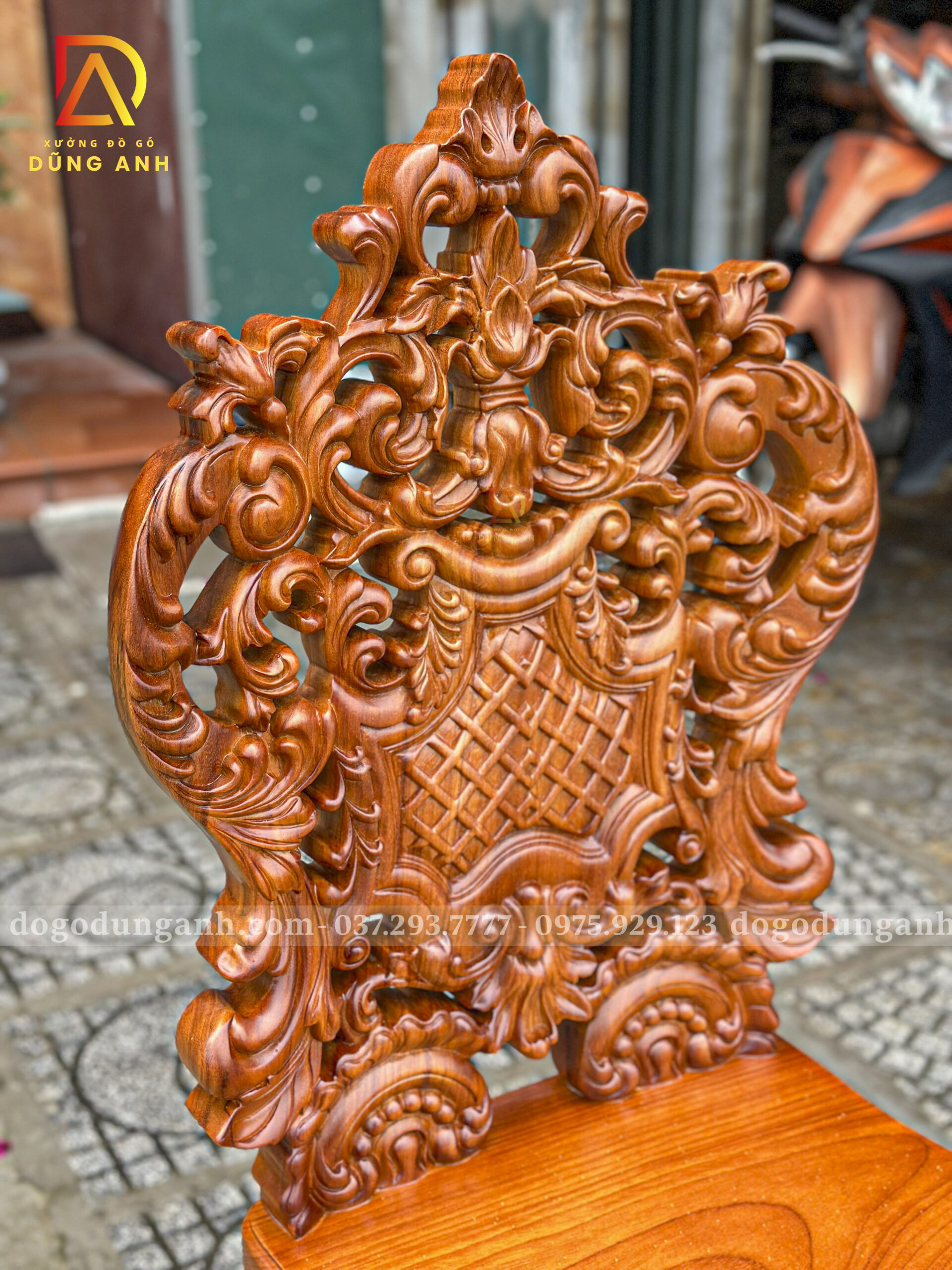 - Vách đục tạo hình ấn tượng đục họa tiết hoa lá tây vô cùng cầu kỳ uốn lượn kênh bong cực ấn tượng mang lại nét đẹp siêu sa, quyền quý chuẩn hoàng gia Châu Âu