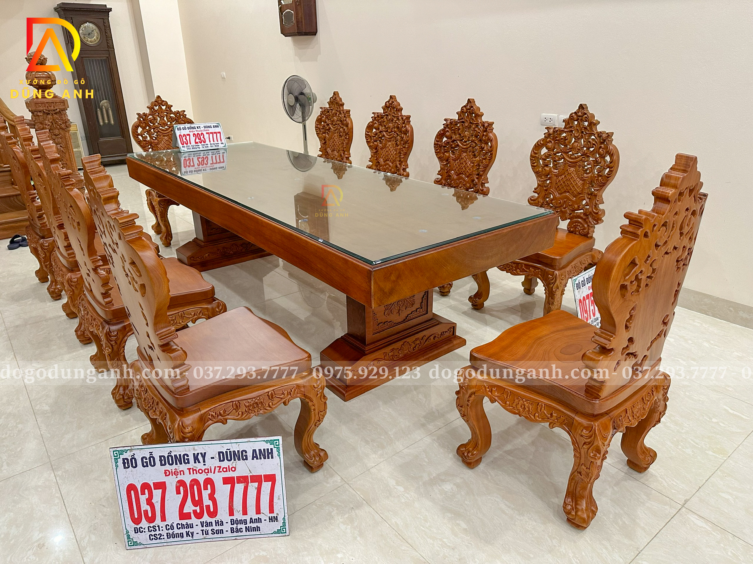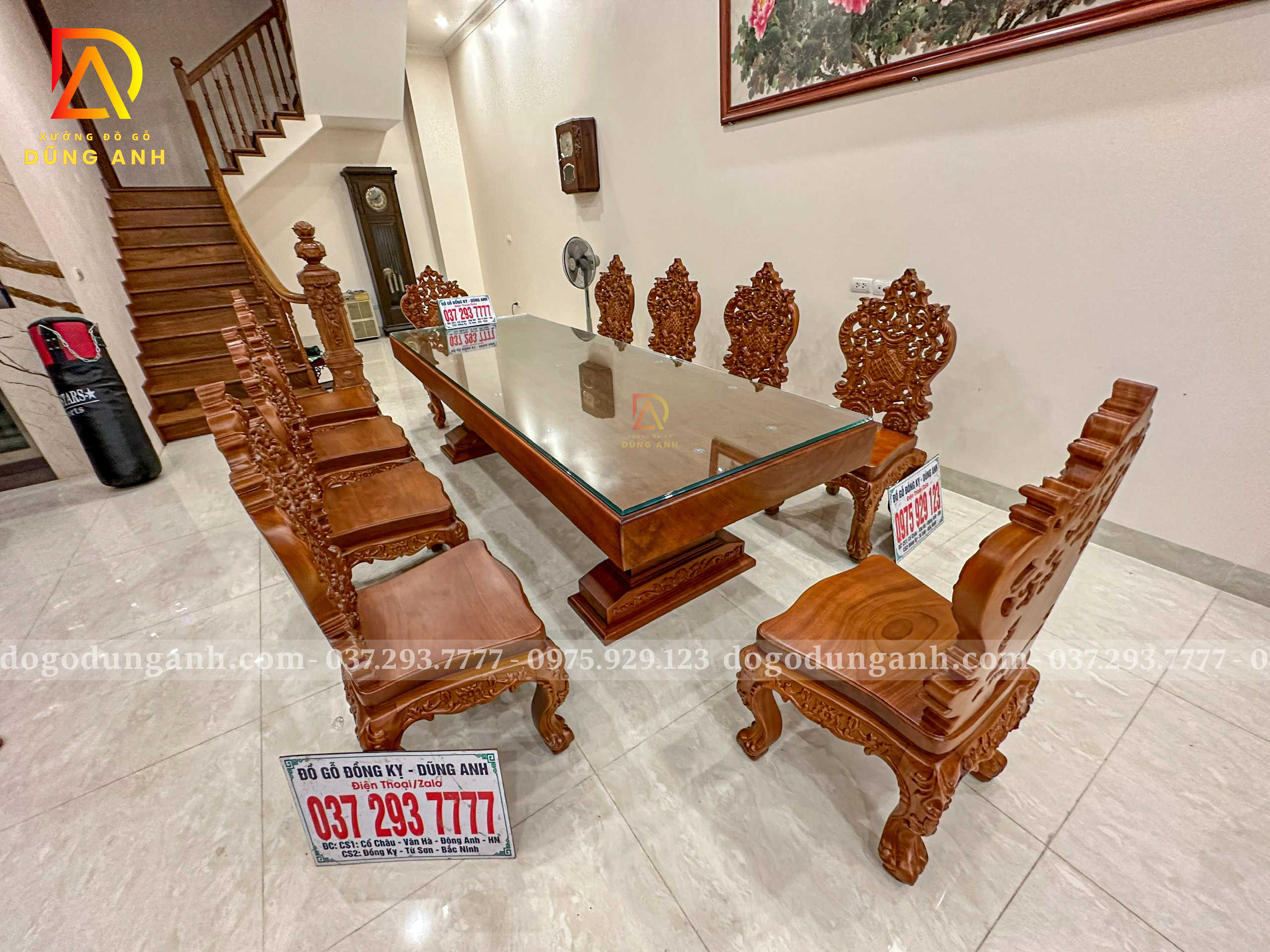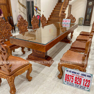 Đồ Gỗ Dũng Anh | Bàn Giao tới gia đình chị Hương – Hoàng Mai Hà Nội Bộ 10 ghế louis hoàng gia luxury + bàn chữ nhật nguyên khối – Gỗ Gõ Đỏ