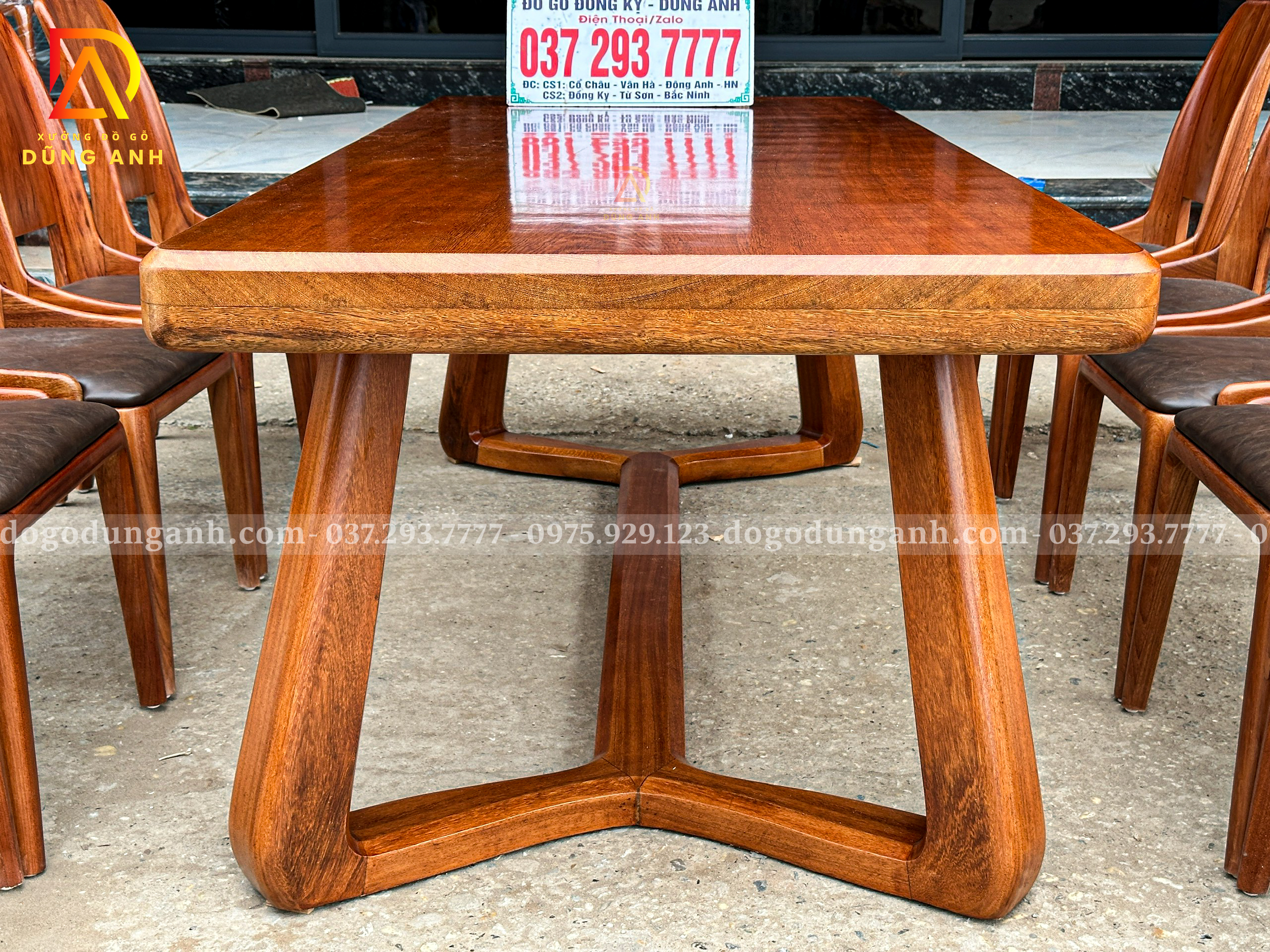 Bàn ăn gỗ Gõ Đỏ vì thế thừa hưởng trọn vẹn ưu điểm của gỗ tự nhiên: đẹp – bền – giá trị sử dụng cao, phù hợp gia đình đông người, không gian nhà phố, biệt thự hay nhà vườn sang trọng.