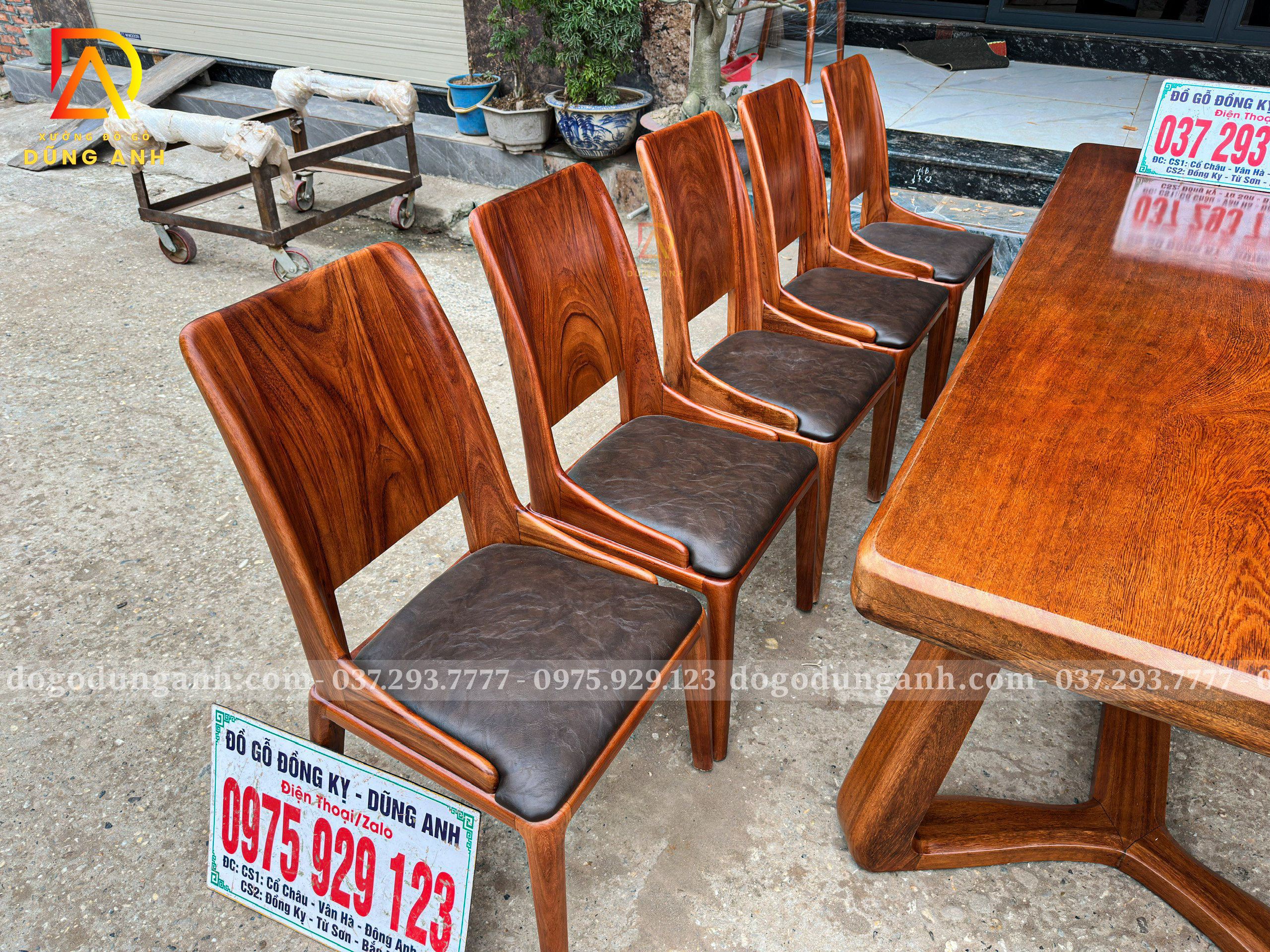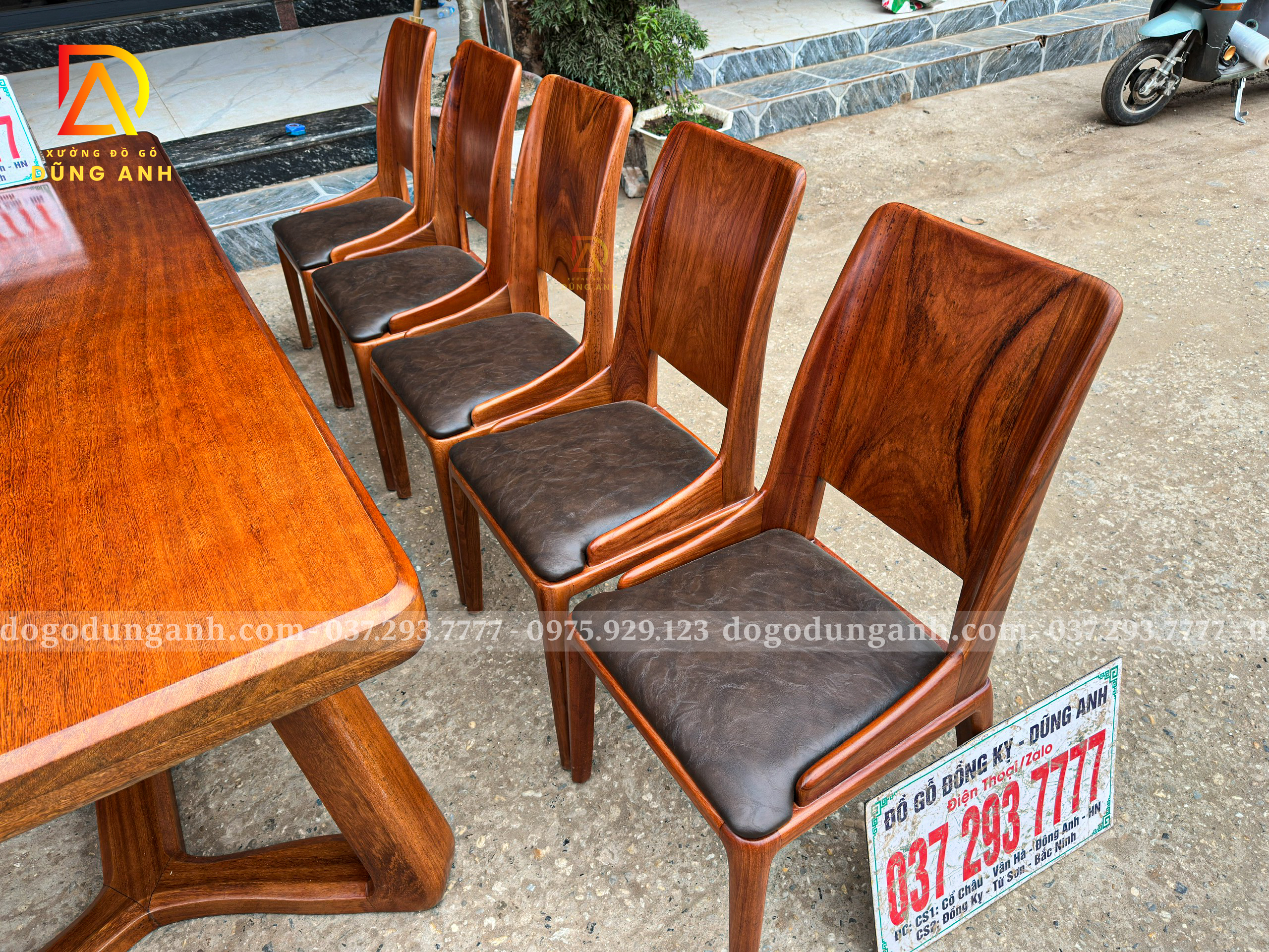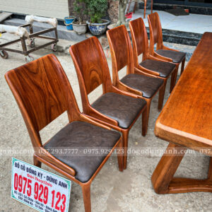 Đồ Gỗ Dũng Anh | Bộ 10 Ghế Cánh Tiên Bọc Da kết hợp Bàn Chữ Nhật Mặt Nguyên Khối KT 100*240 cm Chân Trụ U Gỗ Gõ Đỏ